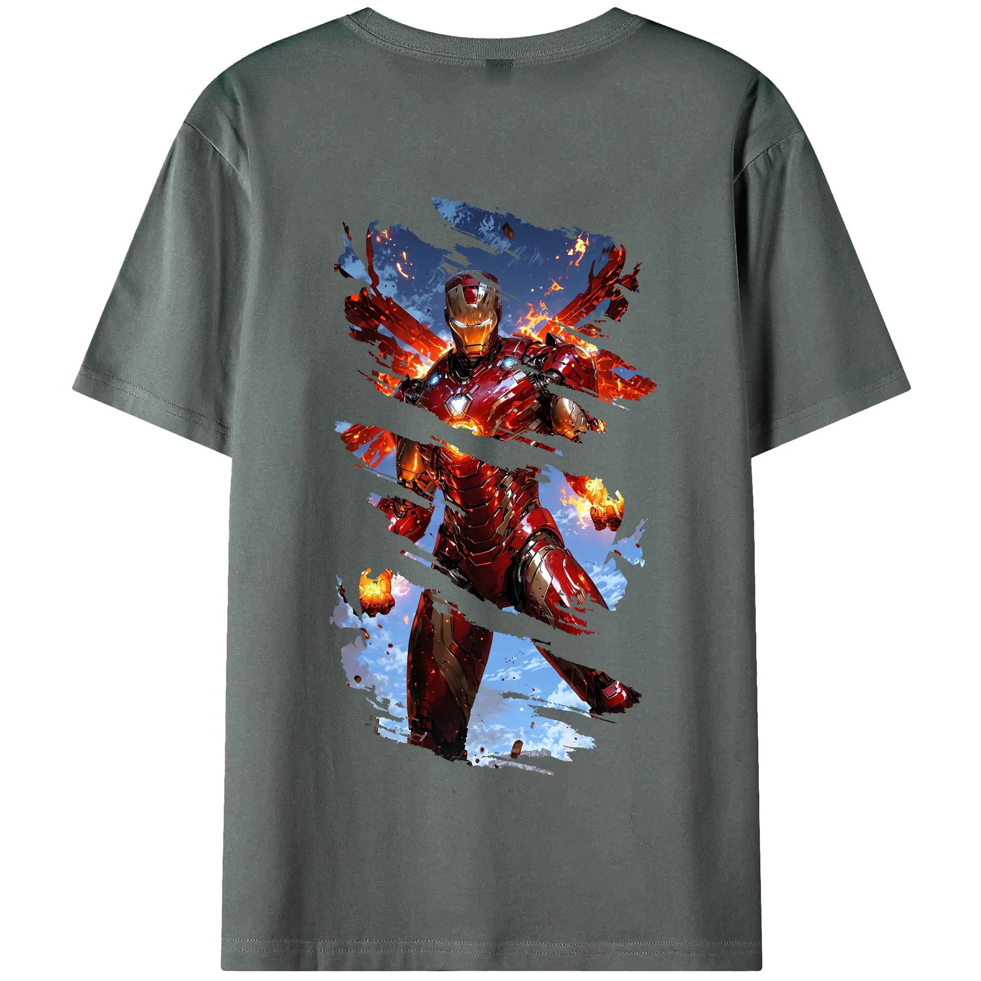 アベンジャーズ (Avenjāzu) グッズ アイアンマン(Iron Man) - 綿100% 半袖Tシャツ ・ フロントプリント ・ 快適 通気性 ・ 日常使い 散歩 スポーツ用