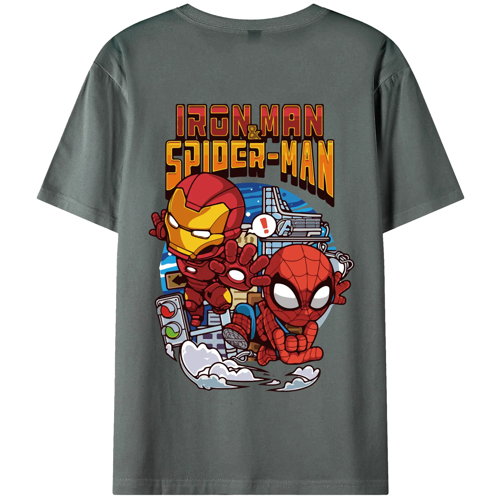 アベンジャーズ (Avenjāzu) グッズ アイアンマン(Iron Man) - 綿100% ヴィンテージ風 半袖Tシャツ ・ 背面プリント ・ 柔らか肌触り ・ 通気性 快適 ・ スポーツ カジュアル 外出用