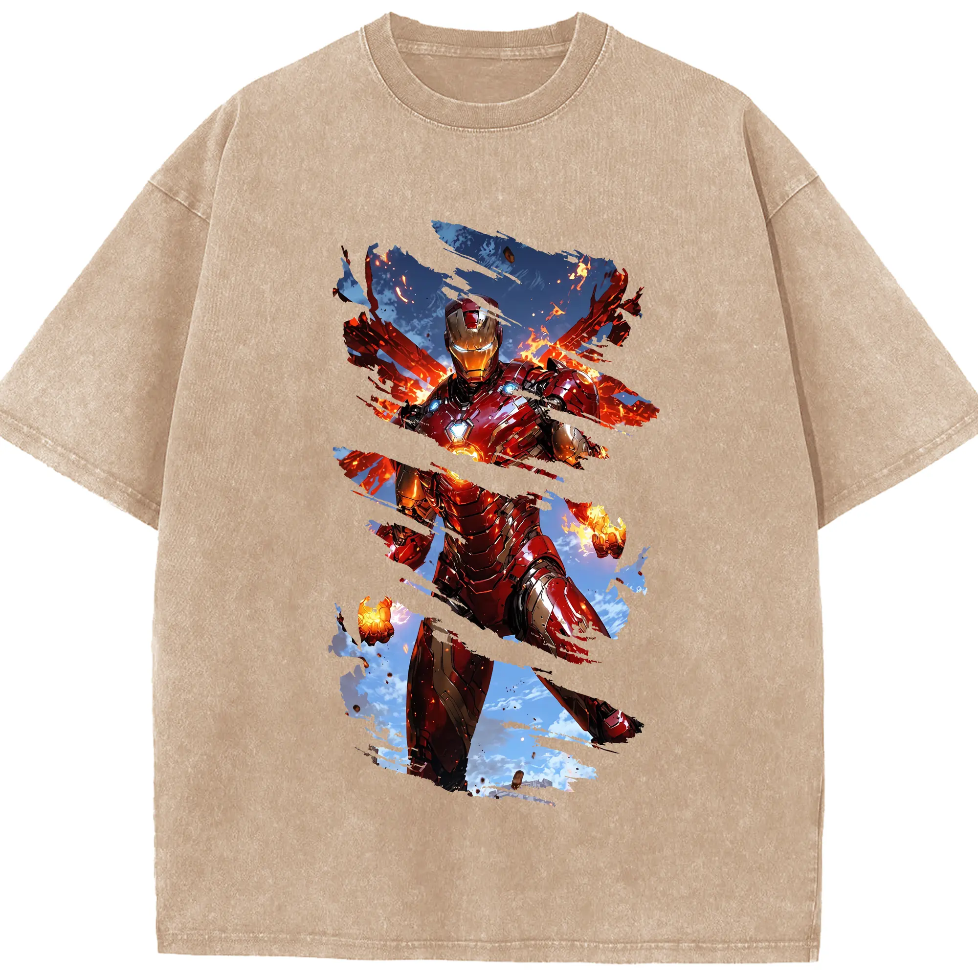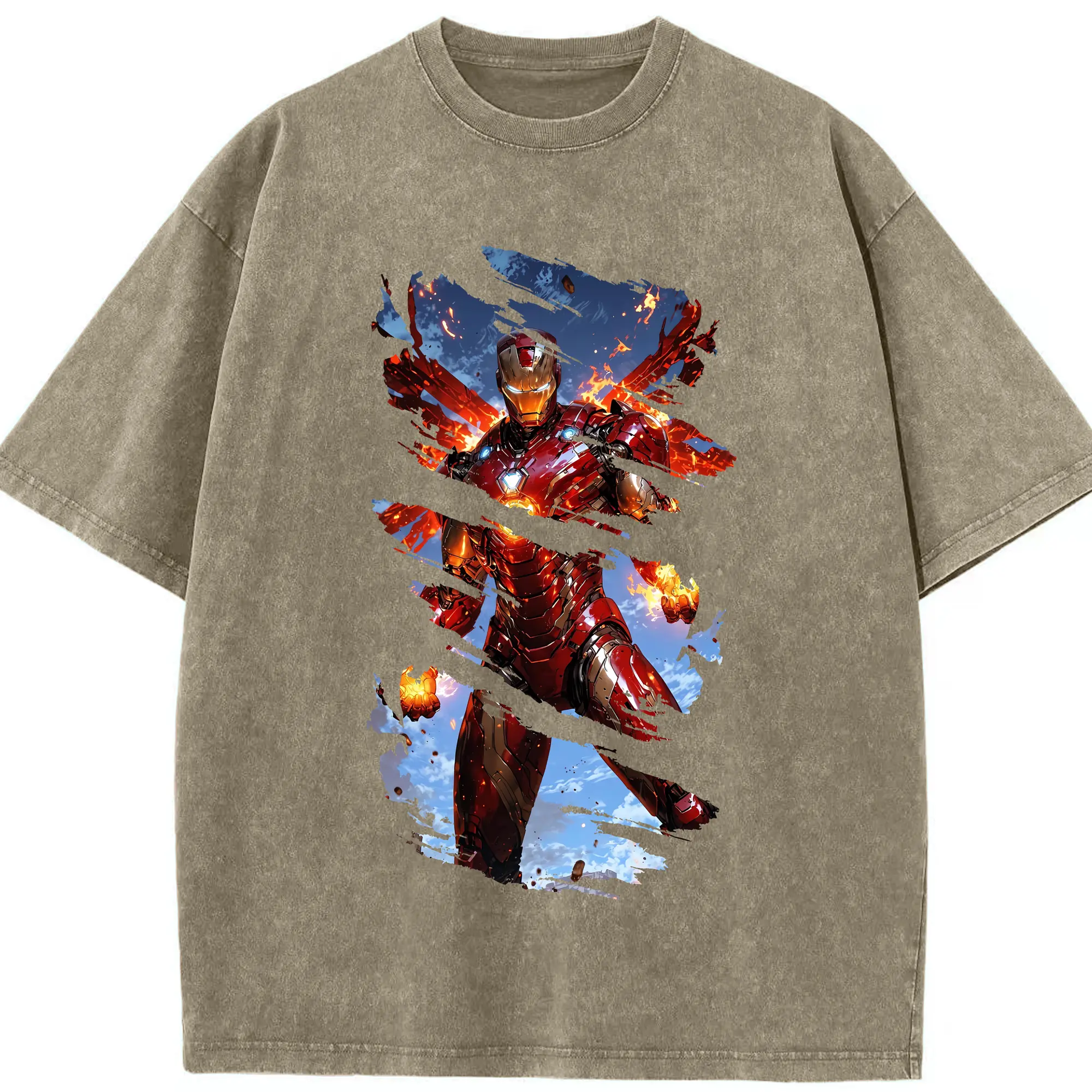 アベンジャーズ (Avenjāzu) グッズ アイアンマン(Iron Man) - 綿100% ヴィンテージ風 半袖Tシャツ ・ 背面プリント ・ 柔らか肌触り ・ 通気性 快適 ・ スポーツ カジュアル 外出用
