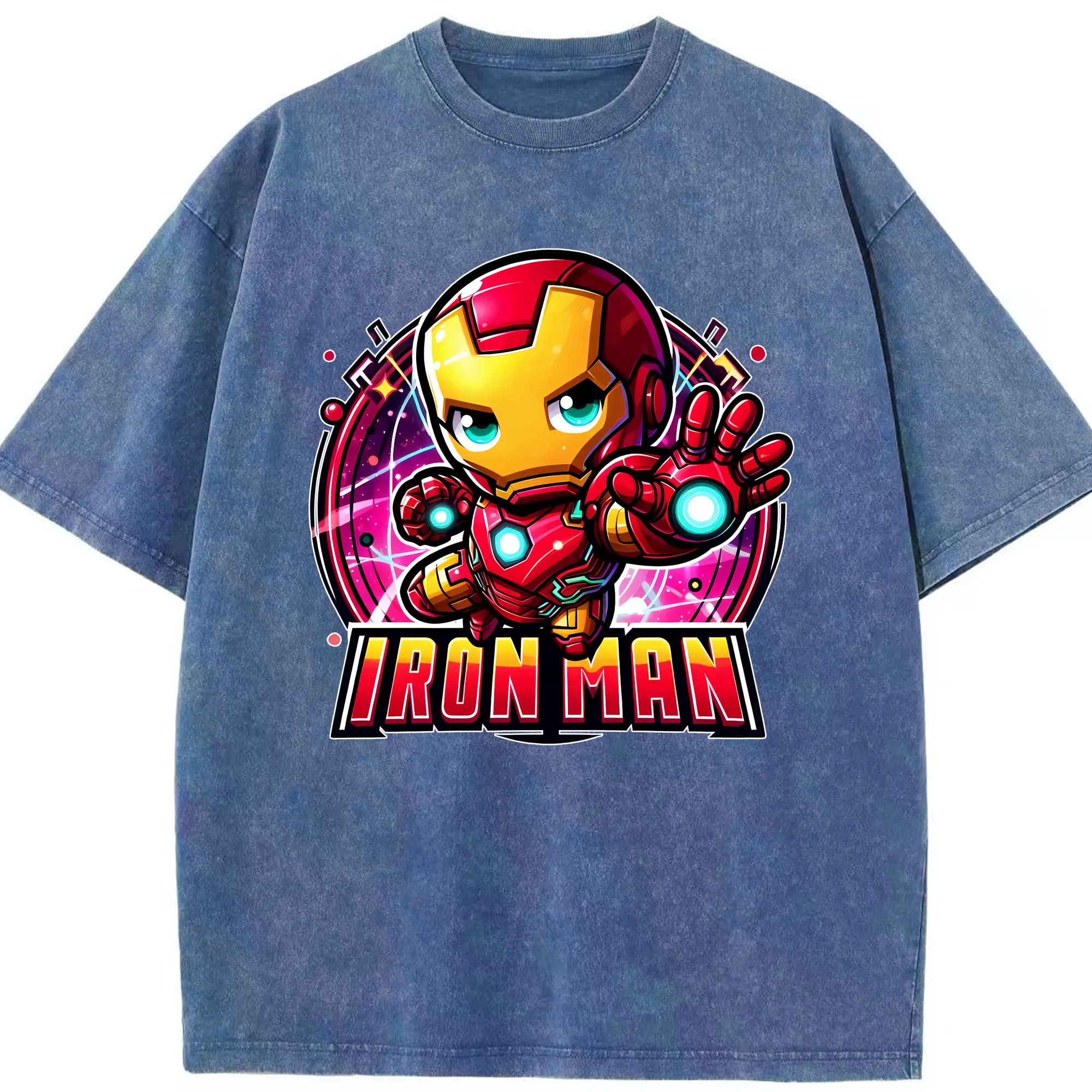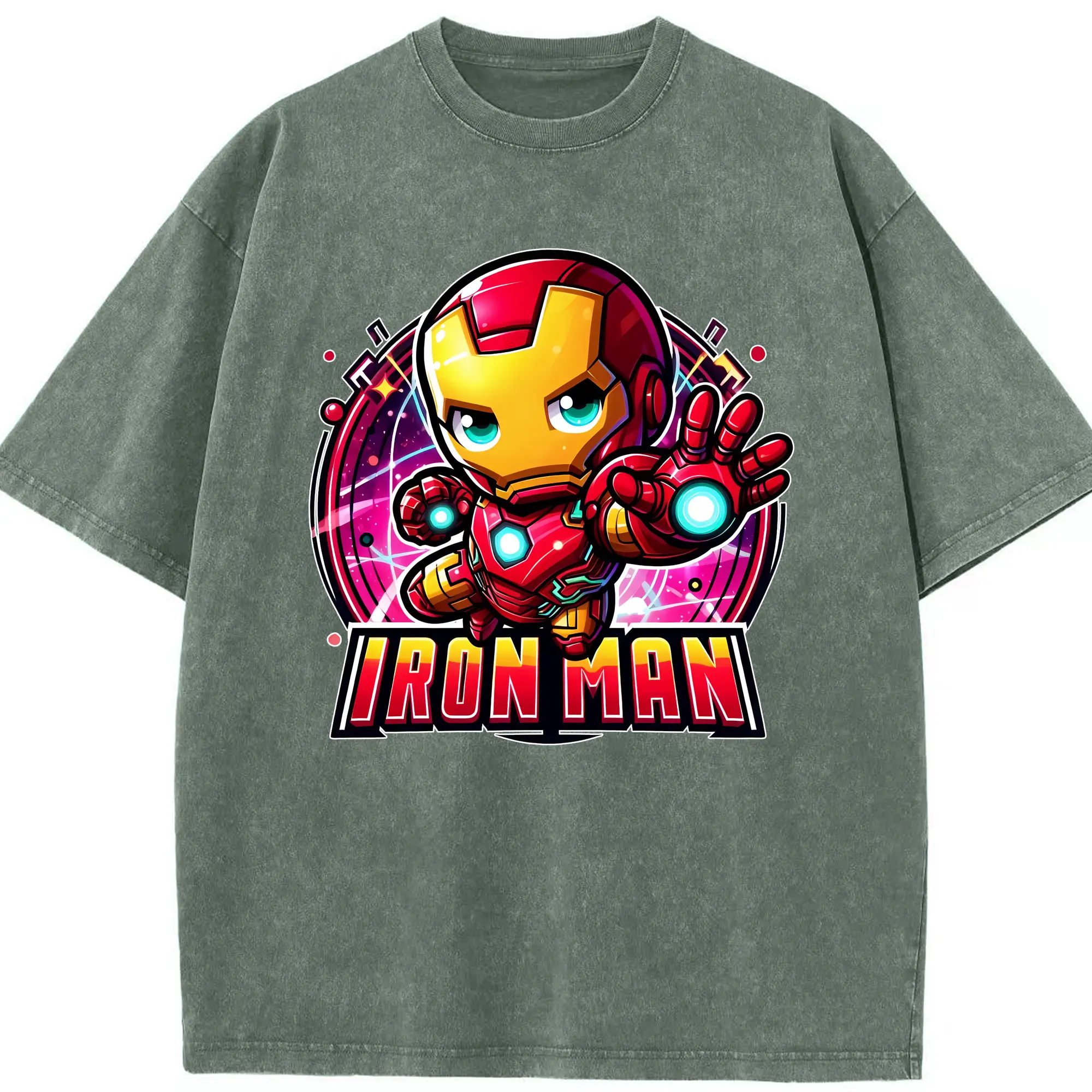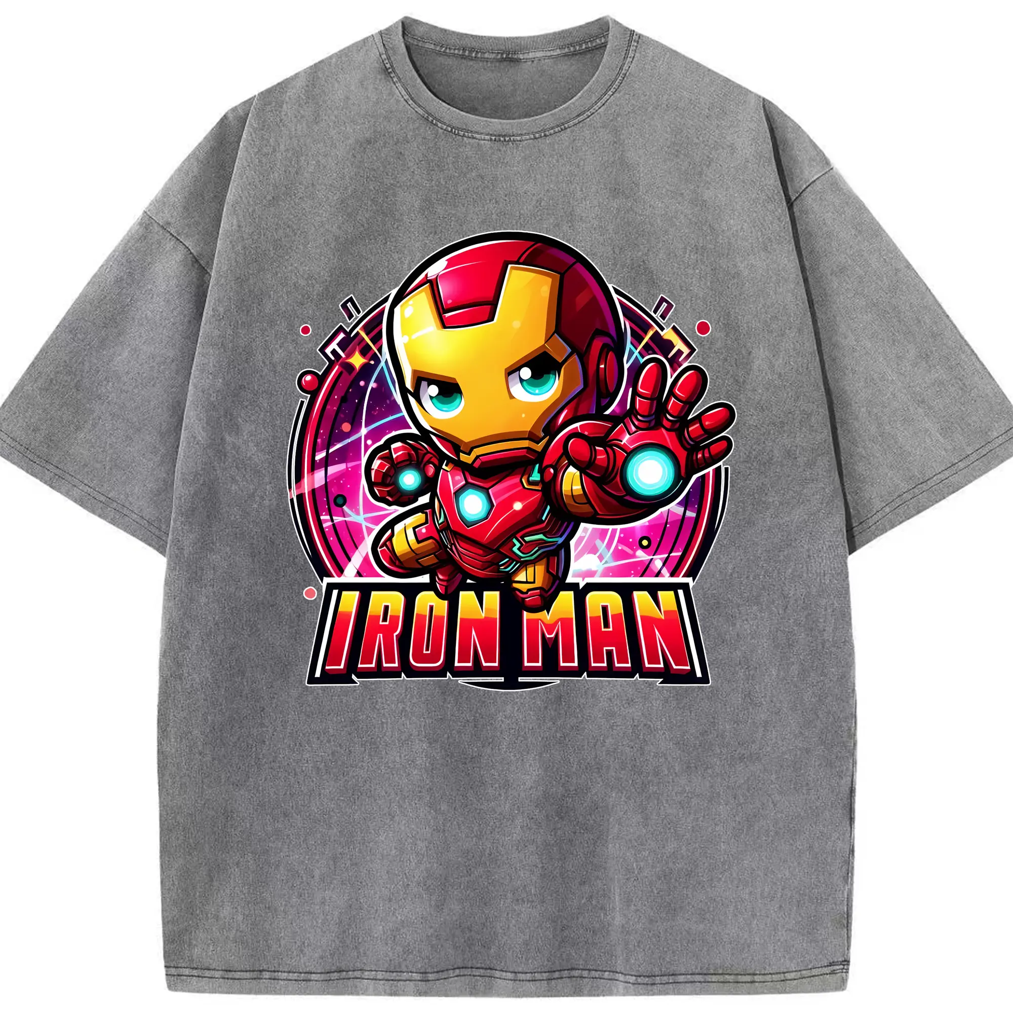 アベンジャーズ (Avenjāzu) グッズ アイアンマン(Iron Man) - 綿100% ヴィンテージ風 半袖Tシャツ ・ 背面プリント ・ 柔らか肌触り ・ 通気性 快適 ・ スポーツ カジュアル 外出用
