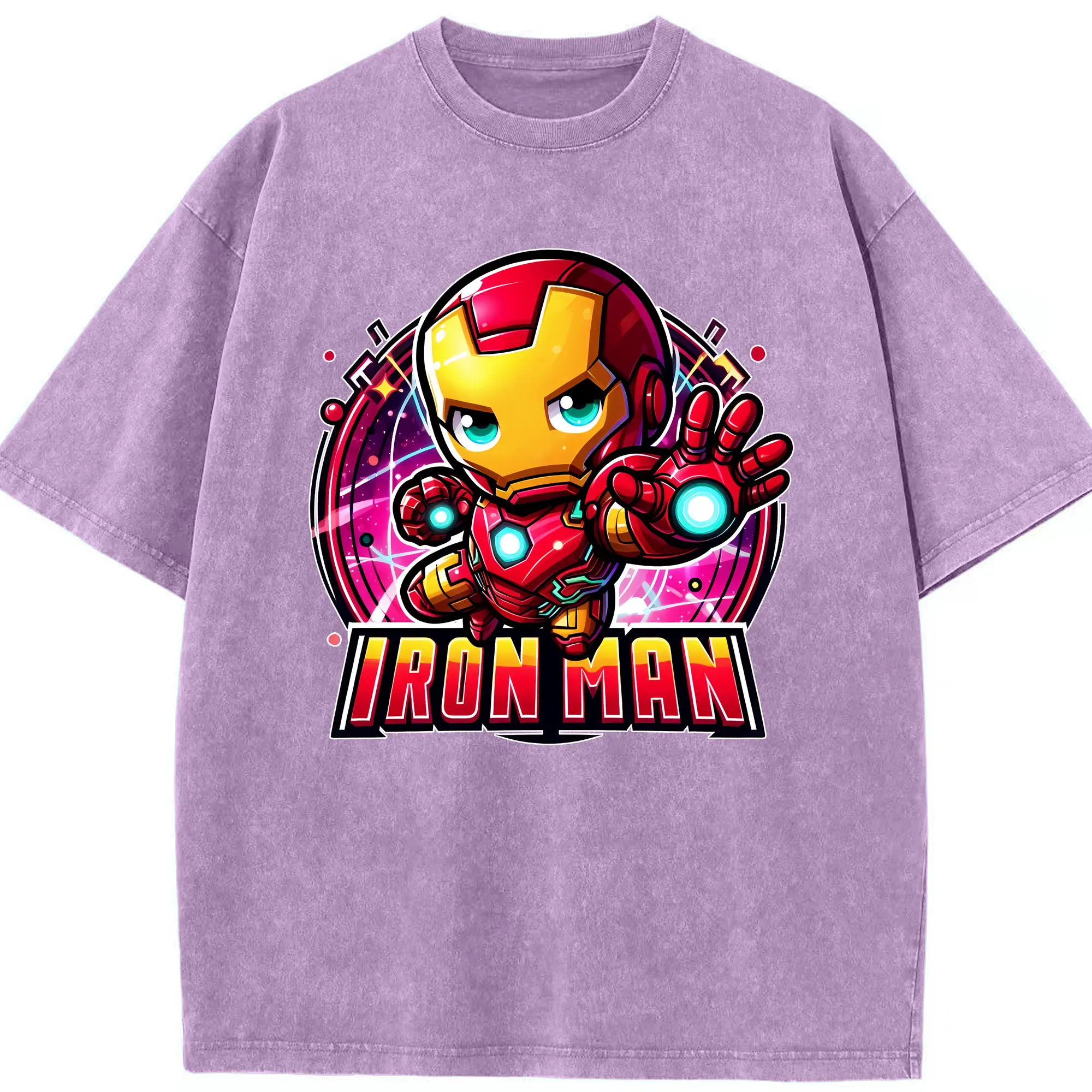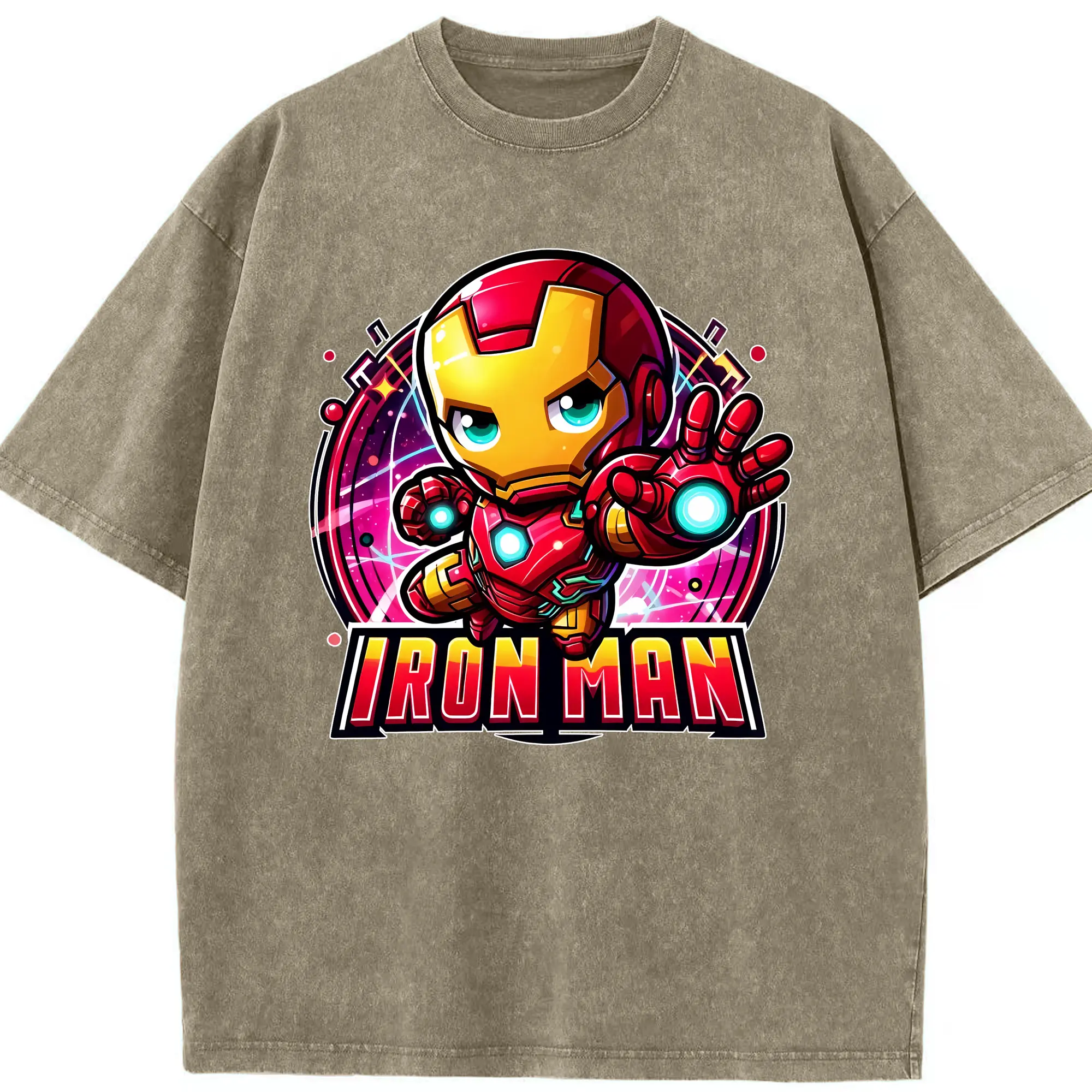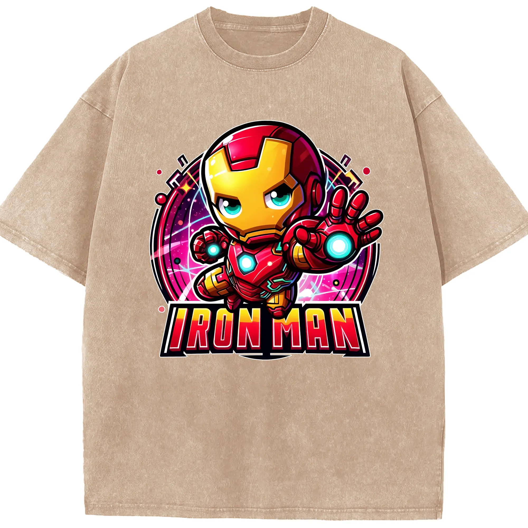アベンジャーズ (Avenjāzu) グッズ アイアンマン(Iron Man) - 綿100% ヴィンテージ風 半袖Tシャツ ・ 背面プリント ・ 柔らか肌触り ・ 通気性 快適 ・ スポーツ カジュアル 外出用