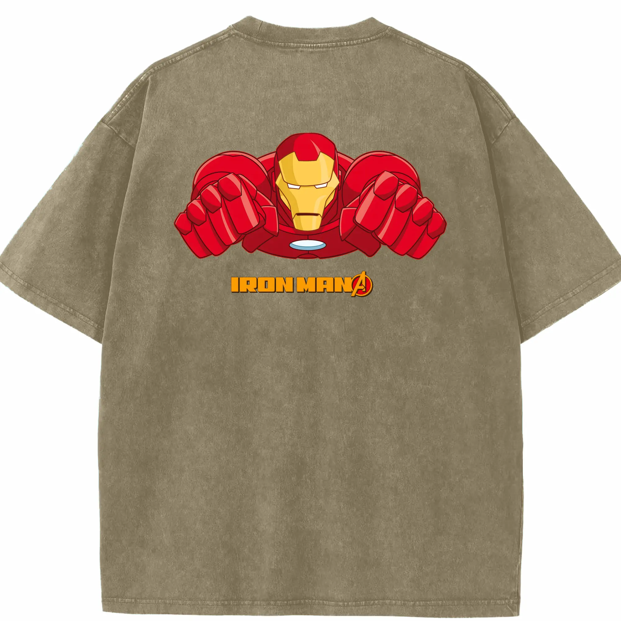 アベンジャーズ (Avenjāzu) グッズ アイアンマン(Iron Man) - 綿100% ヴィンテージ風 半袖Tシャツ ・ フロントプリント ・ 柔らか肌触り ・ 通気性 快適 ・ スポーツ カジュアル 外出用