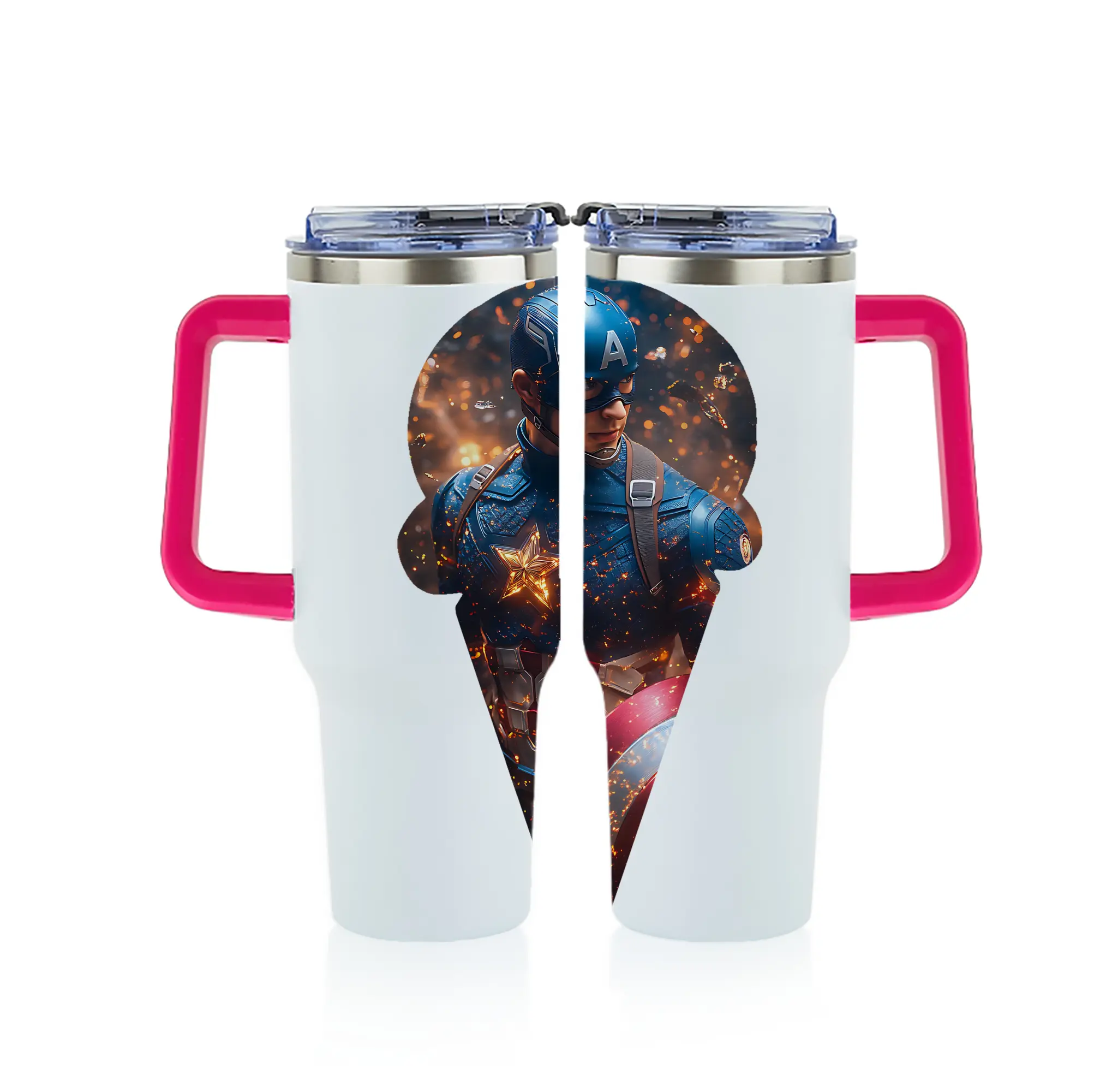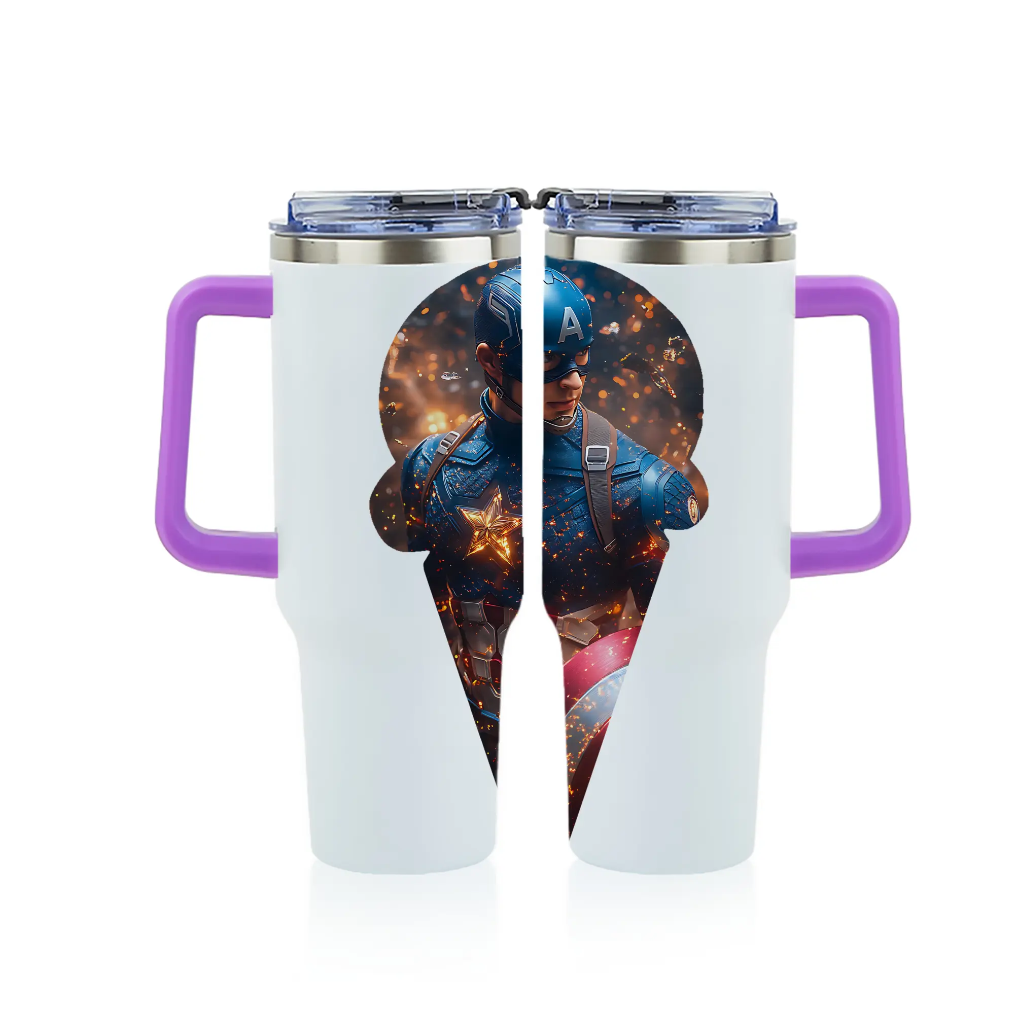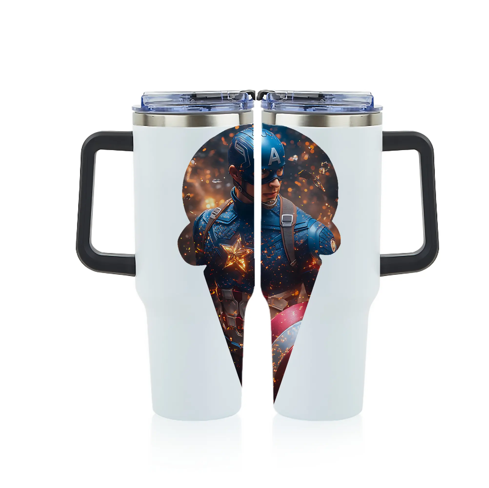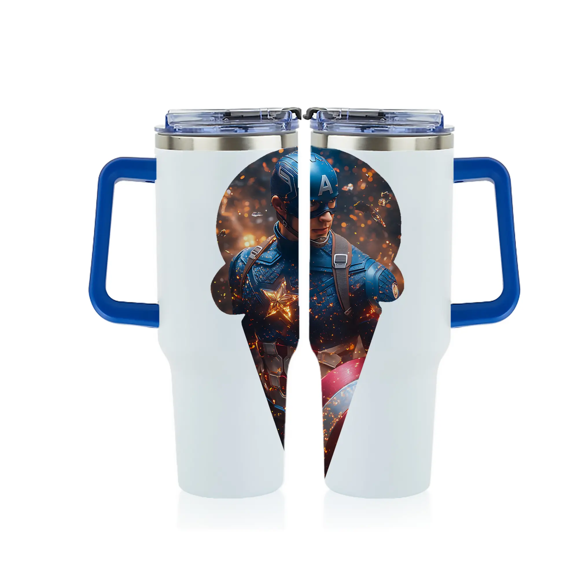アベンジャーズ (Avenjāzu) グッズ キャプテン・アメリカ(Captain America) - 1200mL フルプリント車用タンブラー ・ 304ステンレス 内側 ・ 201ステンレス 外側 ・ 保温 保冷 ・ 通勤 ドライブ アウトドア用