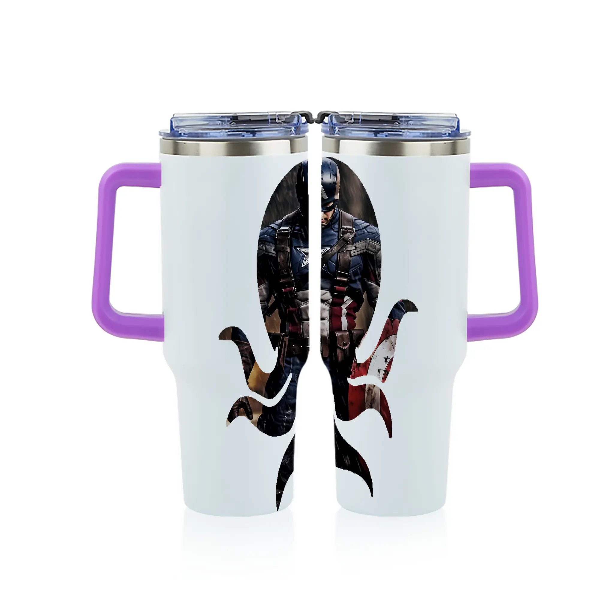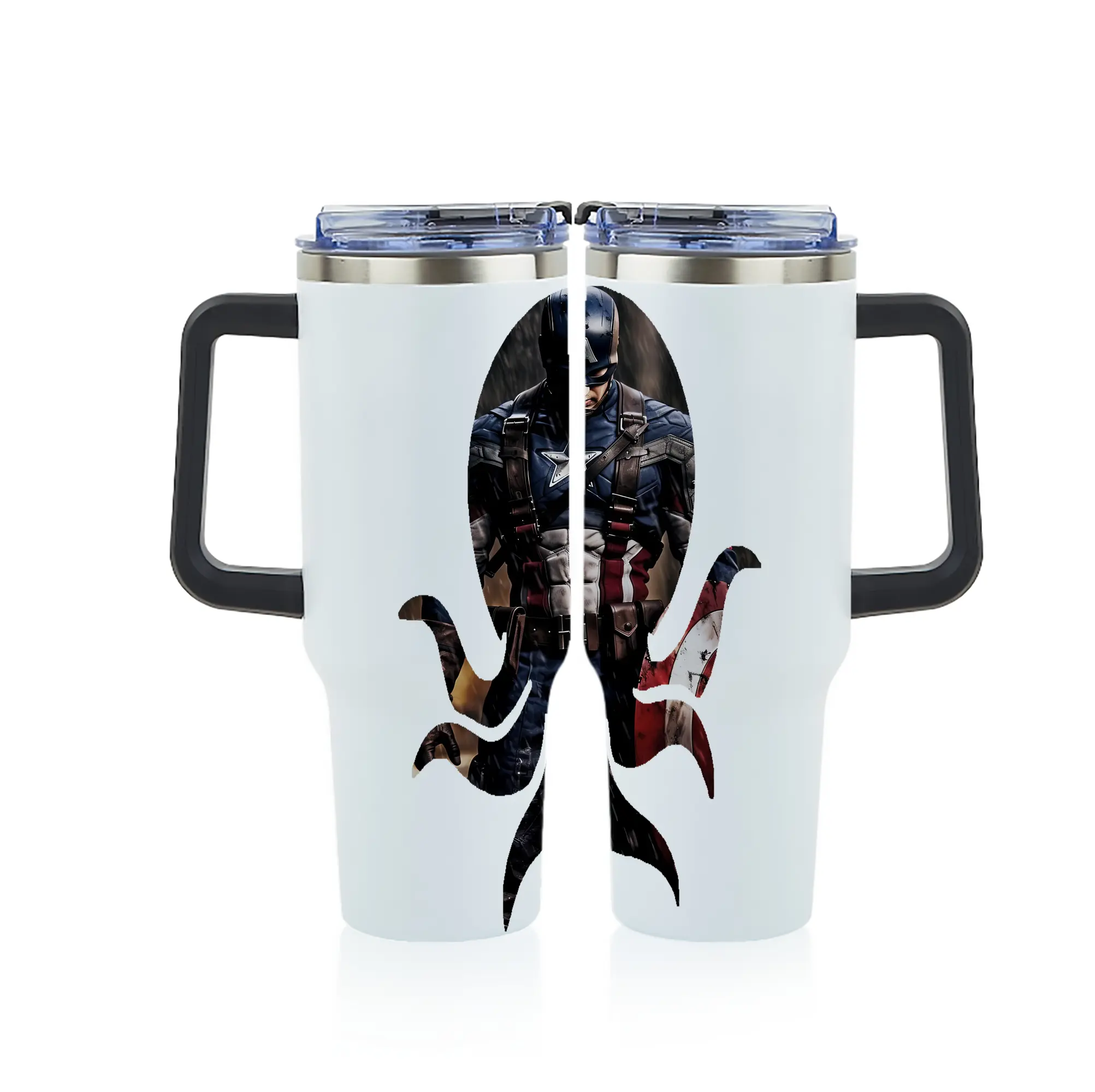 アベンジャーズ (Avenjāzu) グッズ キャプテン・アメリカ(Captain America) - 1200mL フルプリント車用タンブラー ・ 304ステンレス 内側 ・ 201ステンレス 外側 ・ 保温 保冷 ・ 通勤 ドライブ アウトドア用