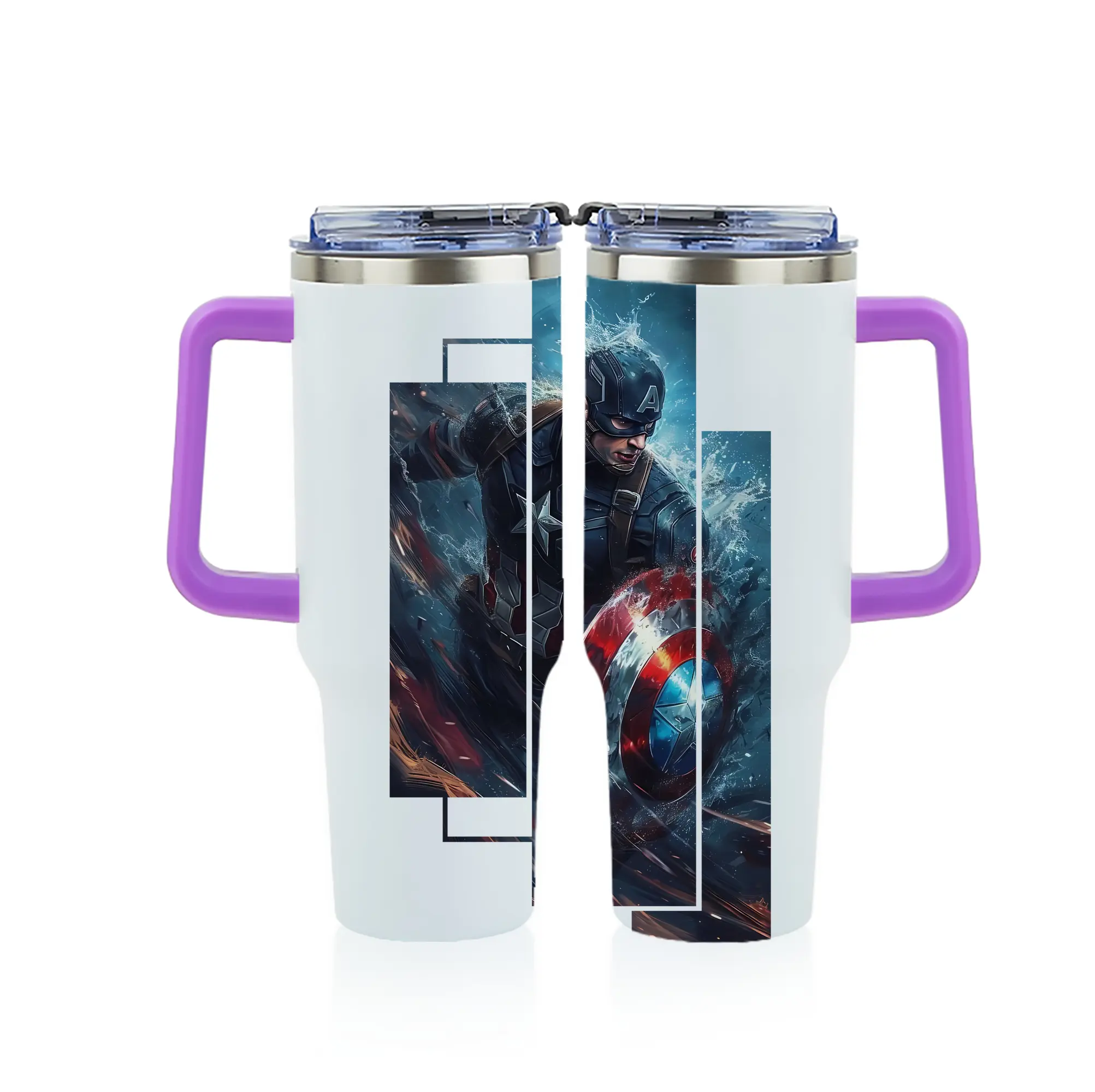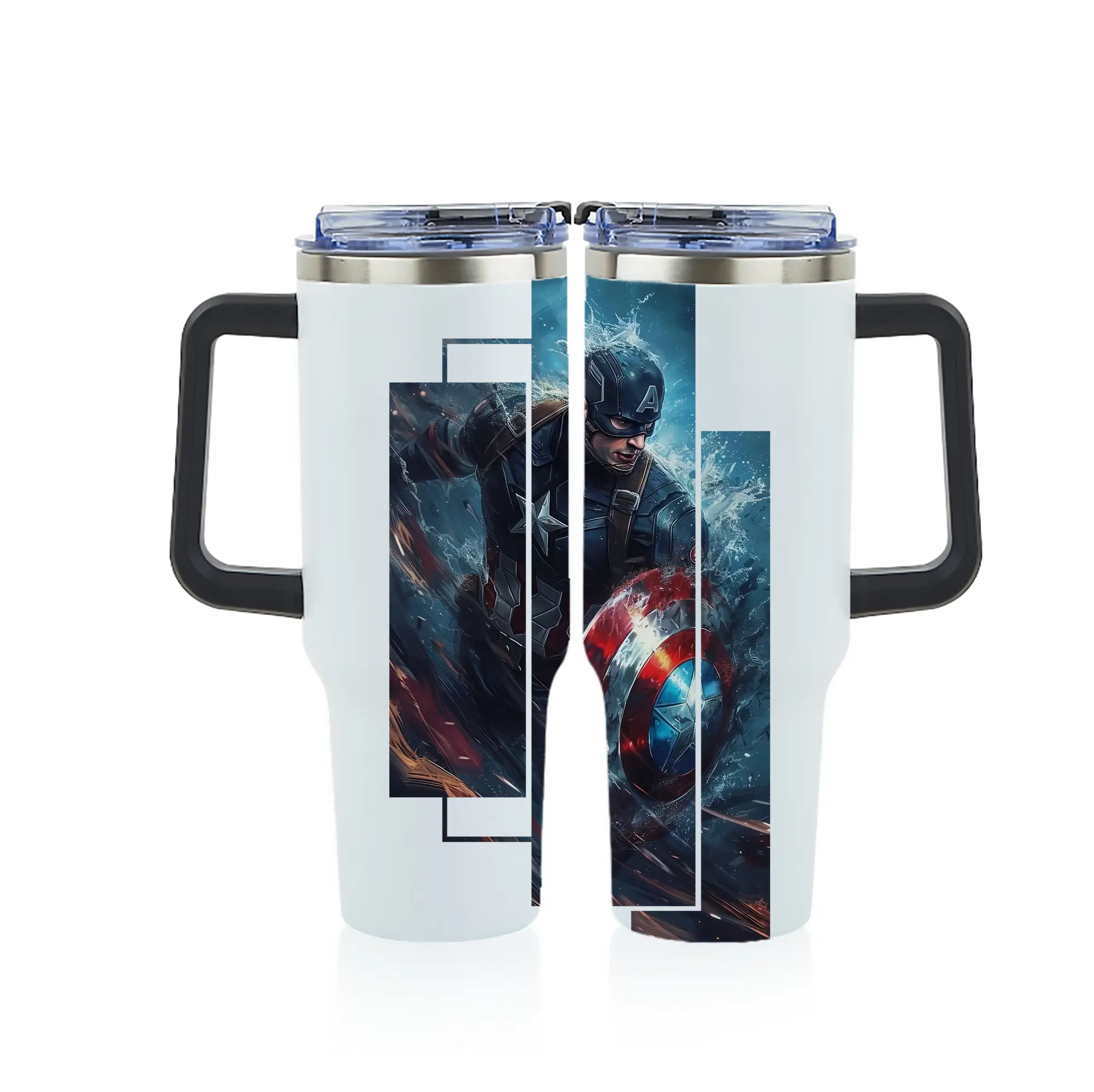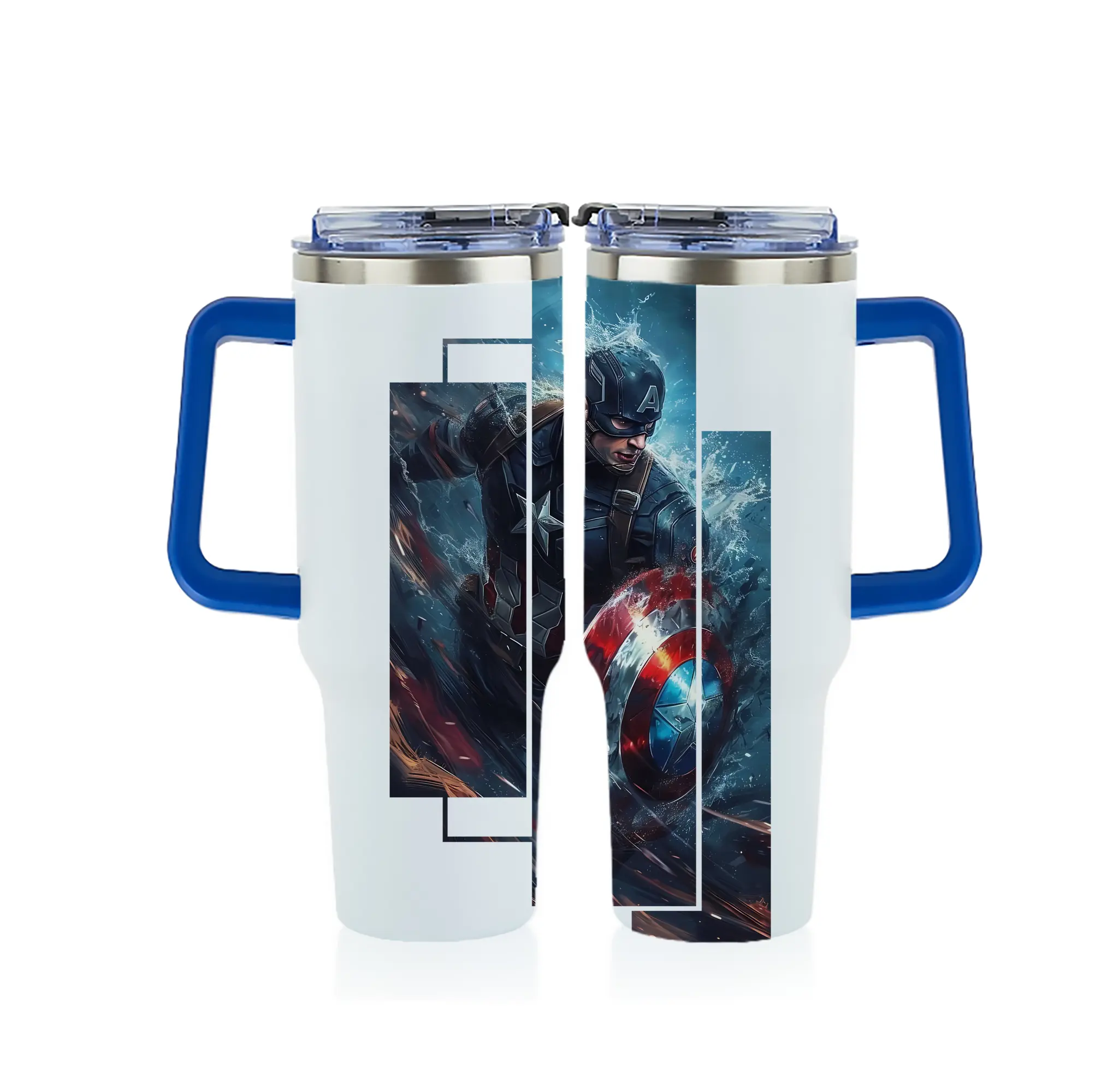 アベンジャーズ (Avenjāzu) グッズ キャプテン・アメリカ(Captain America) - 1200mL フルプリント車用タンブラー ・ 304ステンレス 内側 ・ 201ステンレス 外側 ・ 保温 保冷 ・ 通勤 ドライブ アウトドア用