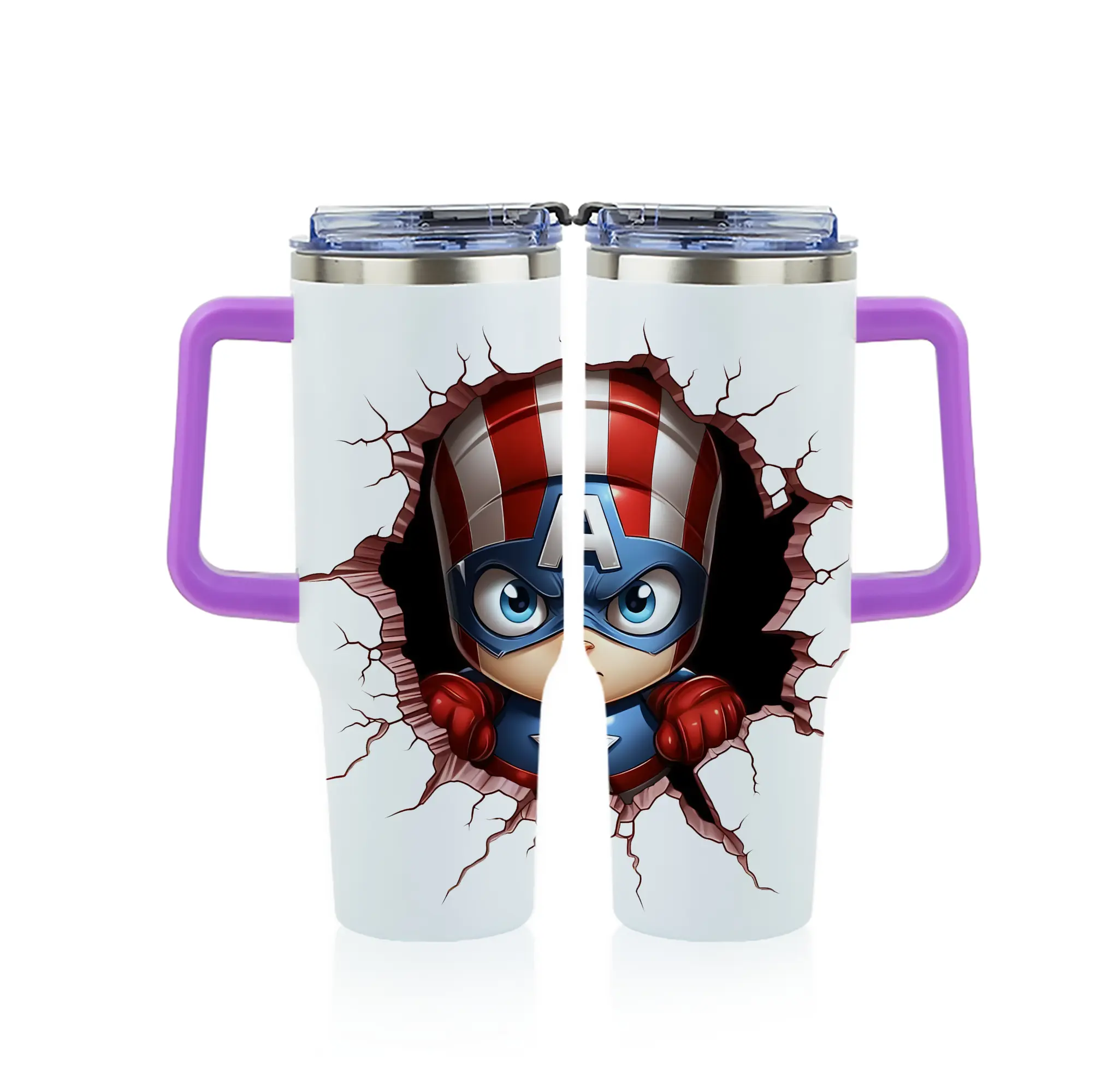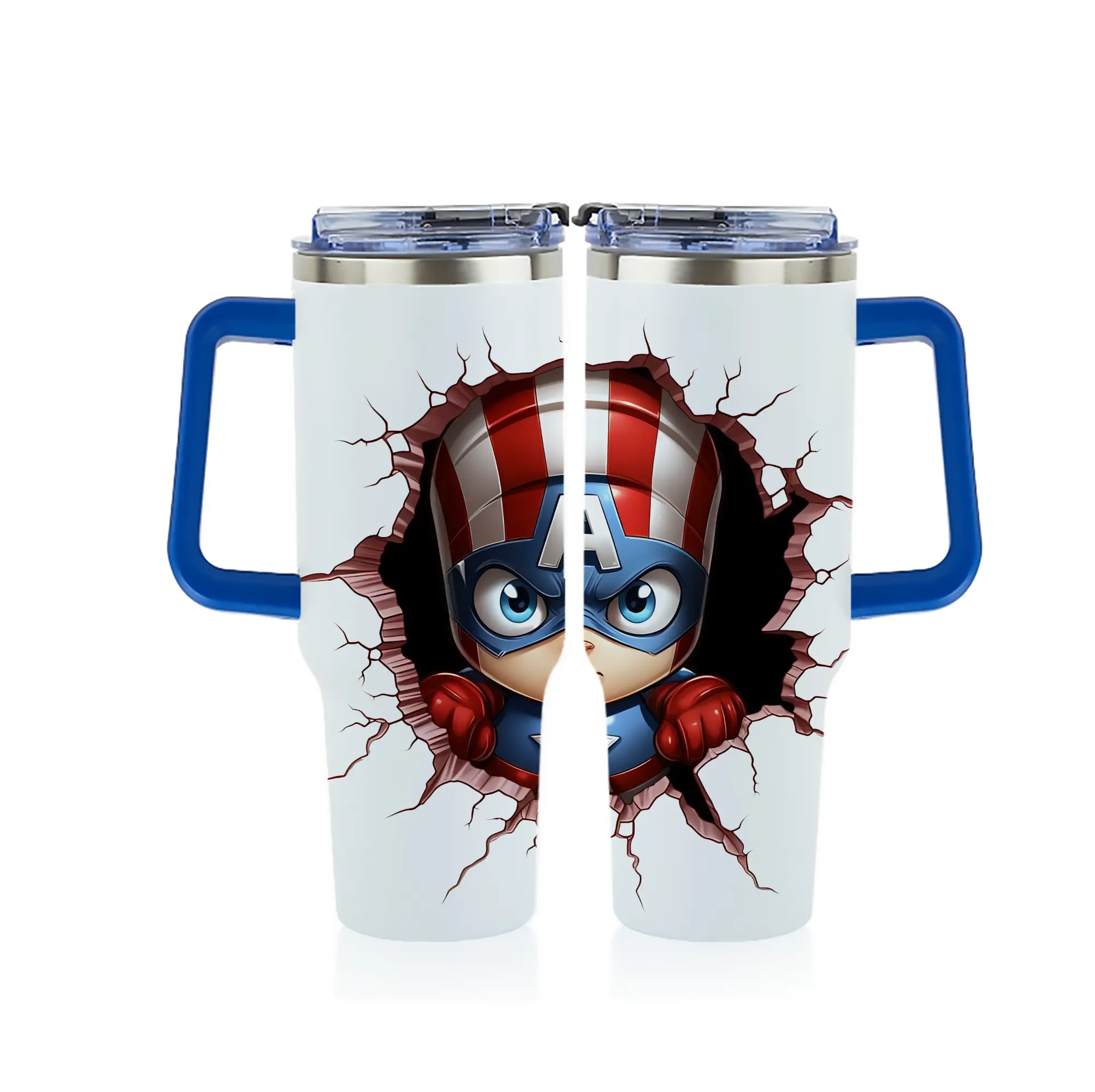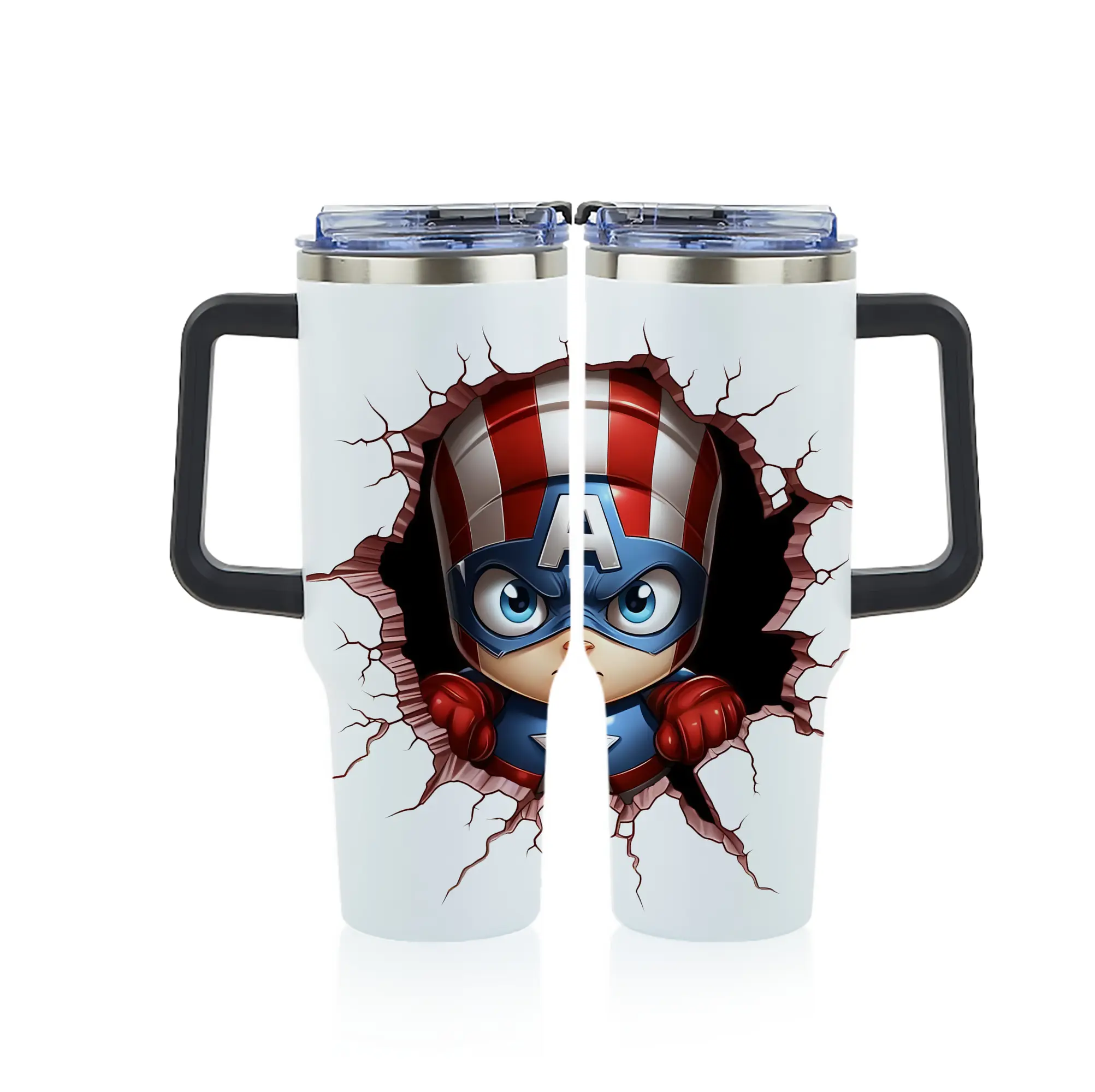 アベンジャーズ (Avenjāzu) グッズ キャプテン・アメリカ(Captain America) - 1200mL フルプリント車用タンブラー ・ 304ステンレス 内側 ・ 201ステンレス 外側 ・ 保温 保冷 ・ 通勤 ドライブ アウトドア用