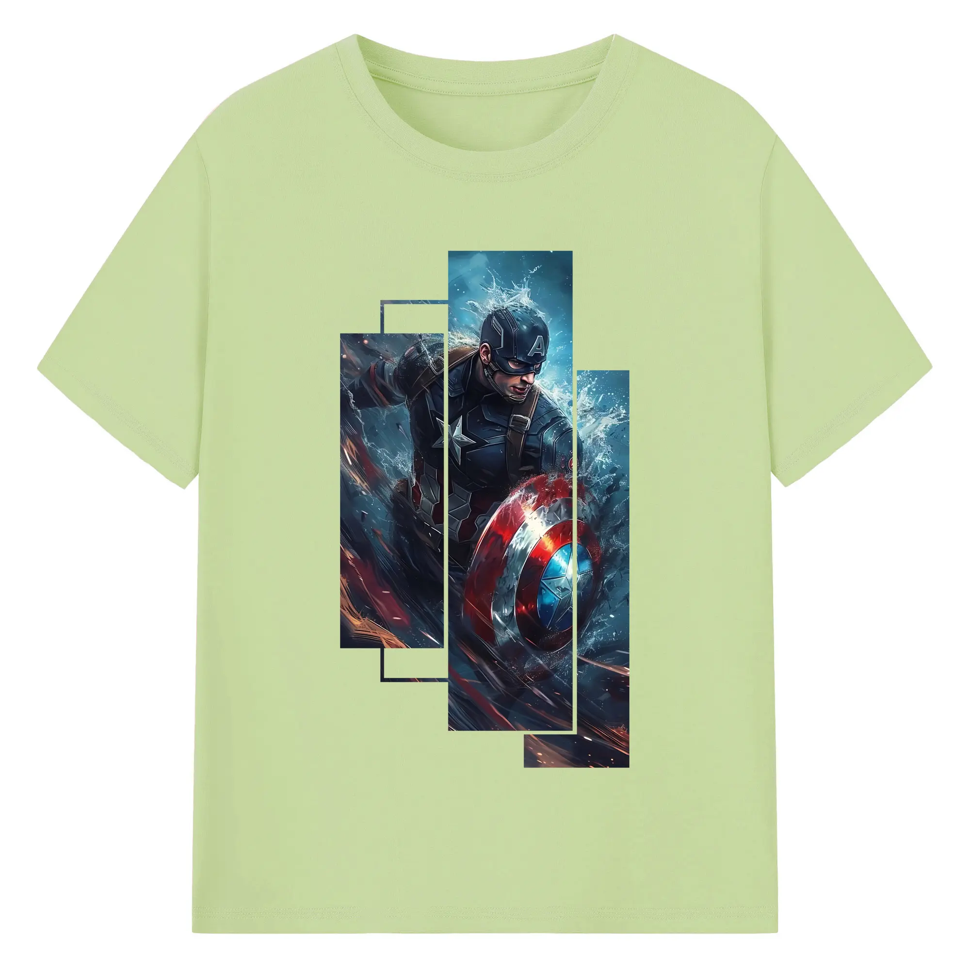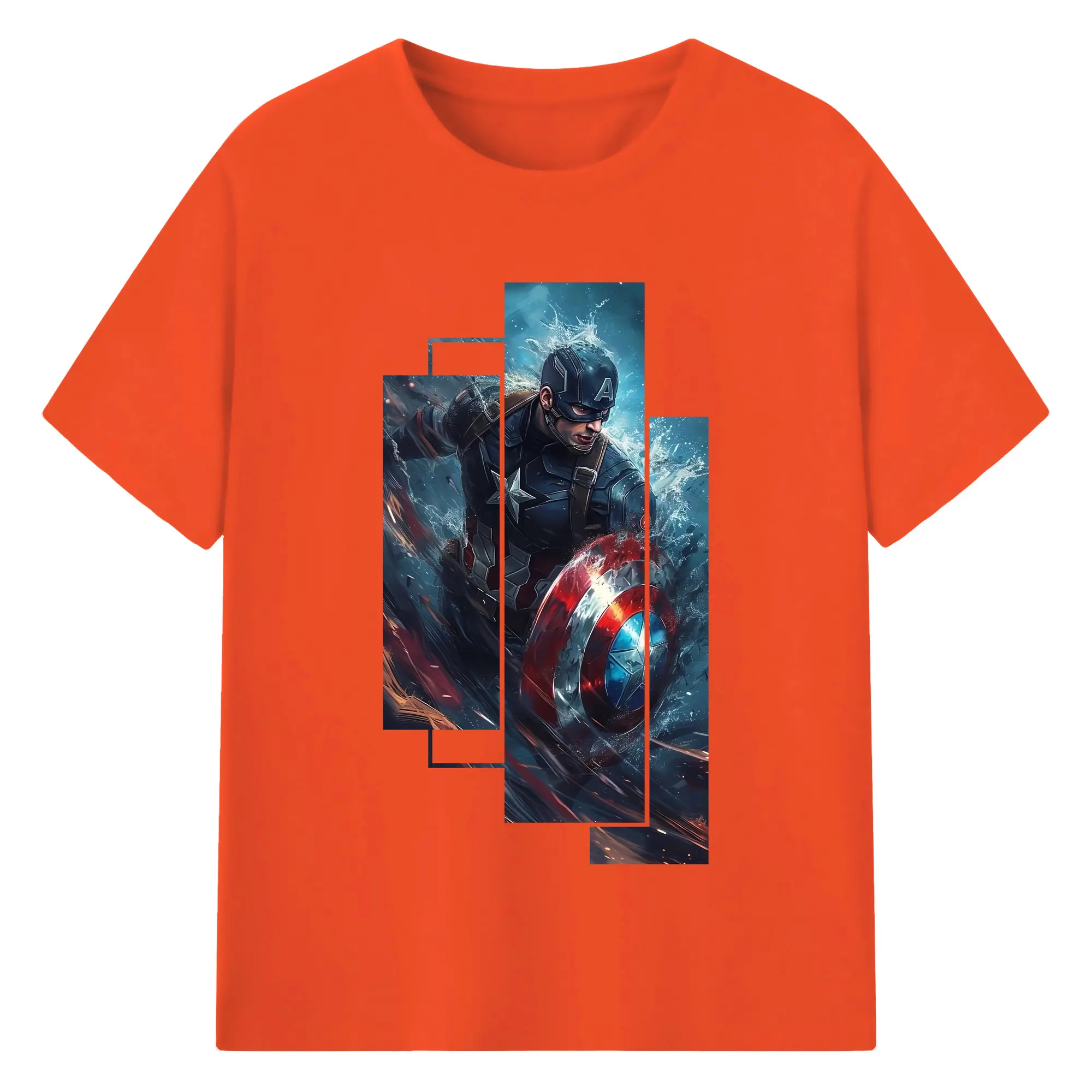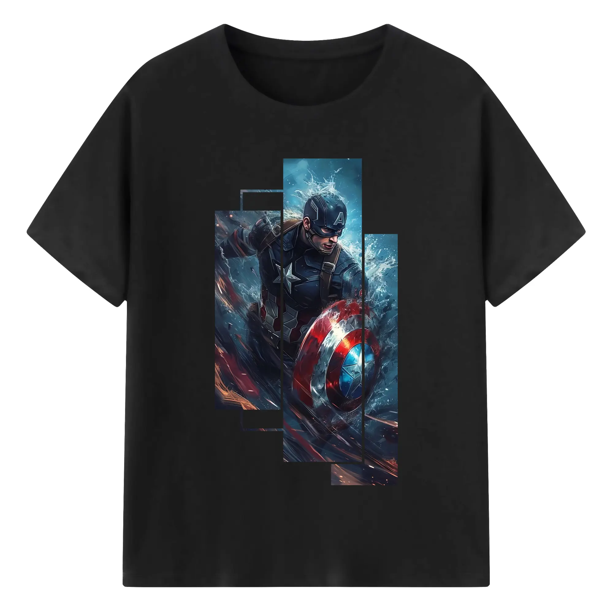 アベンジャーズ (Avenjāzu) グッズ キャプテン・アメリカ(Captain America) - 綿100% 半袖Tシャツ ・ バックプリント ・ 快適 通気性 ・ 日常使い 散歩 スポーツ用