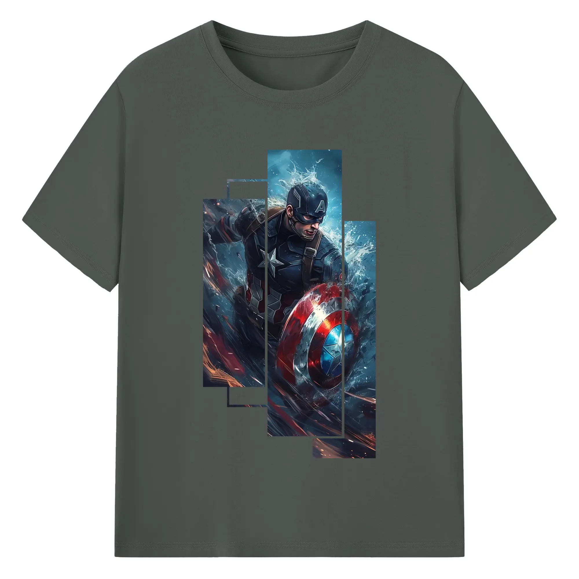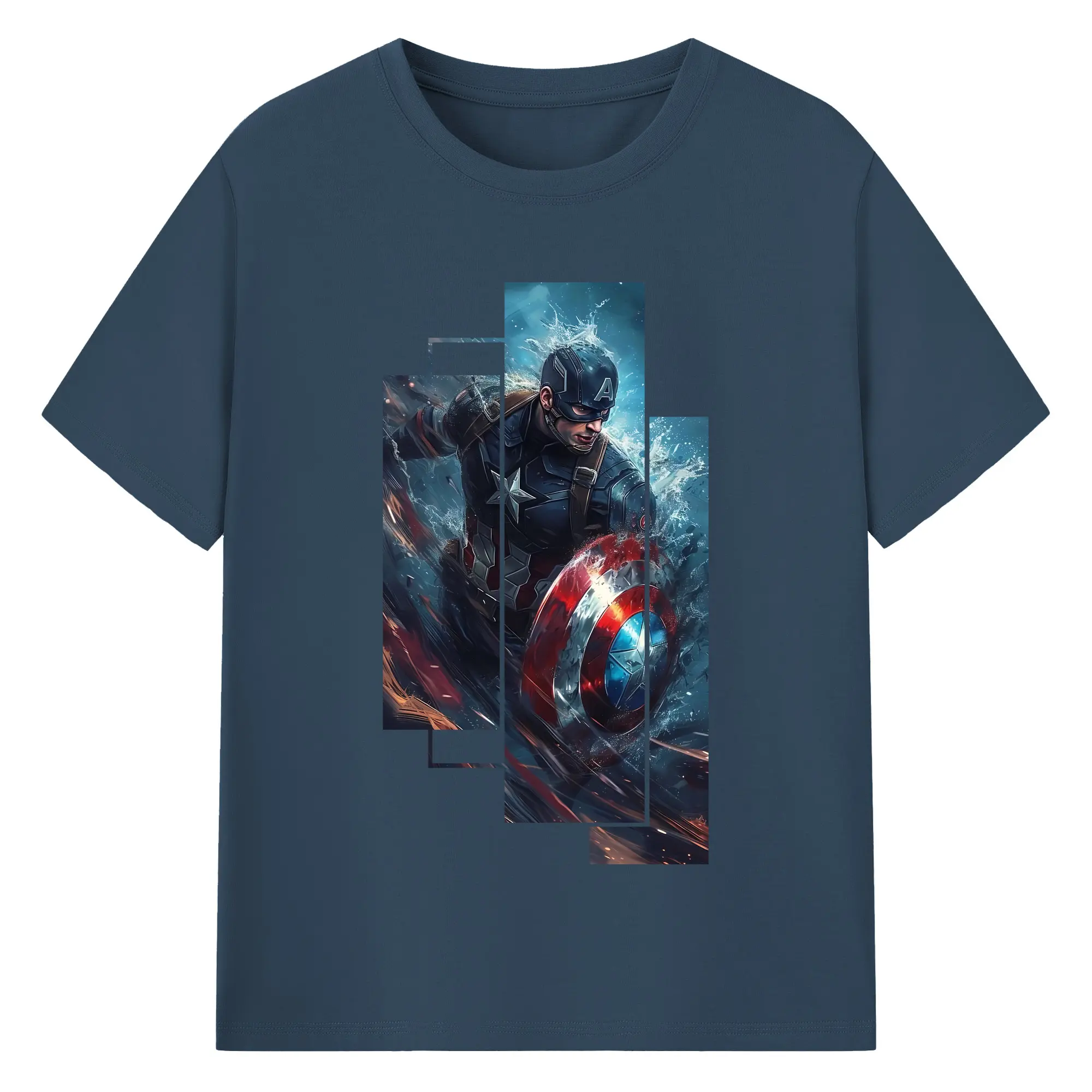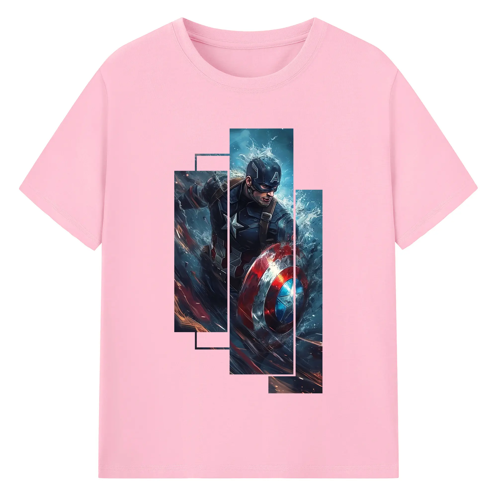 アベンジャーズ (Avenjāzu) グッズ キャプテン・アメリカ(Captain America) - 綿100% 半袖Tシャツ ・ バックプリント ・ 快適 通気性 ・ 日常使い 散歩 スポーツ用