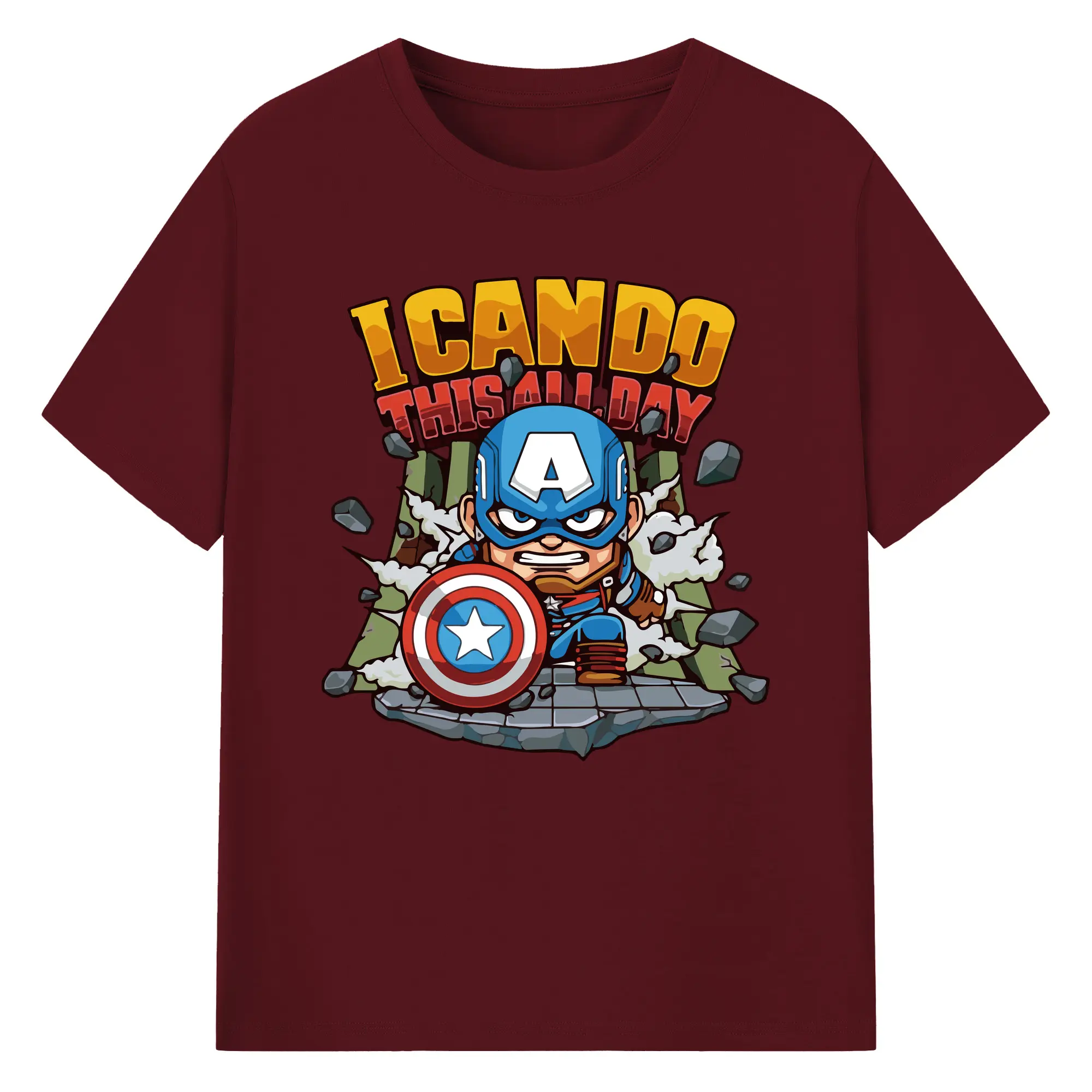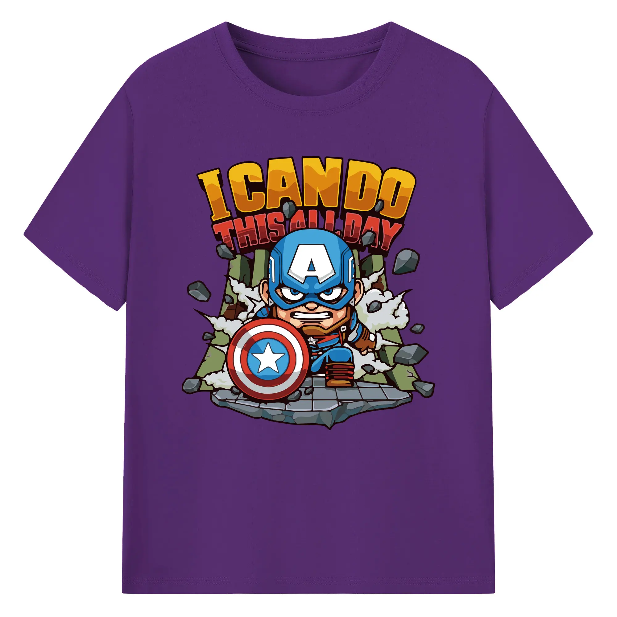 アベンジャーズ (Avenjāzu) グッズ キャプテン・アメリカ(Captain America) - 綿100% 半袖Tシャツ ・ バックプリント ・ 快適 通気性 ・ 日常使い 散歩 スポーツ用