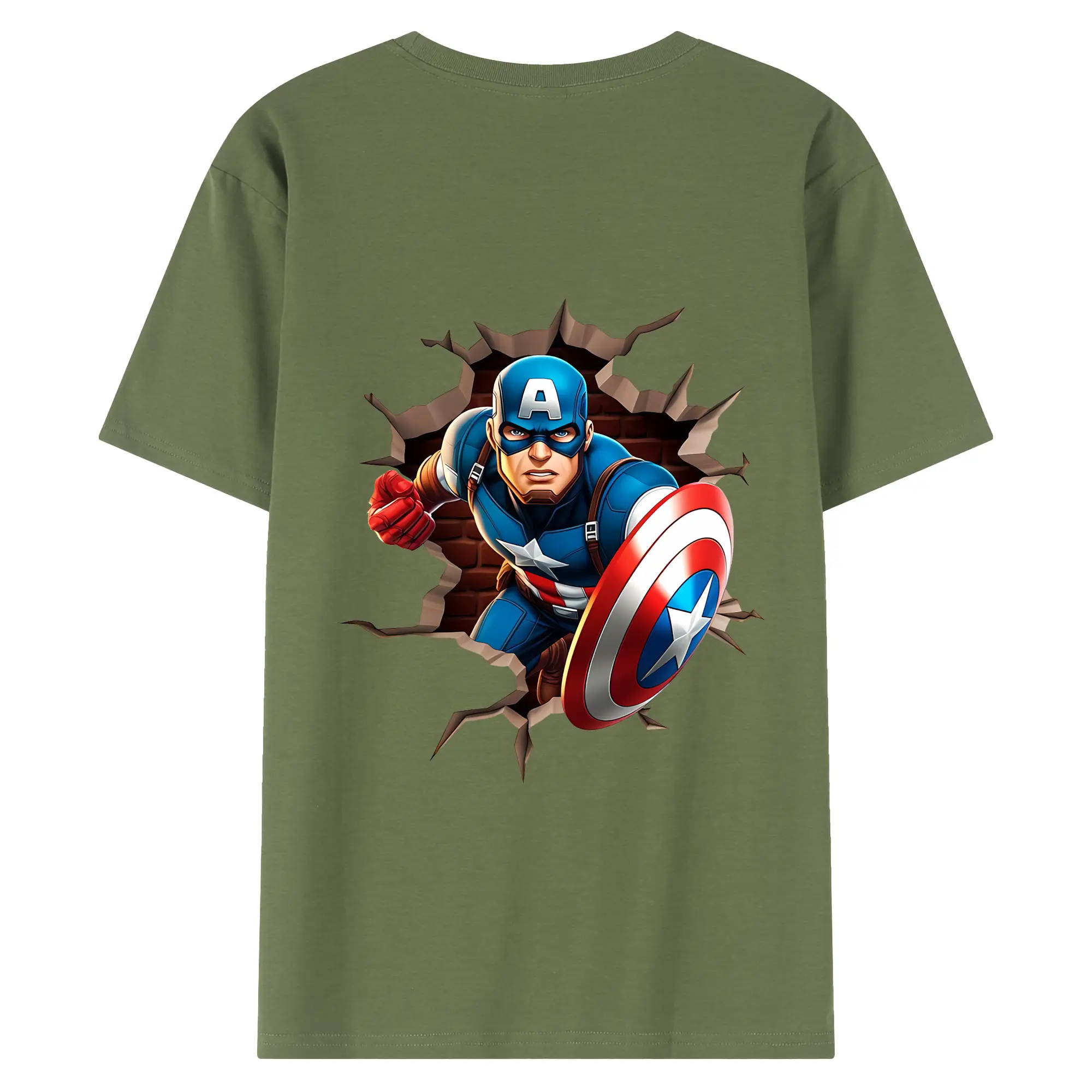 アベンジャーズ (Avenjāzu) グッズ キャプテン・アメリカ(Captain America) - 綿100% 半袖Tシャツ ・ フロントプリント ・ 快適 通気性 ・ 日常使い 散歩 スポーツ用
