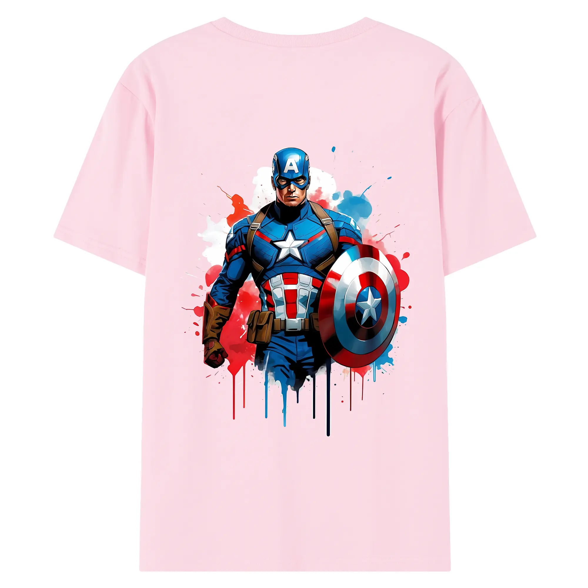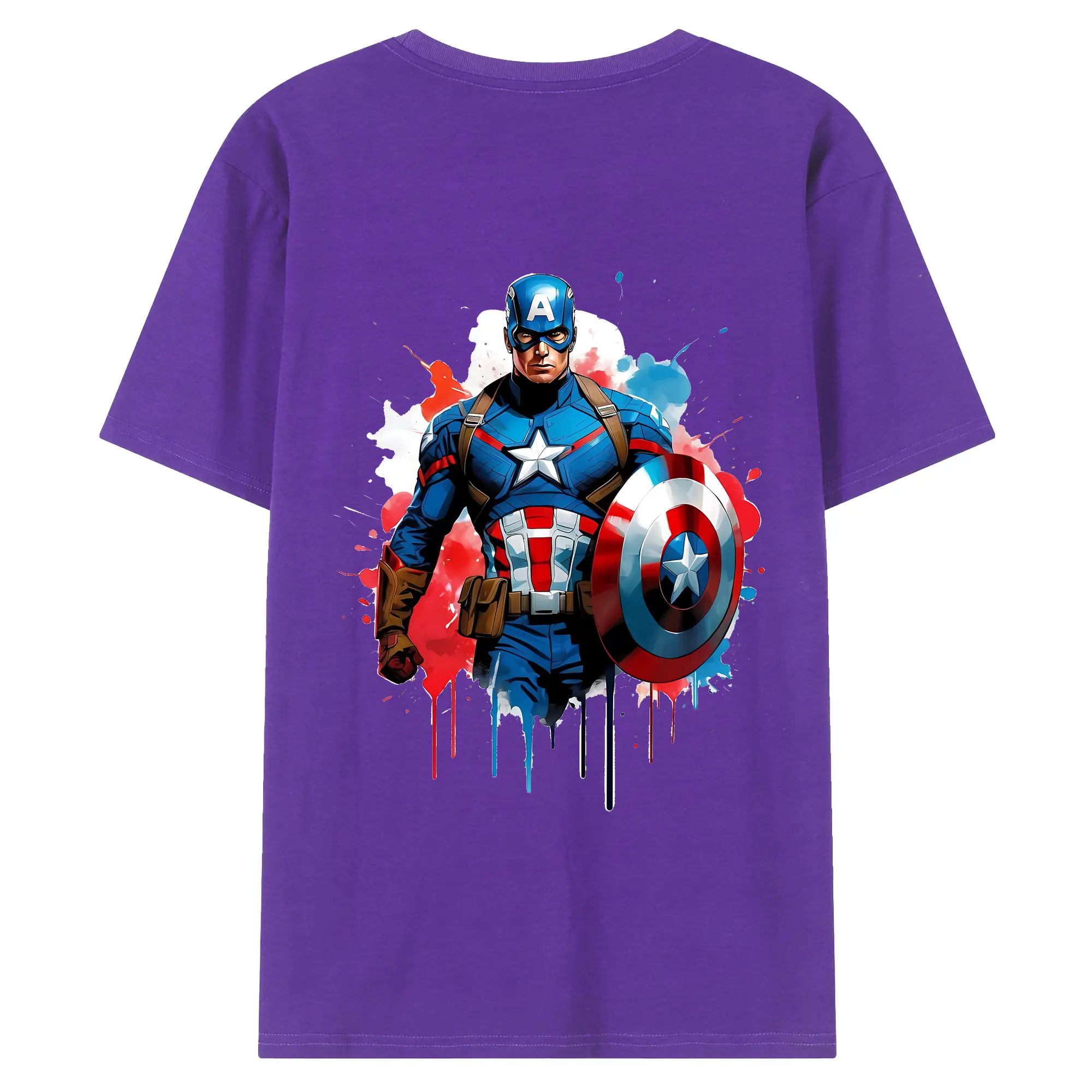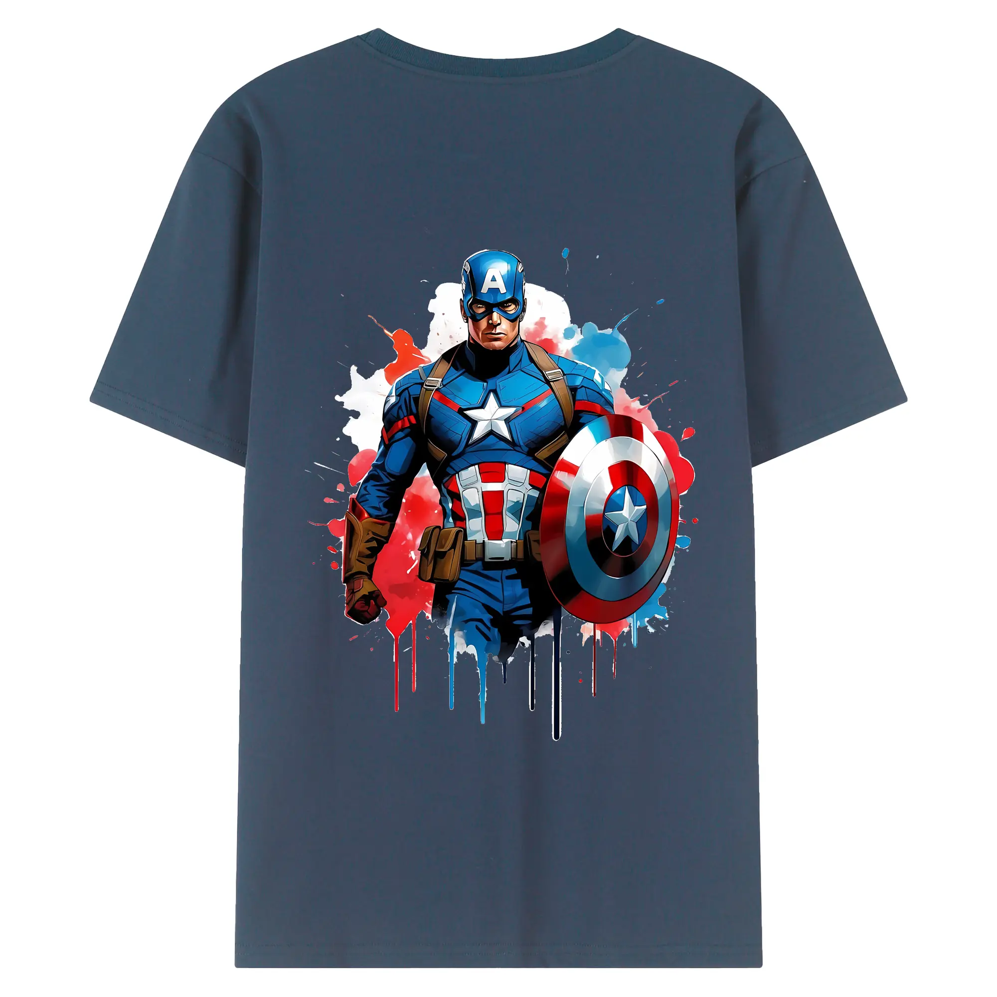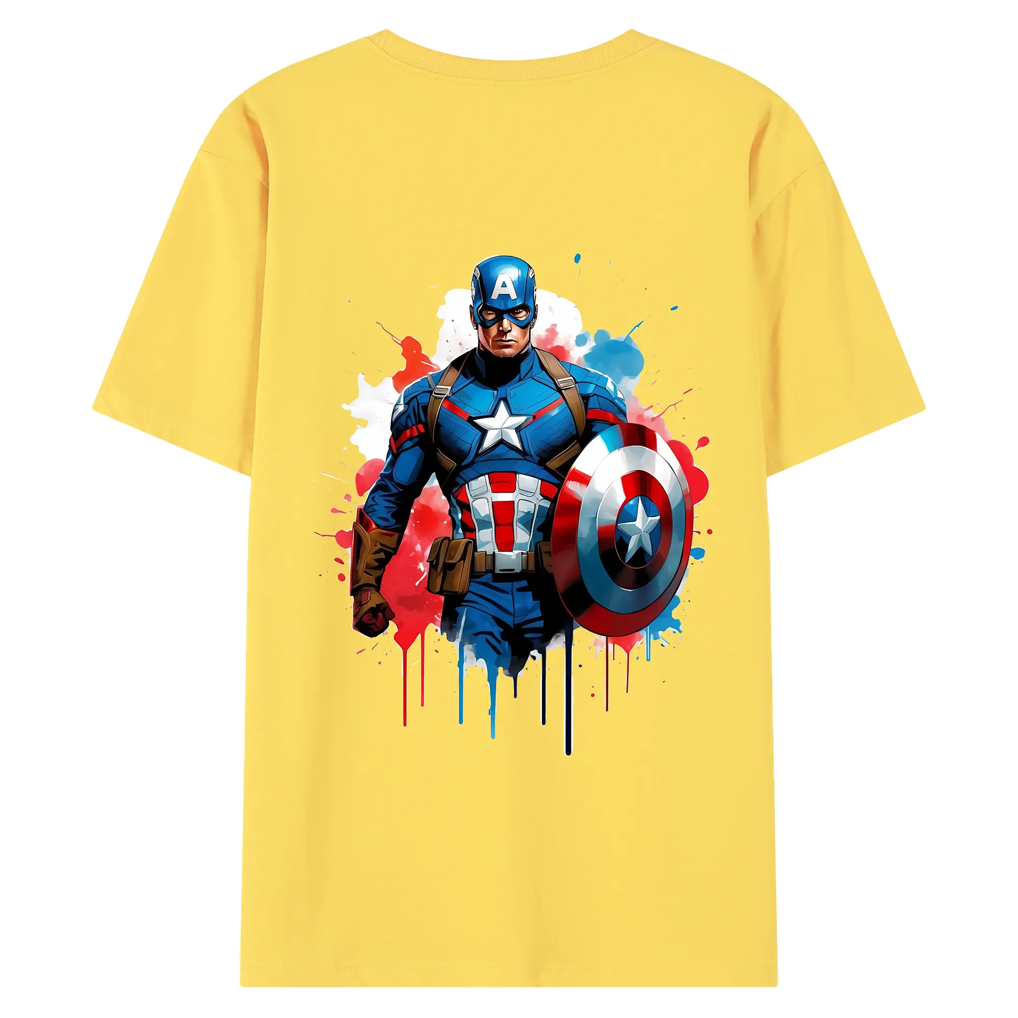 アベンジャーズ (Avenjāzu) グッズ キャプテン・アメリカ(Captain America) - 綿100% 半袖Tシャツ ・ フロントプリント ・ 快適 通気性 ・ 日常使い 散歩 スポーツ用