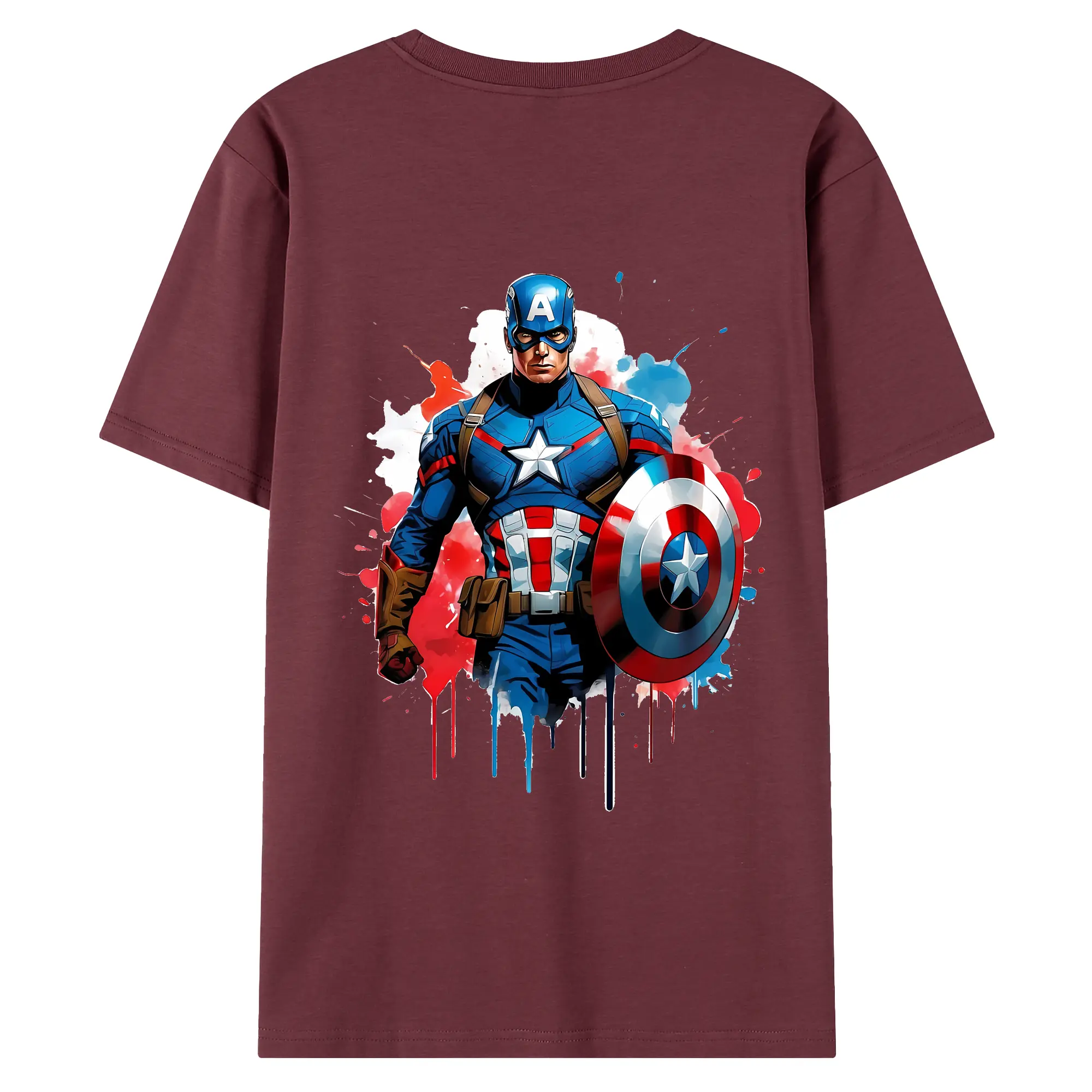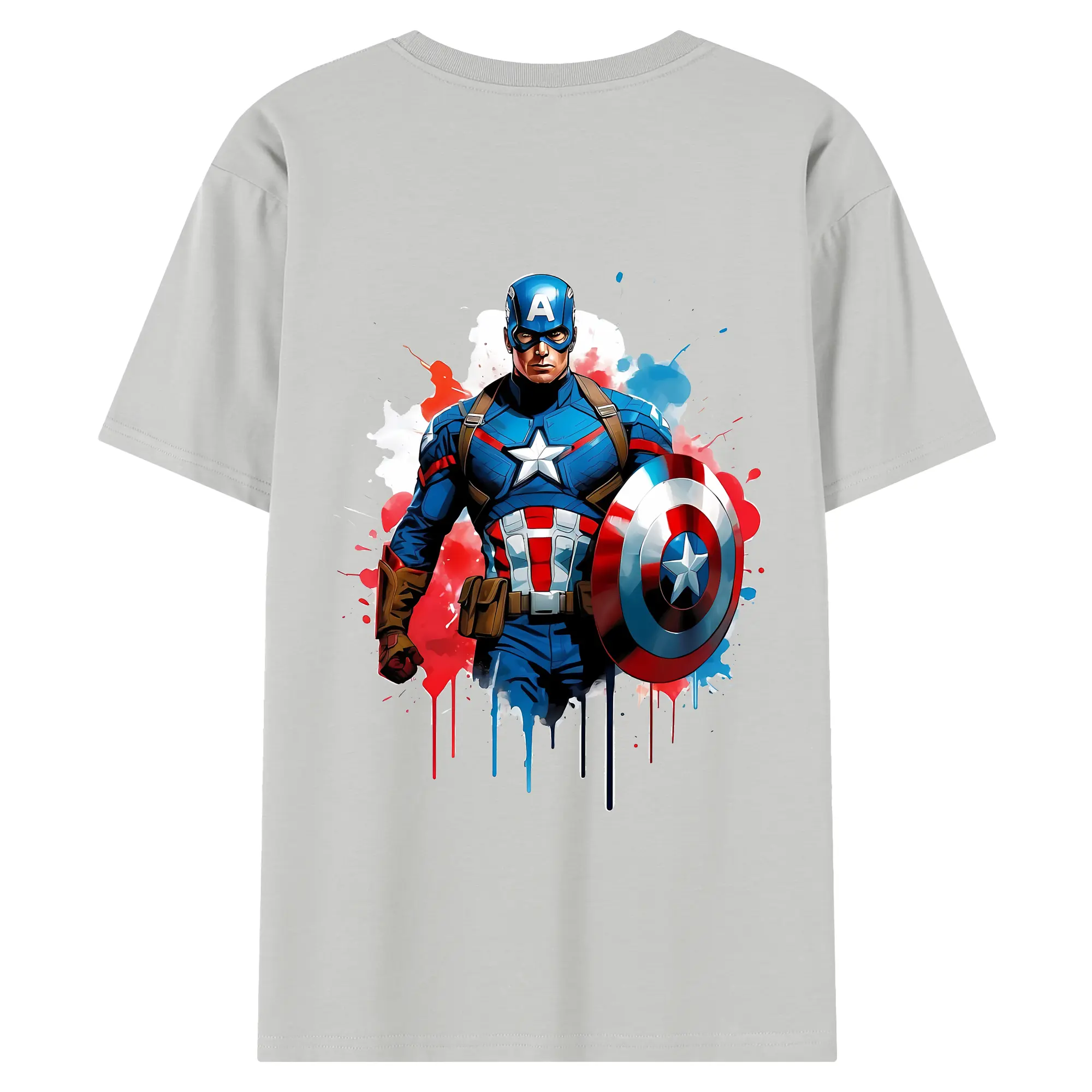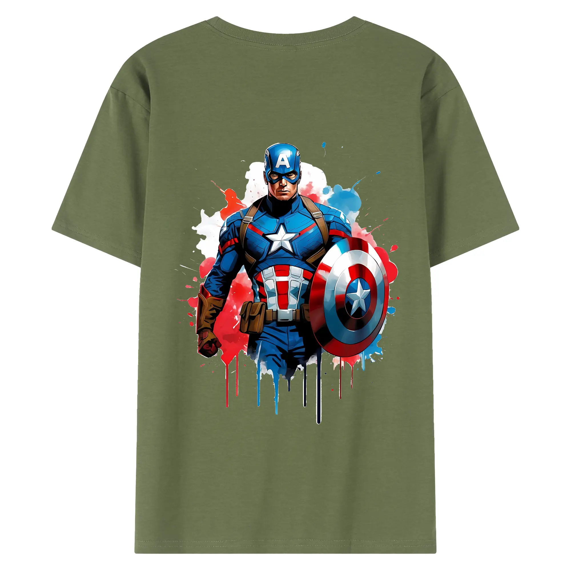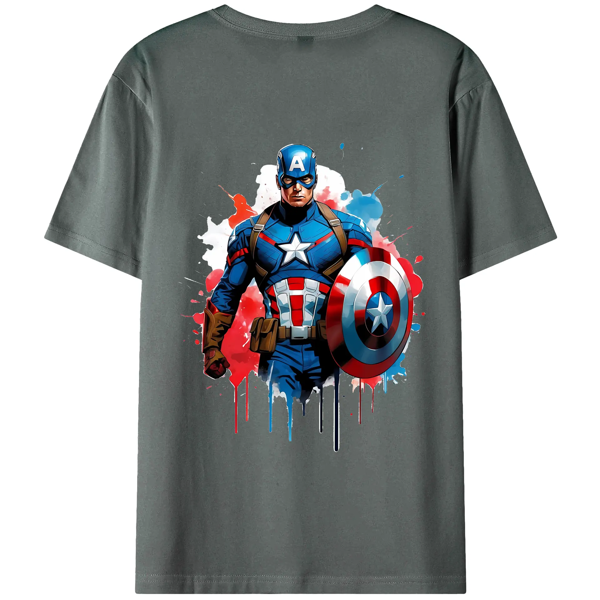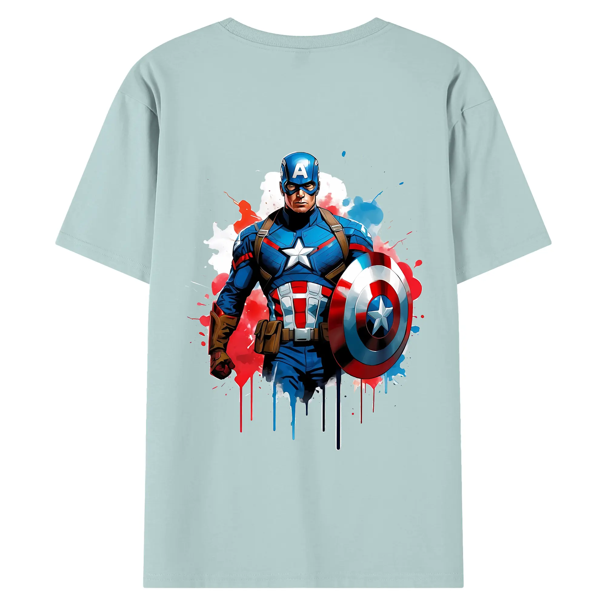 アベンジャーズ (Avenjāzu) グッズ キャプテン・アメリカ(Captain America) - 綿100% 半袖Tシャツ ・ フロントプリント ・ 快適 通気性 ・ 日常使い 散歩 スポーツ用