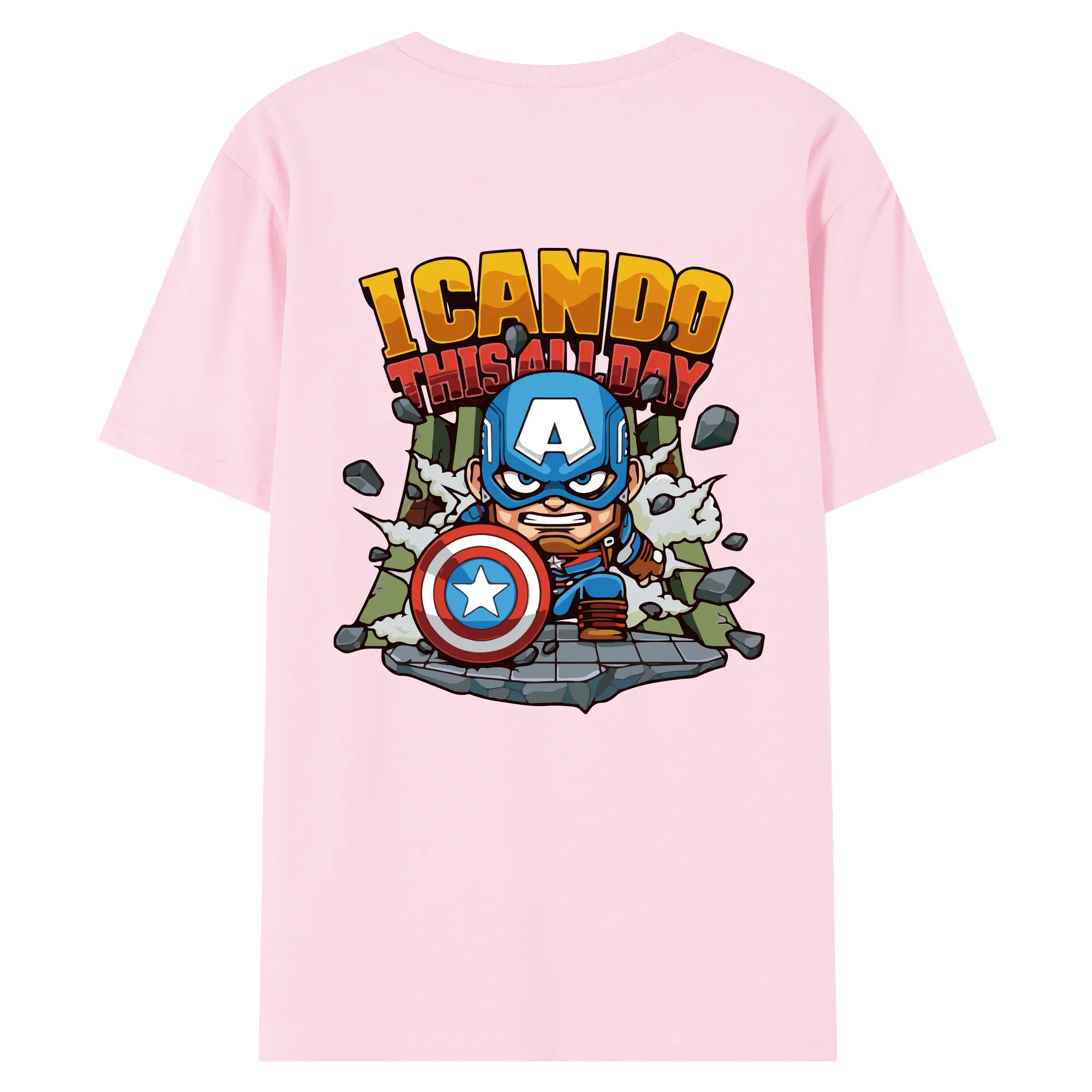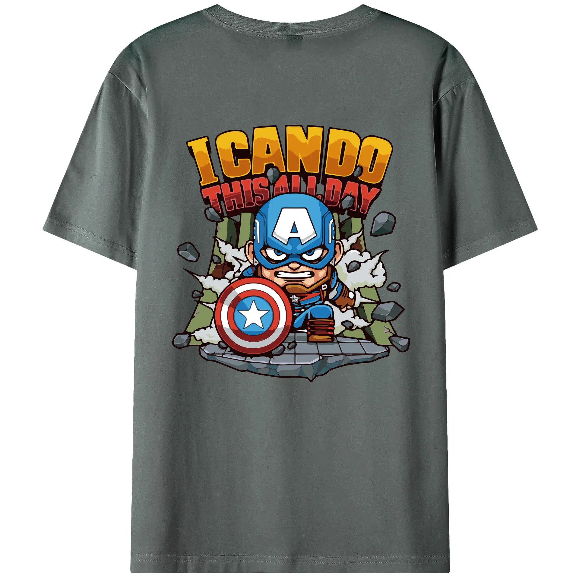 アベンジャーズ (Avenjāzu) グッズ キャプテン・アメリカ(Captain America) - 綿100% 半袖Tシャツ ・ フロントプリント ・ 快適 通気性 ・ 日常使い 散歩 スポーツ用