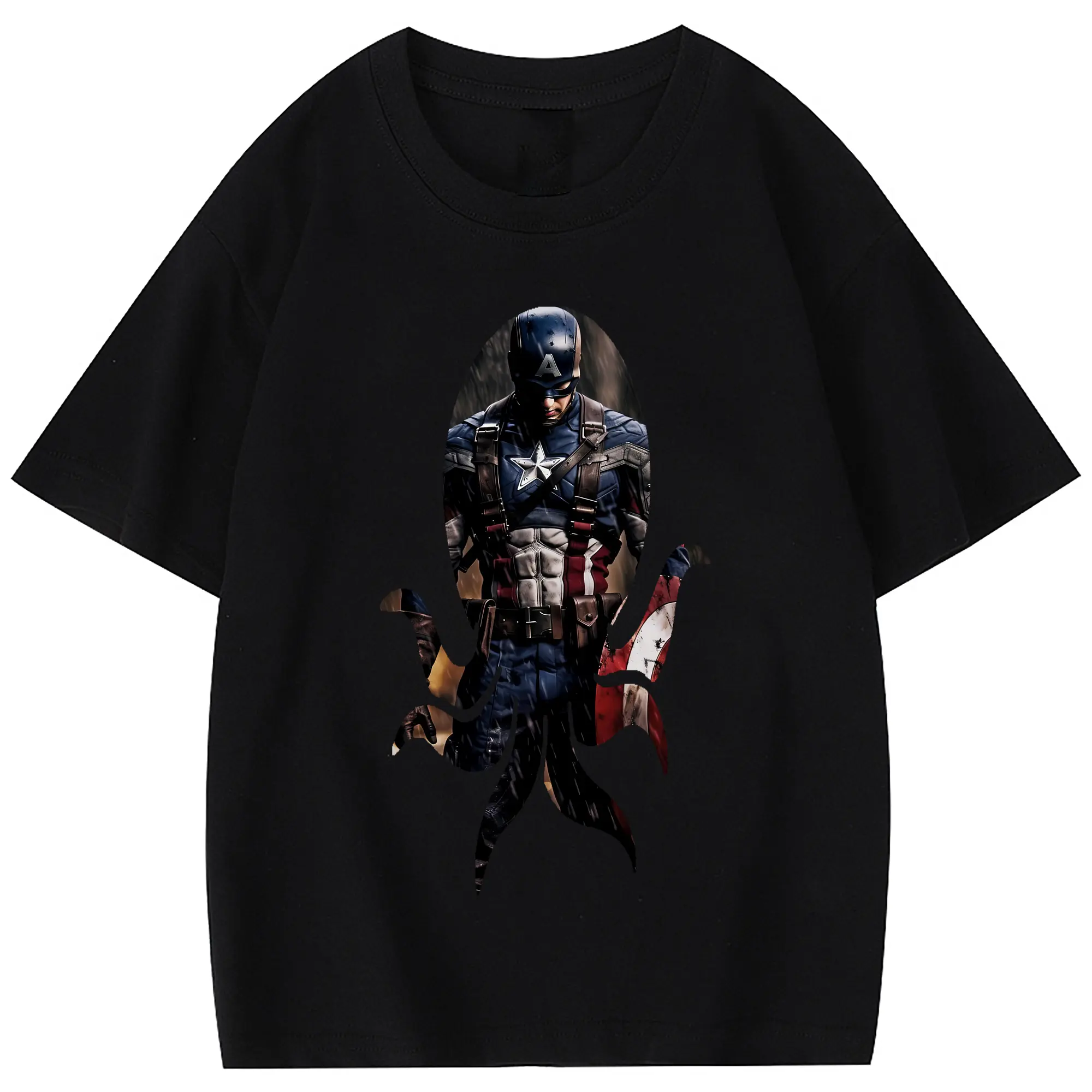 アベンジャーズ (Avenjāzu) グッズ キャプテン・アメリカ(Captain America) - 綿100% 半袖Tシャツ ・ バックプリント ・ 快適 通気性 ・ 日常使い 散歩 スポーツ用