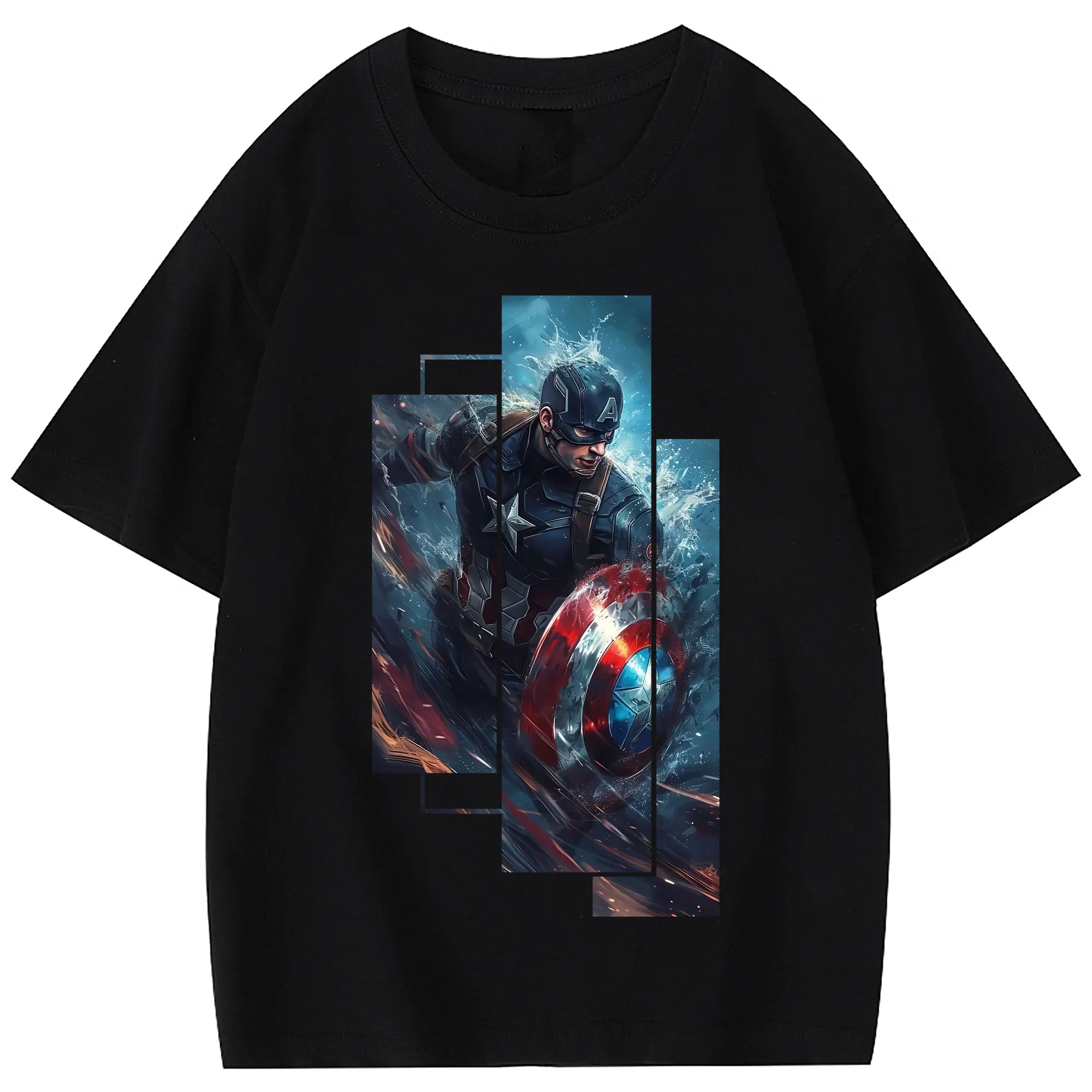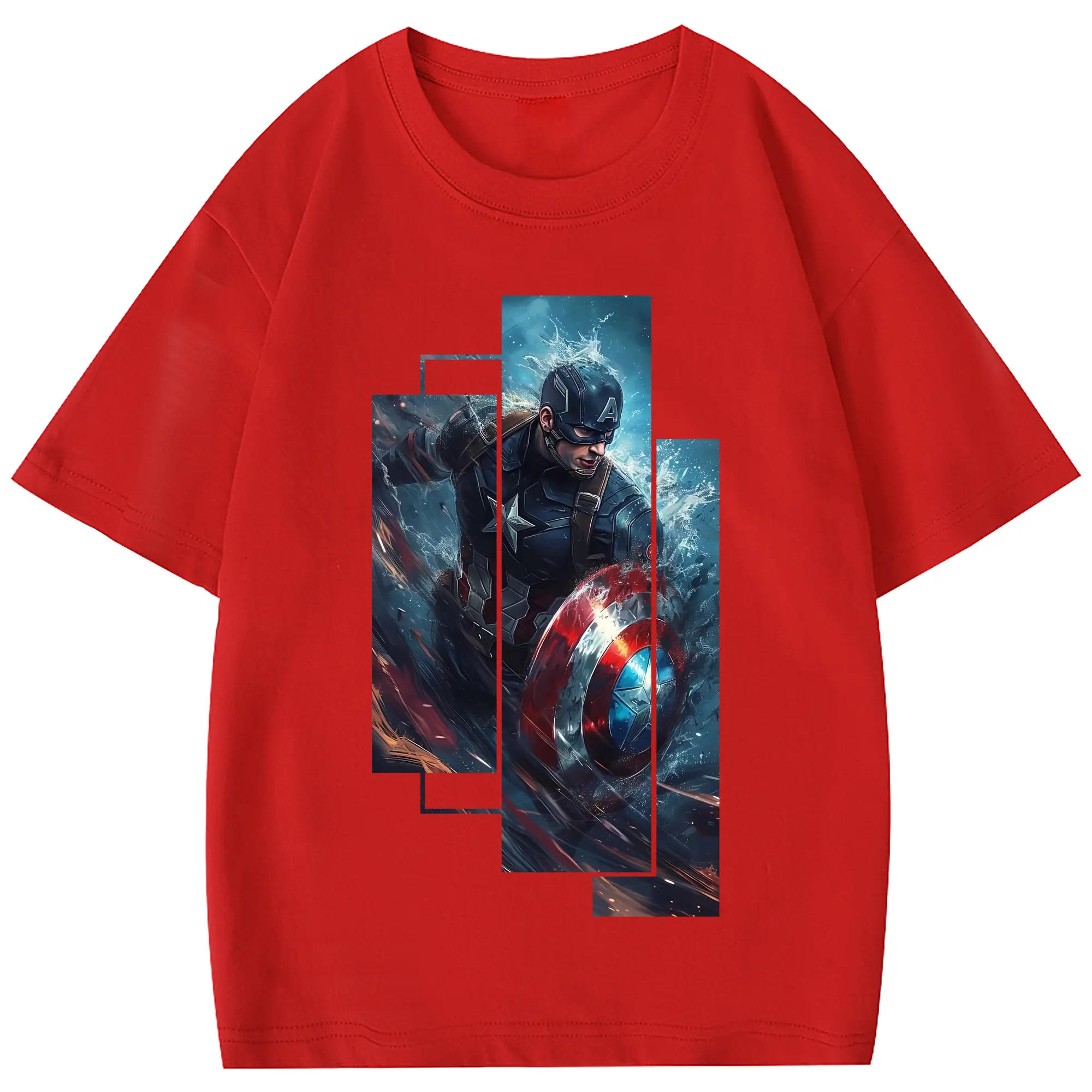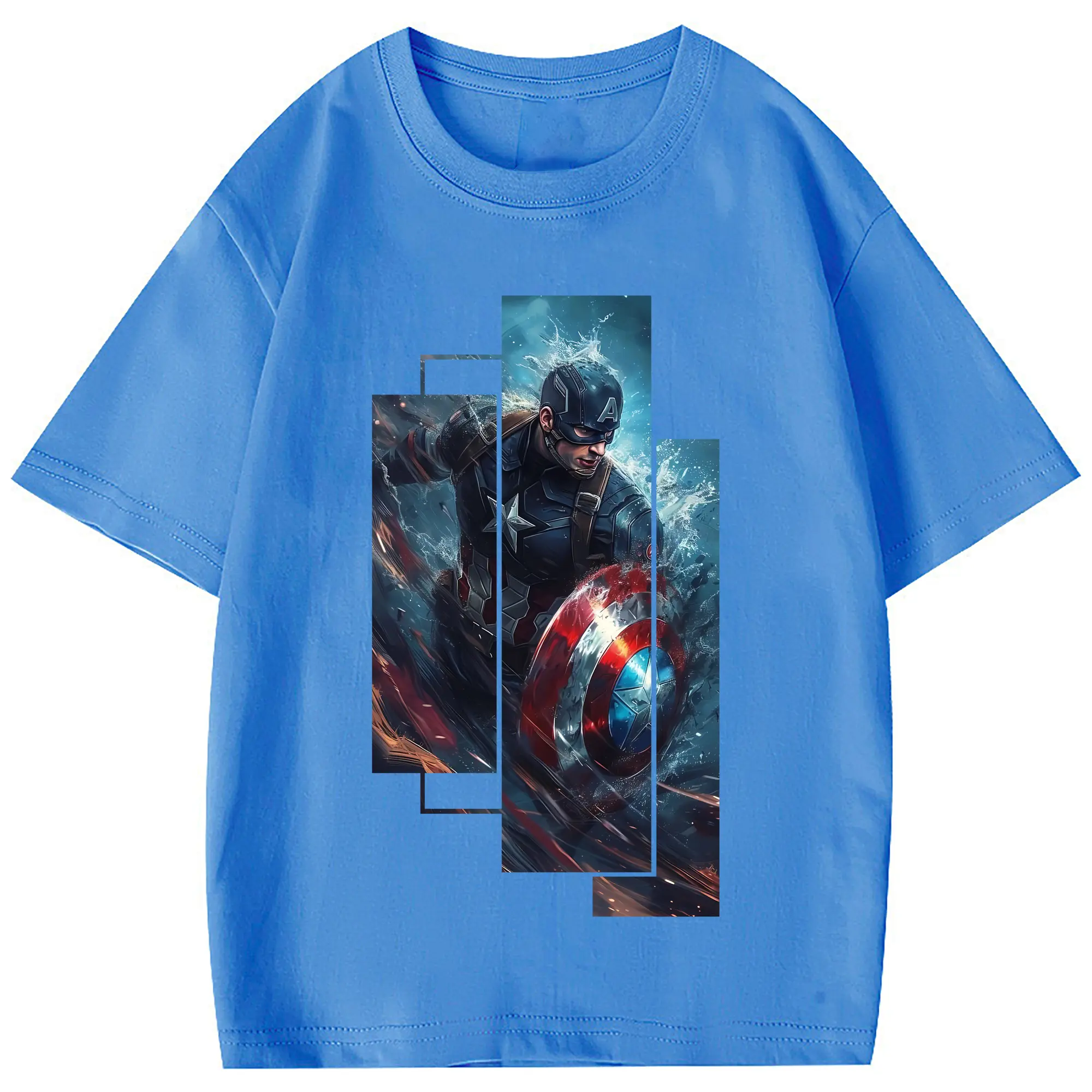 アベンジャーズ (Avenjāzu) グッズ キャプテン・アメリカ(Captain America) - 綿100% 半袖Tシャツ ・ フロントプリント ・ 快適 通気性 ・ 日常使い 散歩 スポーツ用