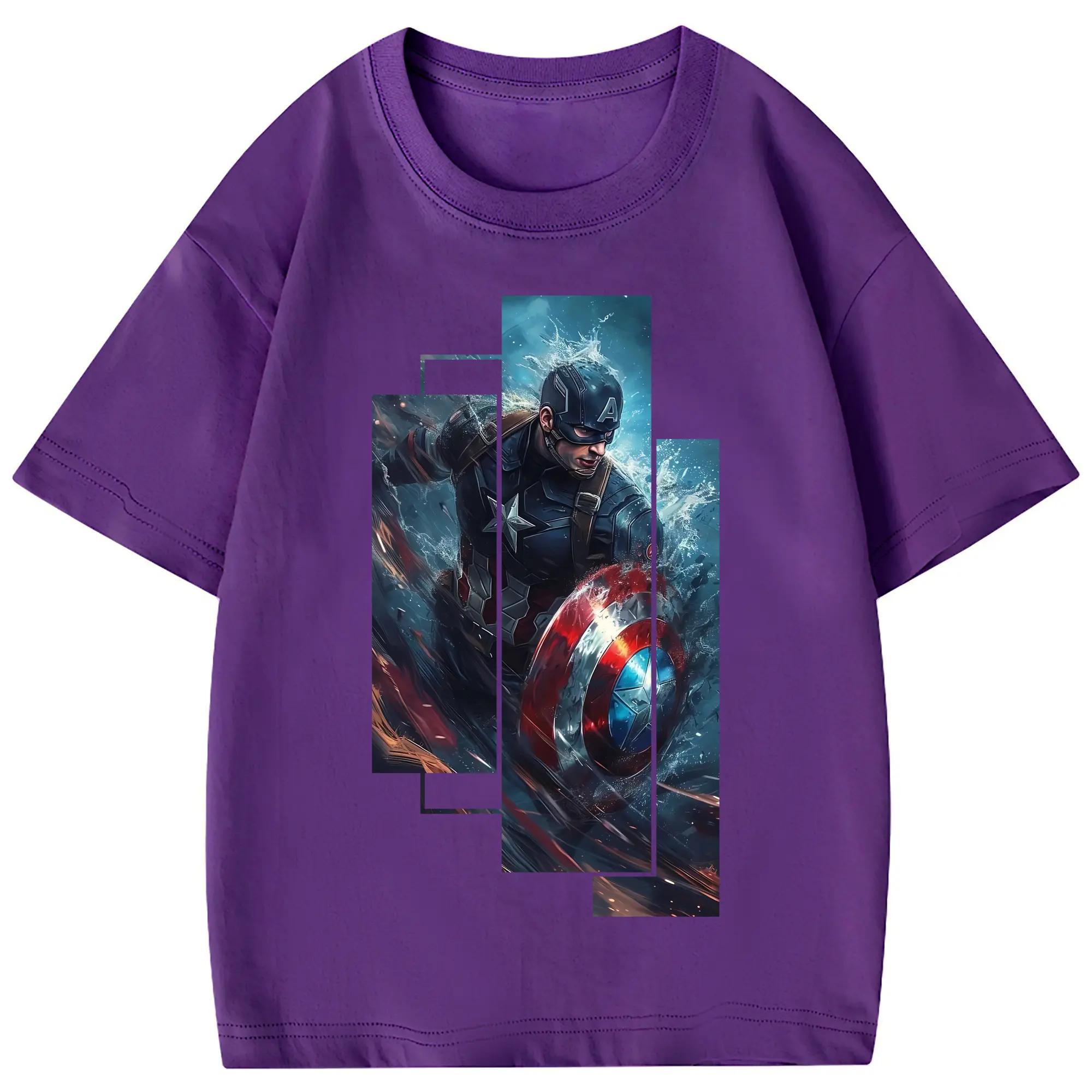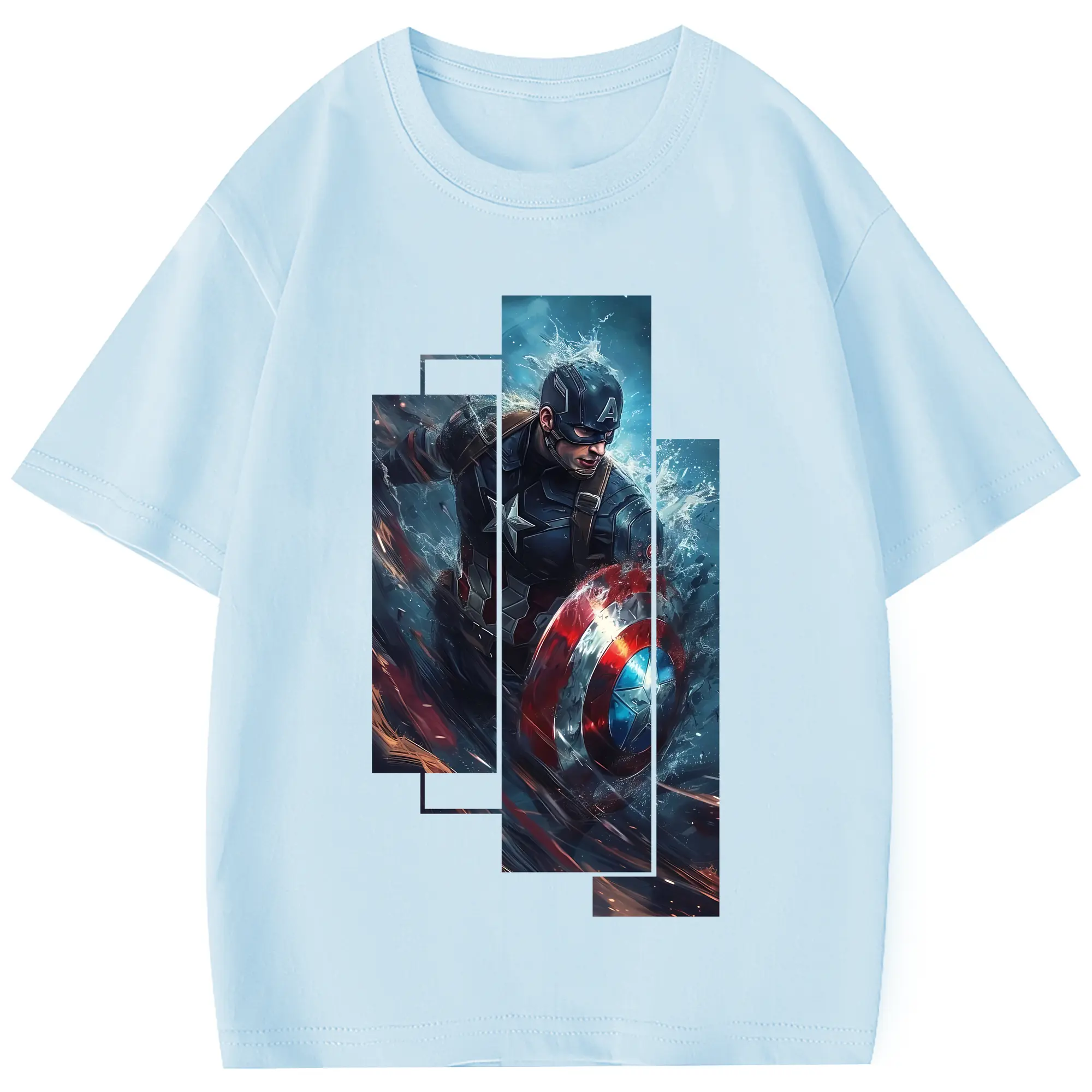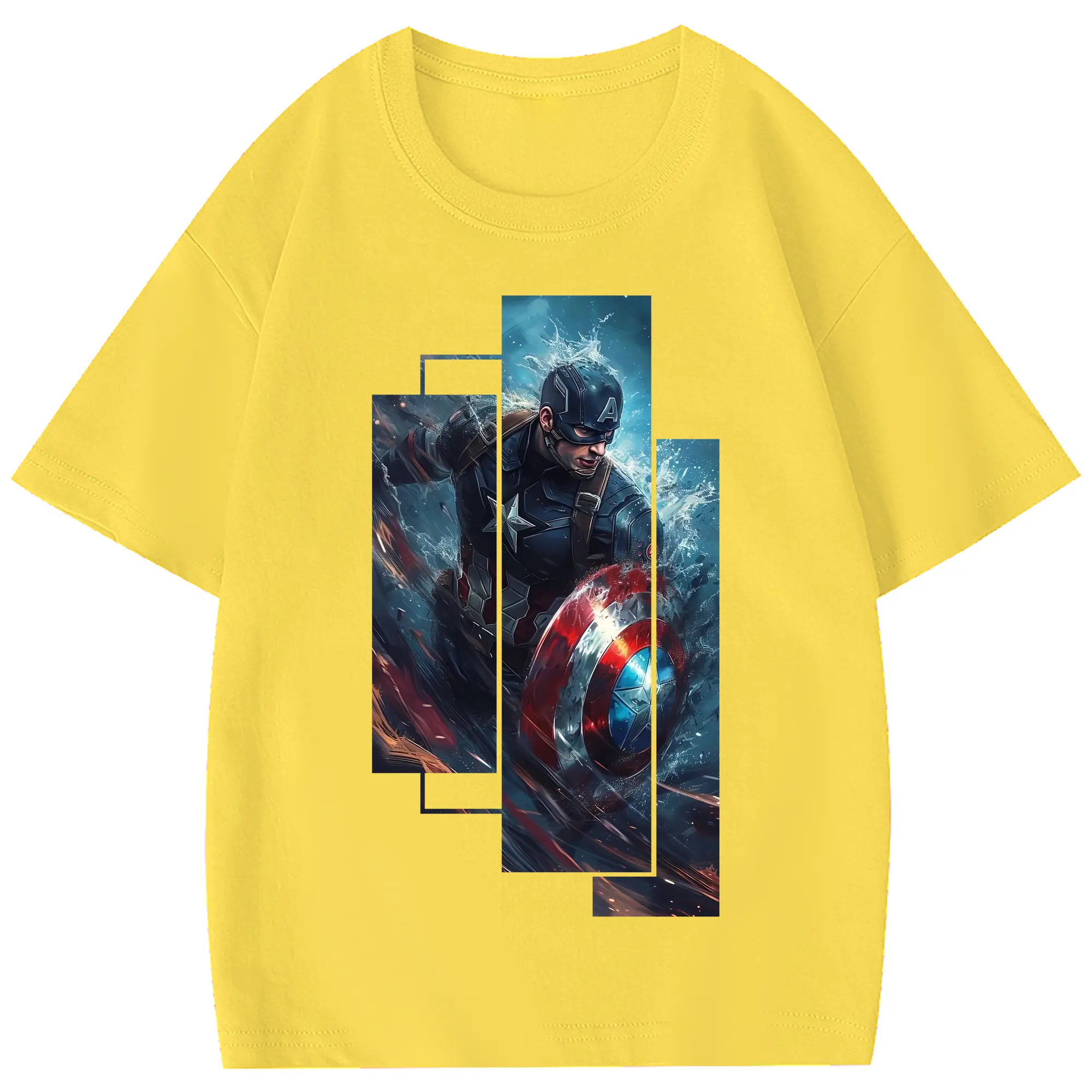 アベンジャーズ (Avenjāzu) グッズ キャプテン・アメリカ(Captain America) - 綿100% 半袖Tシャツ ・ フロントプリント ・ 快適 通気性 ・ 日常使い 散歩 スポーツ用