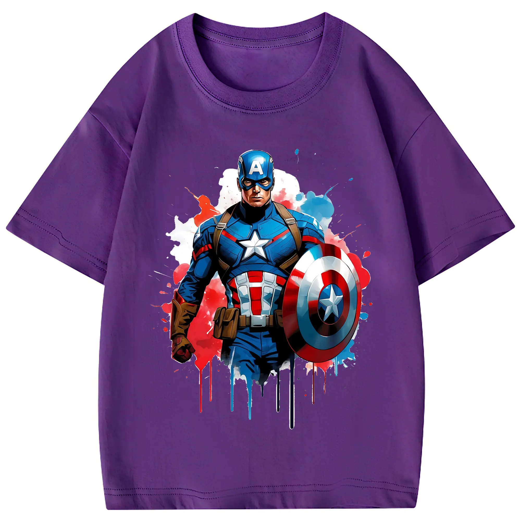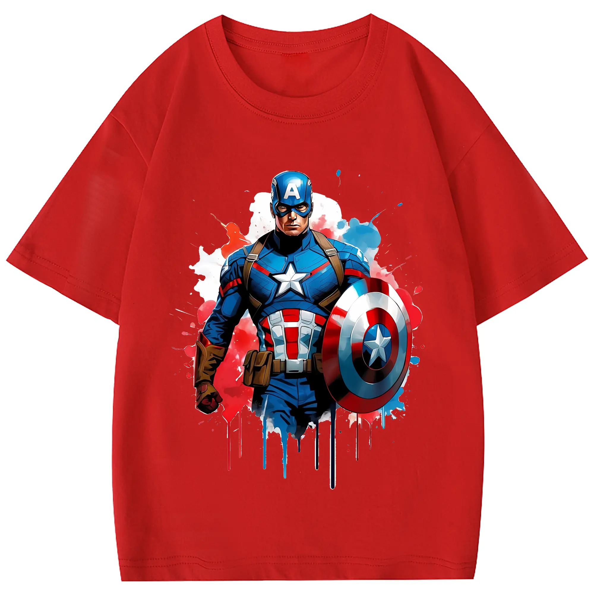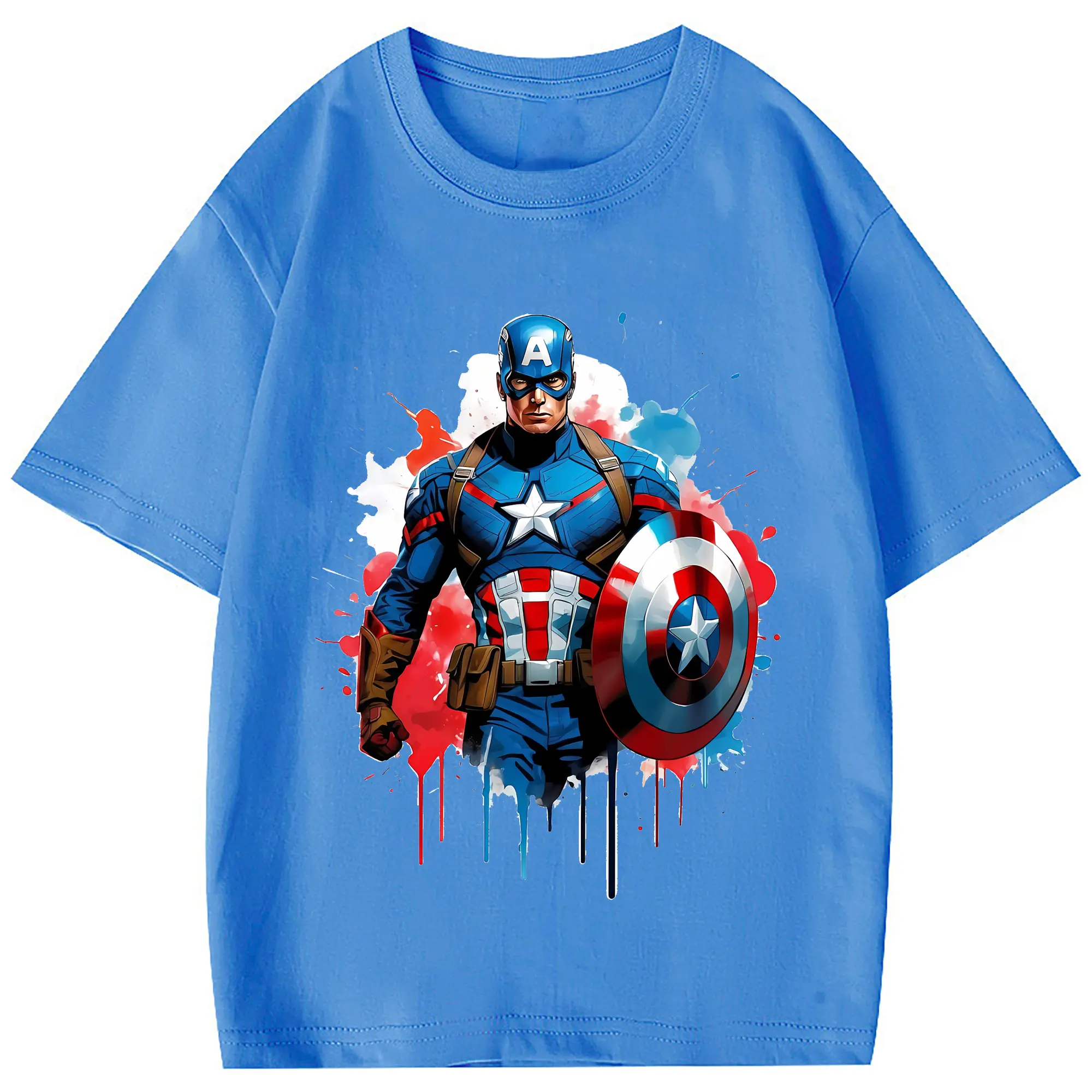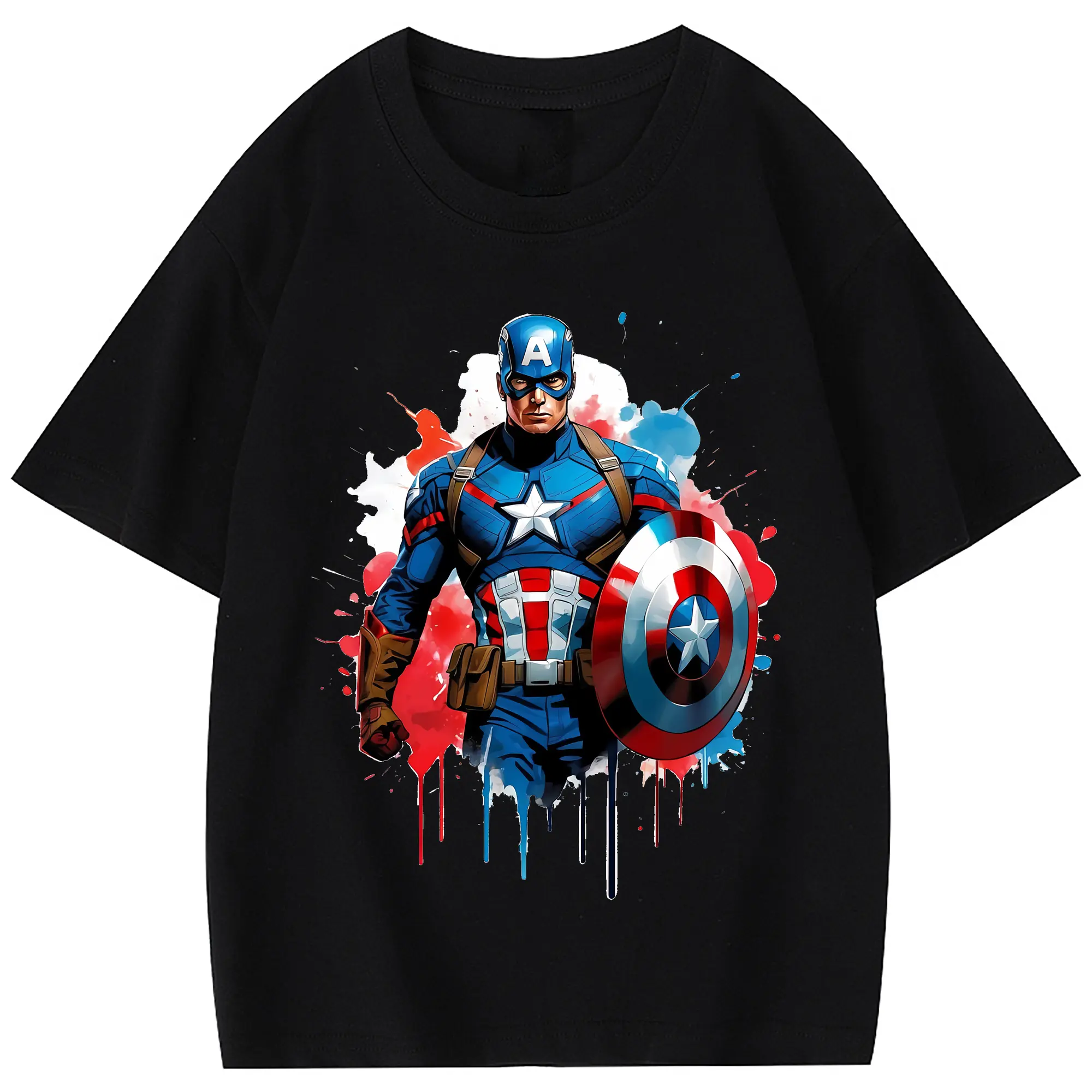アベンジャーズ (Avenjāzu) グッズ キャプテン・アメリカ(Captain America) - 綿100% 半袖Tシャツ ・ フロントプリント ・ 快適 通気性 ・ 日常使い 散歩 スポーツ用