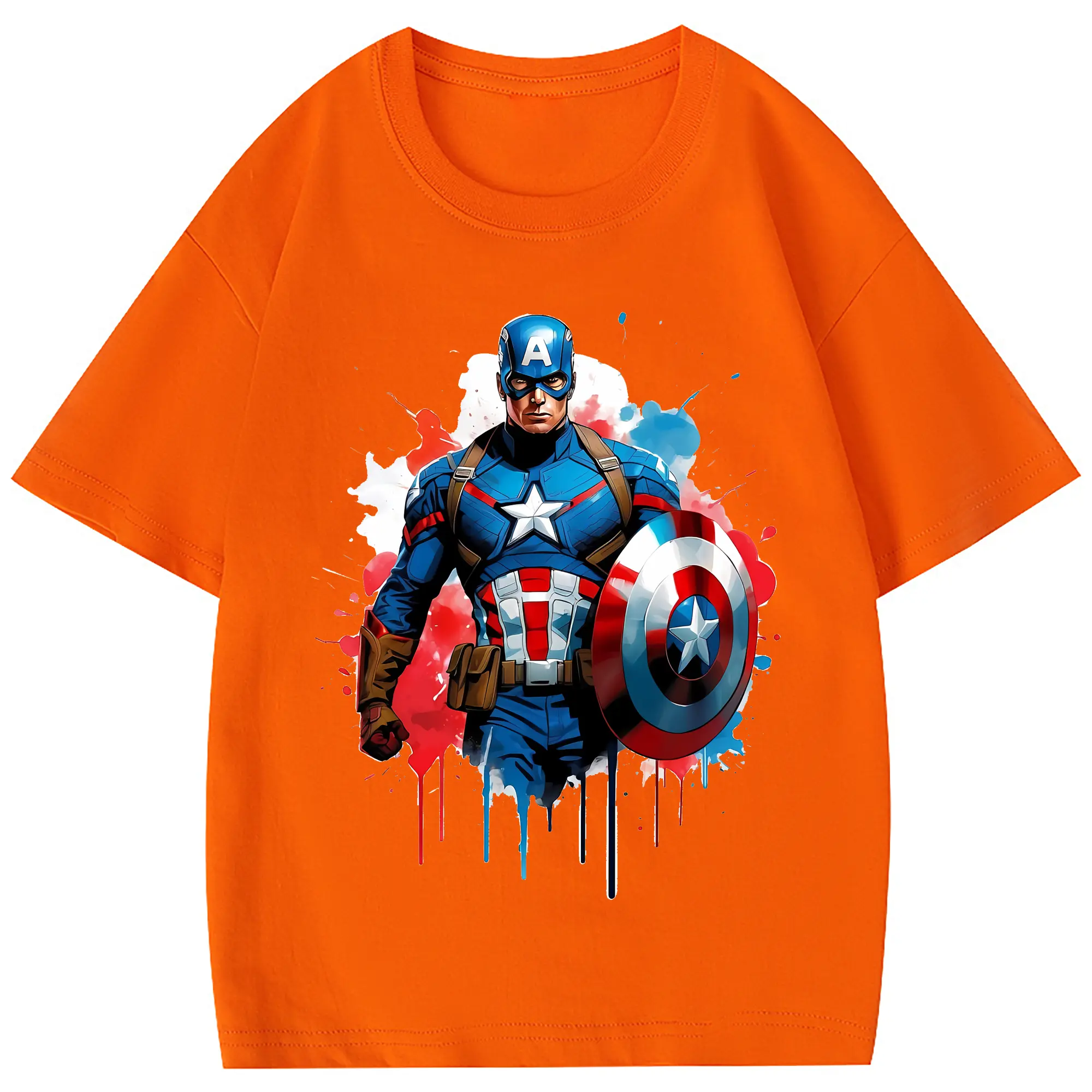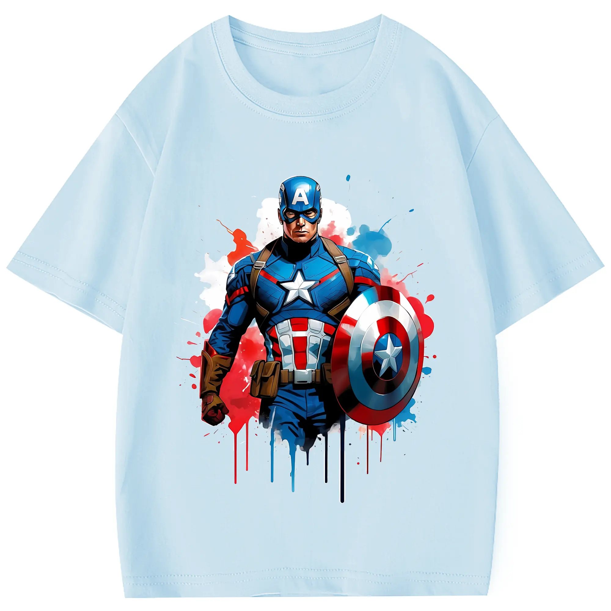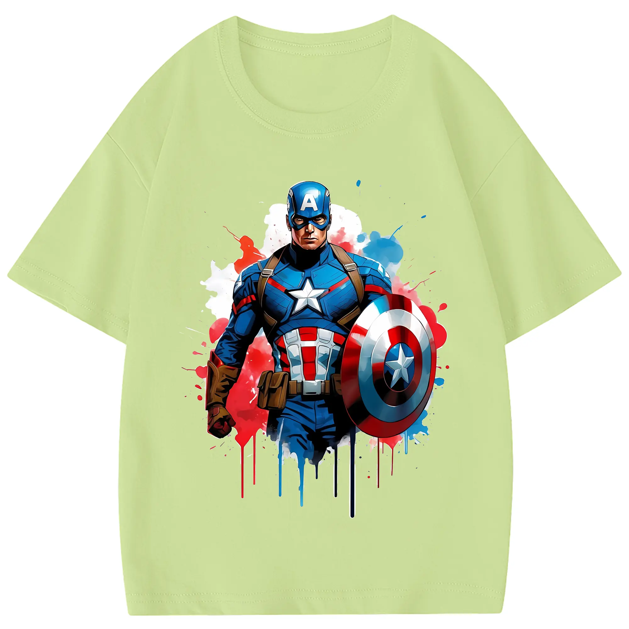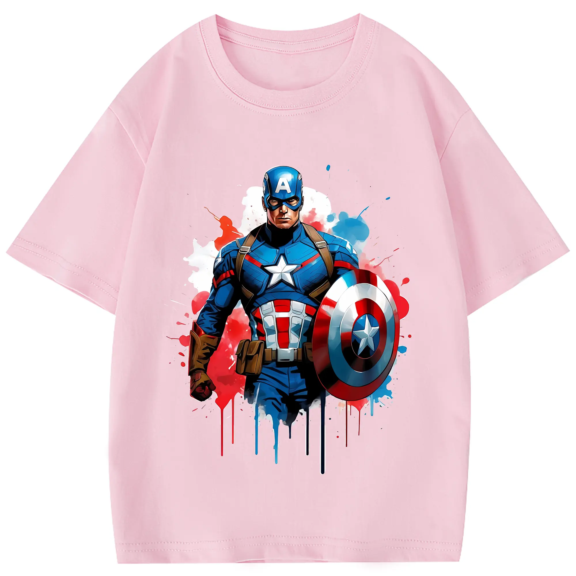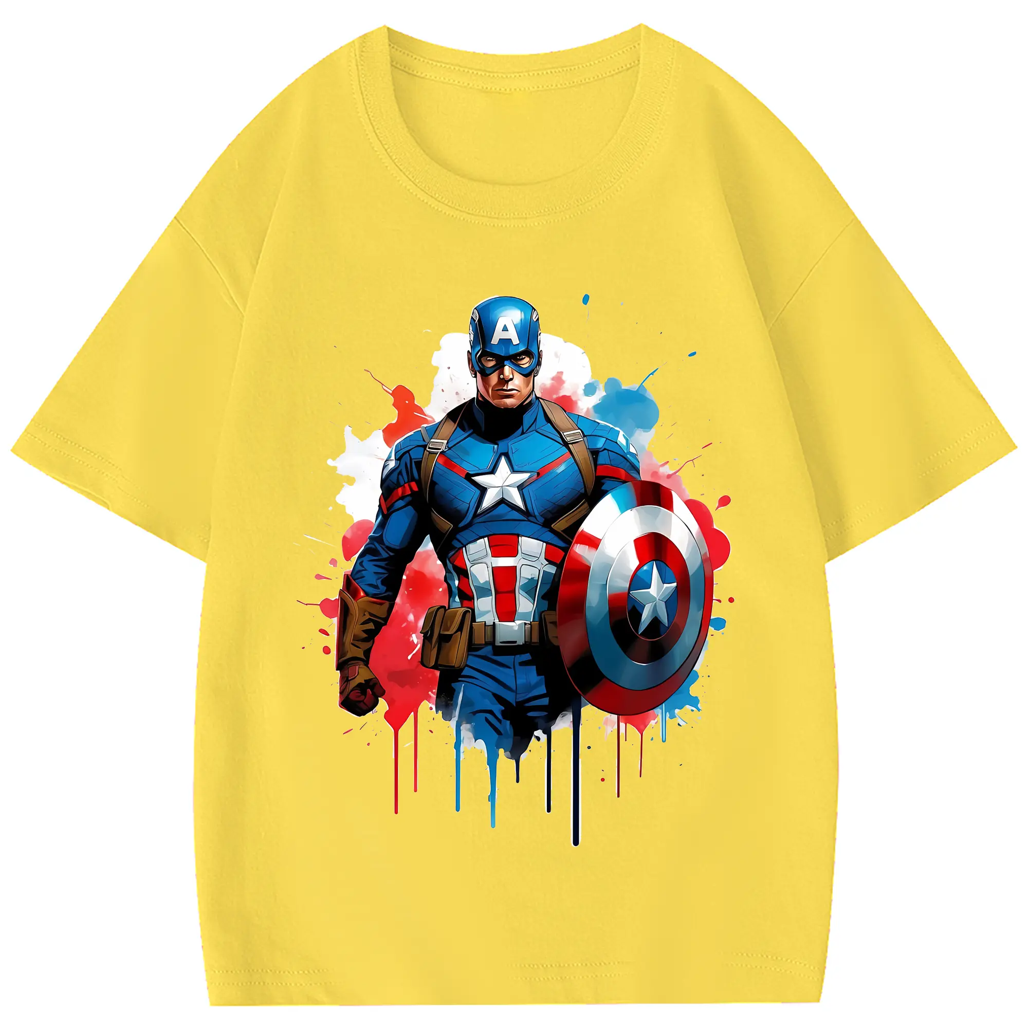 アベンジャーズ (Avenjāzu) グッズ キャプテン・アメリカ(Captain America) - 綿100% 半袖Tシャツ ・ フロントプリント ・ 快適 通気性 ・ 日常使い 散歩 スポーツ用