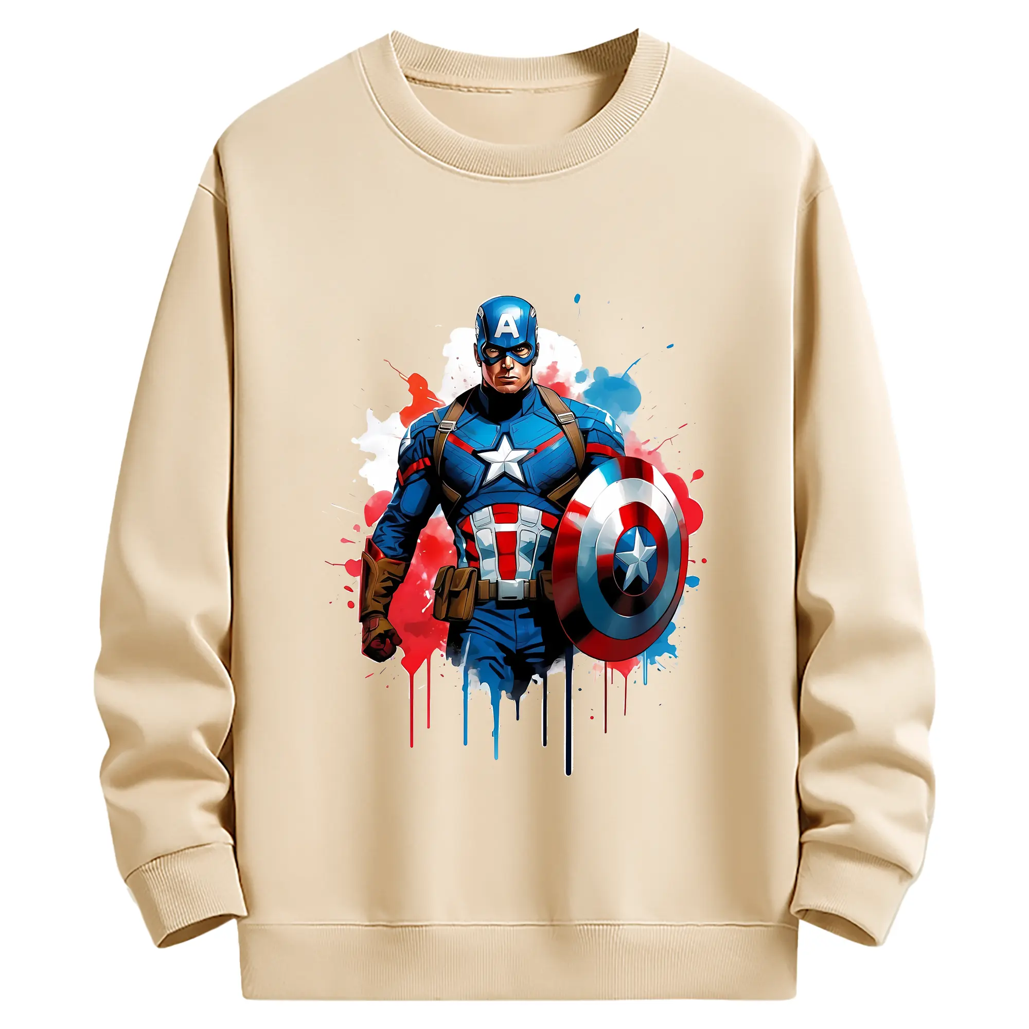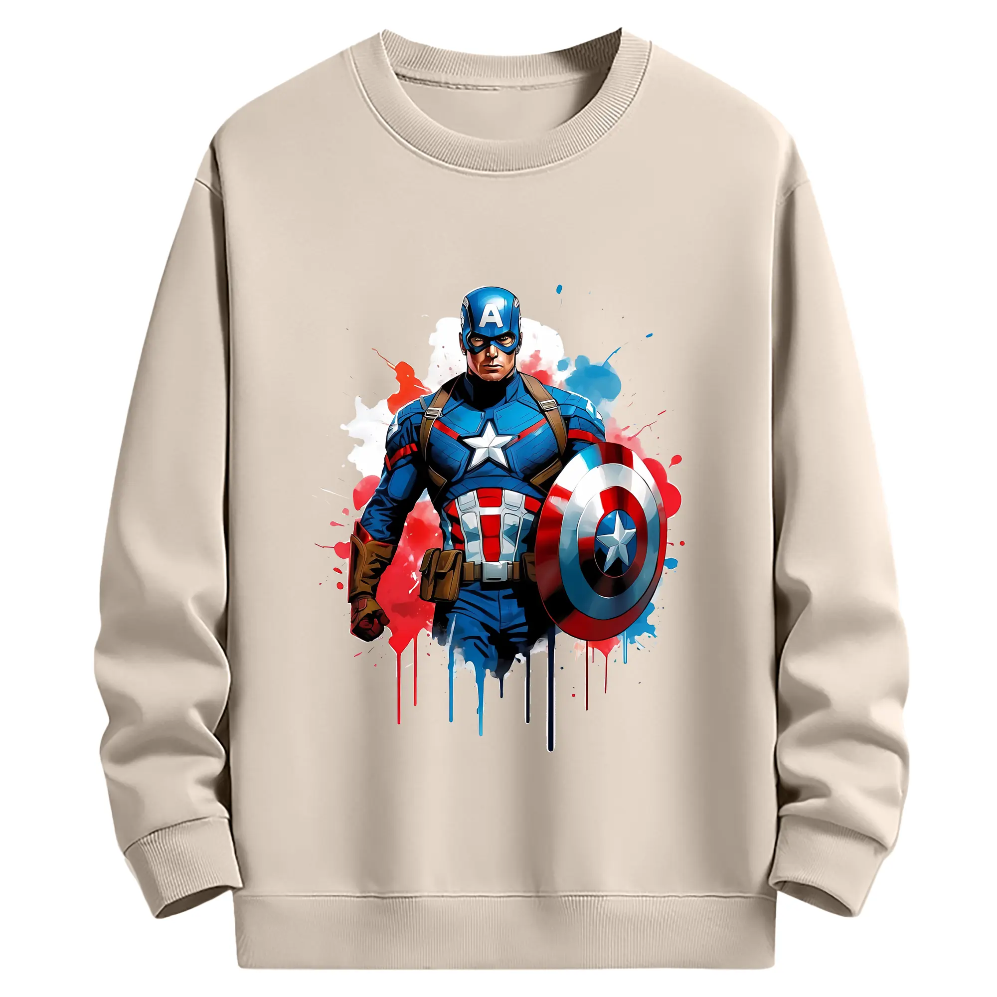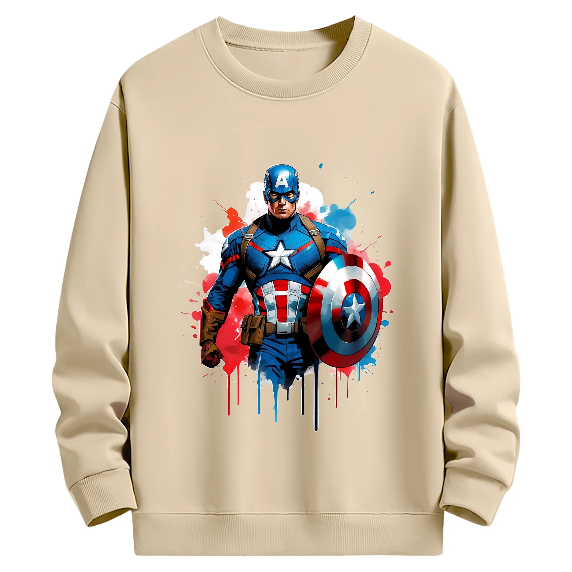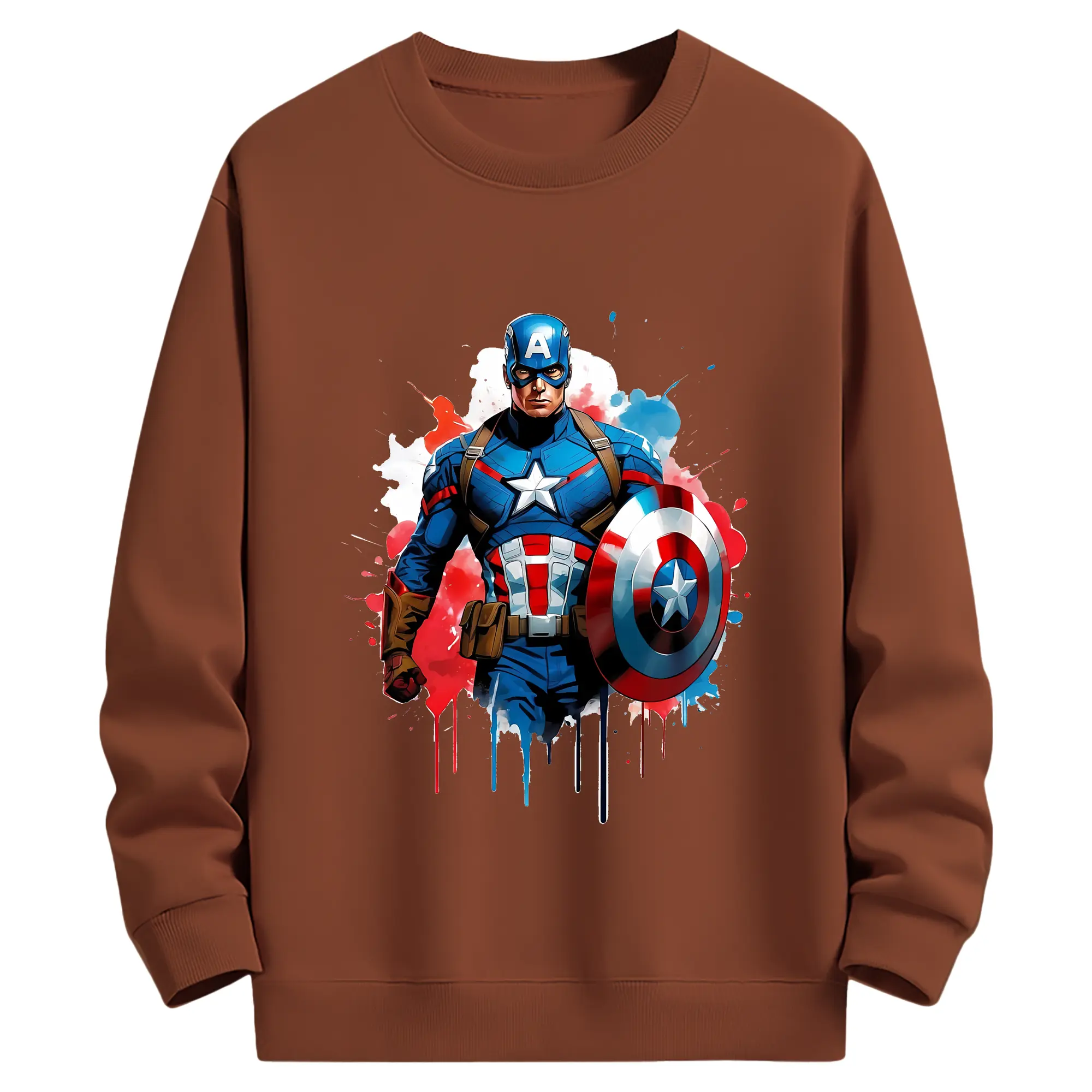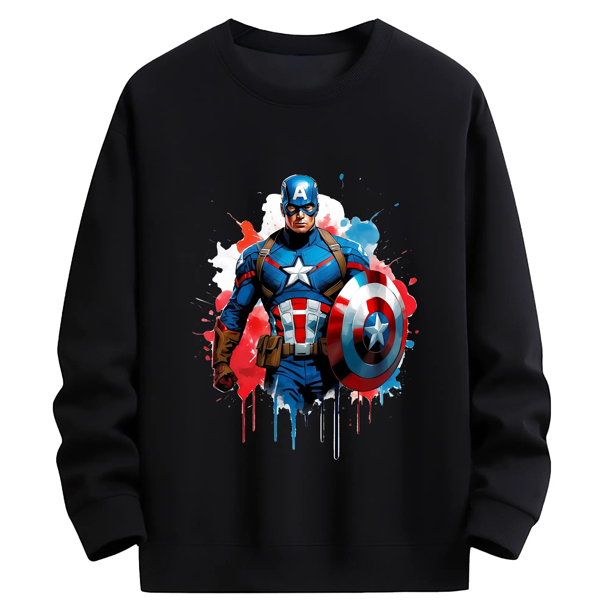 アベンジャーズ (Avenjāzu) グッズ キャプテン・アメリカ(Captain America) - 綿100% 半袖Tシャツ ・ フロントプリント ・ 快適 通気性 ・ 日常使い 散歩 スポーツ用