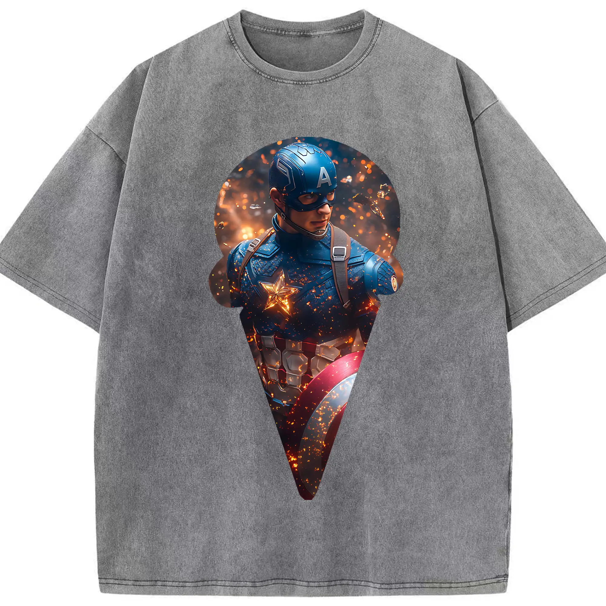 アベンジャーズ (Avenjāzu) グッズ キャプテン・アメリカ(Captain America) - 綿100% 半袖Tシャツ ・ フロントプリント ・ 快適 通気性 ・ 日常使い 散歩 スポーツ用