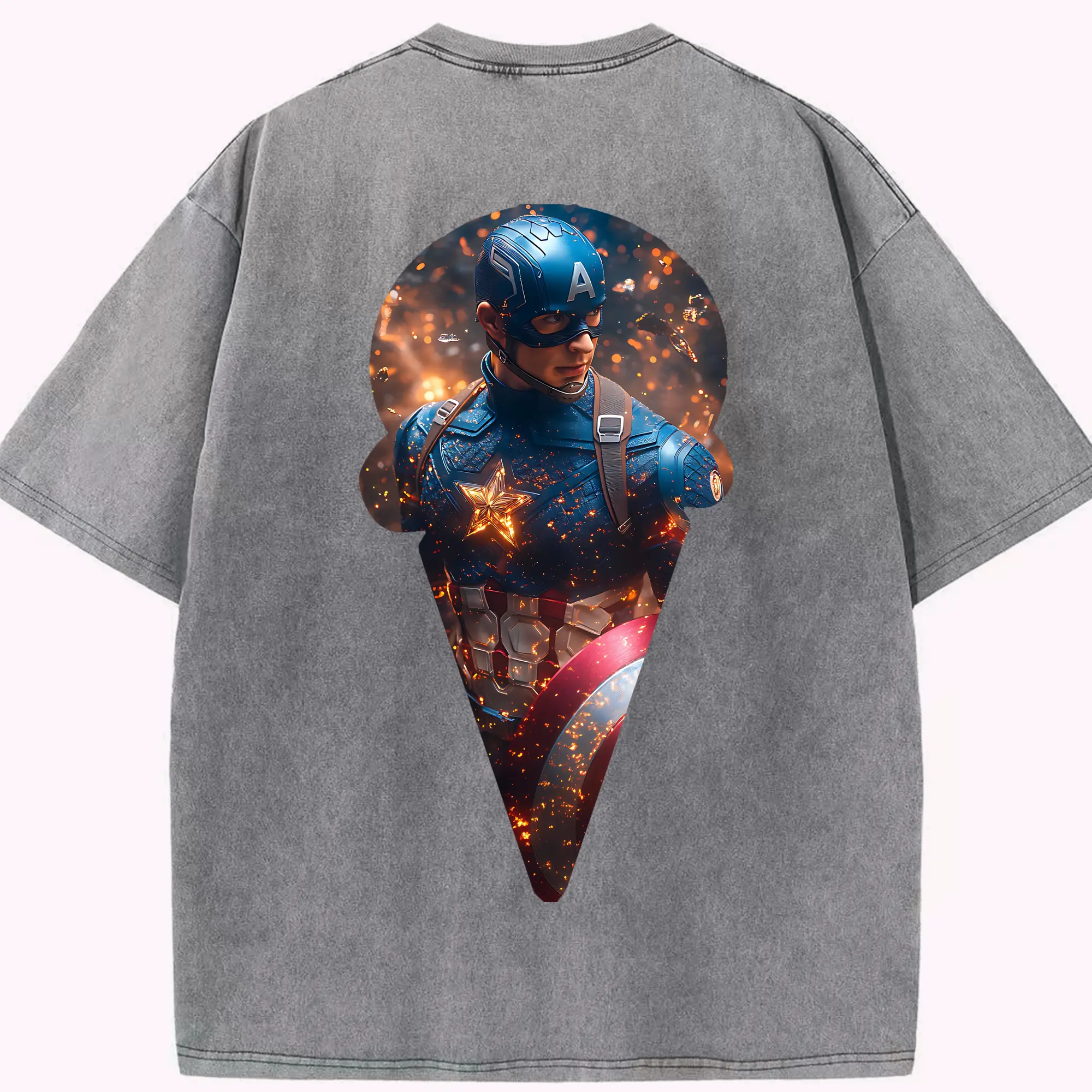 アベンジャーズ (Avenjāzu) グッズ キャプテン・アメリカ(Captain America) - 綿100% 半袖Tシャツ ・ バックプリント ・ 快適 通気性 ・ 日常使い 散歩 スポーツ用