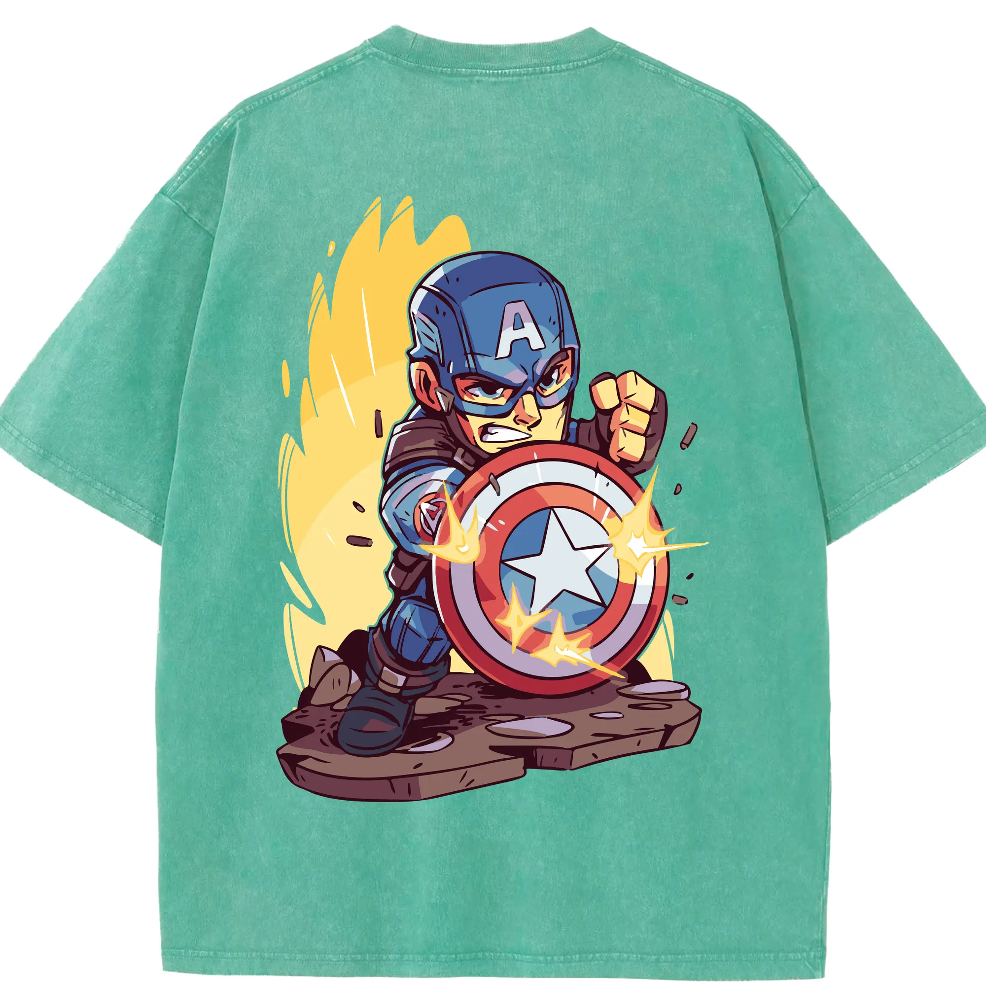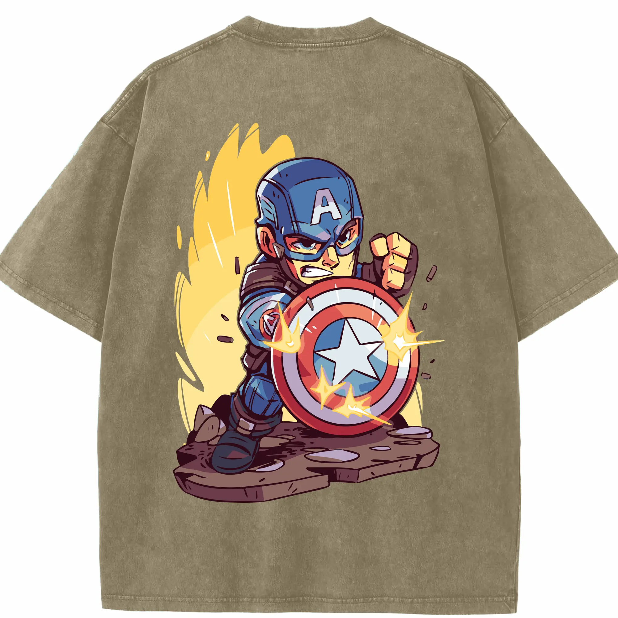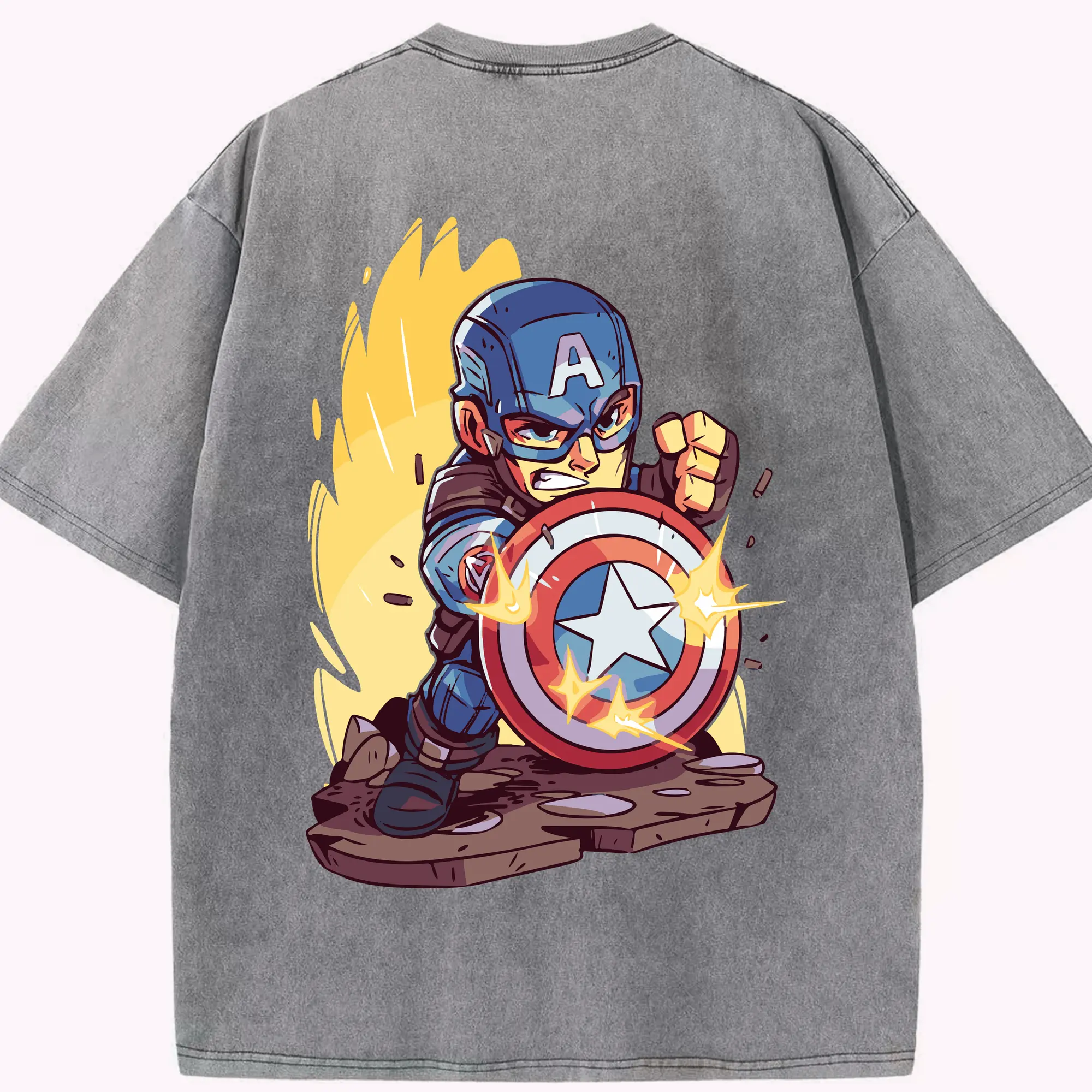 アベンジャーズ (Avenjāzu) グッズ キャプテン・アメリカ(Captain America) - 綿100% 半袖Tシャツ ・ バックプリント ・ 快適 通気性 ・ 日常使い 散歩 スポーツ用