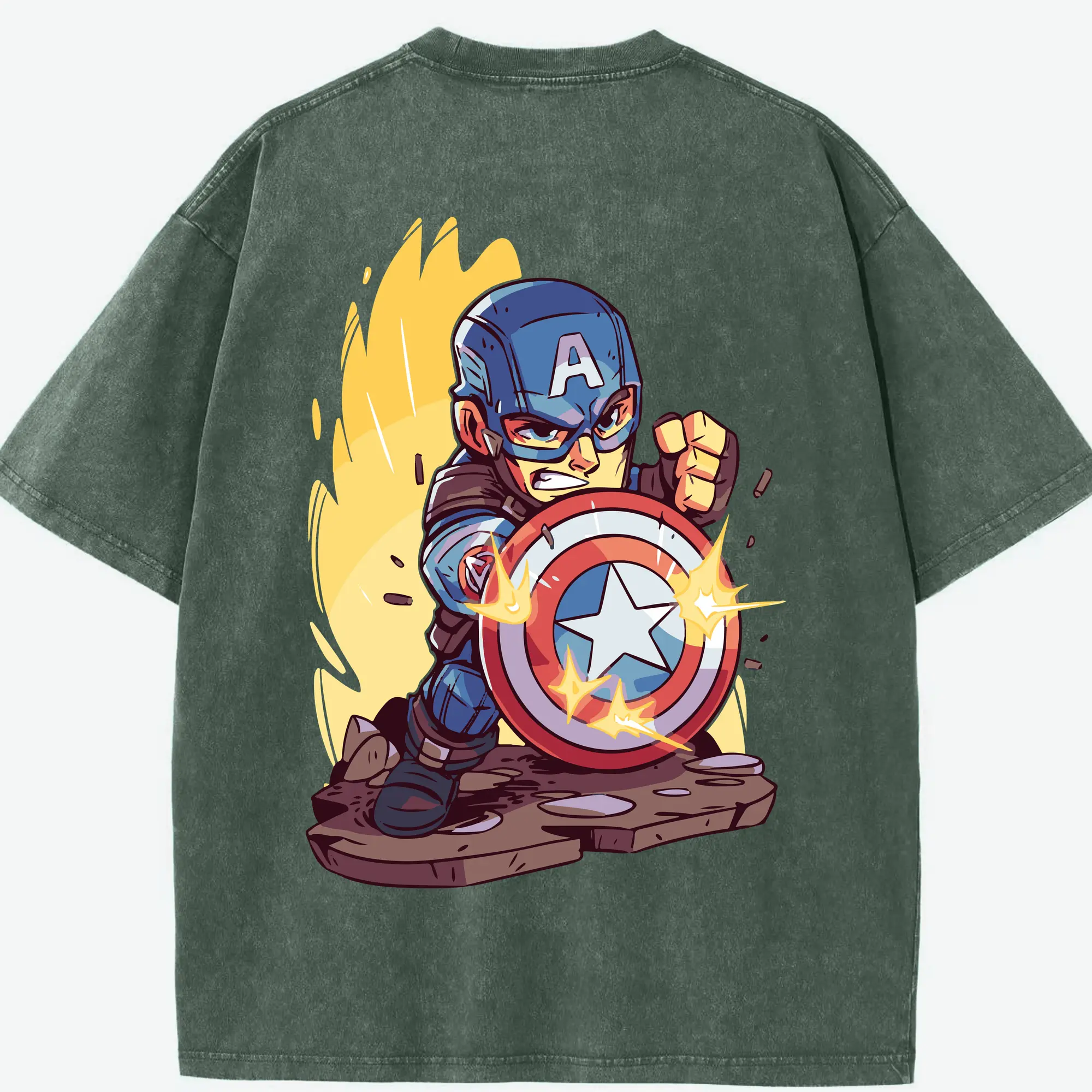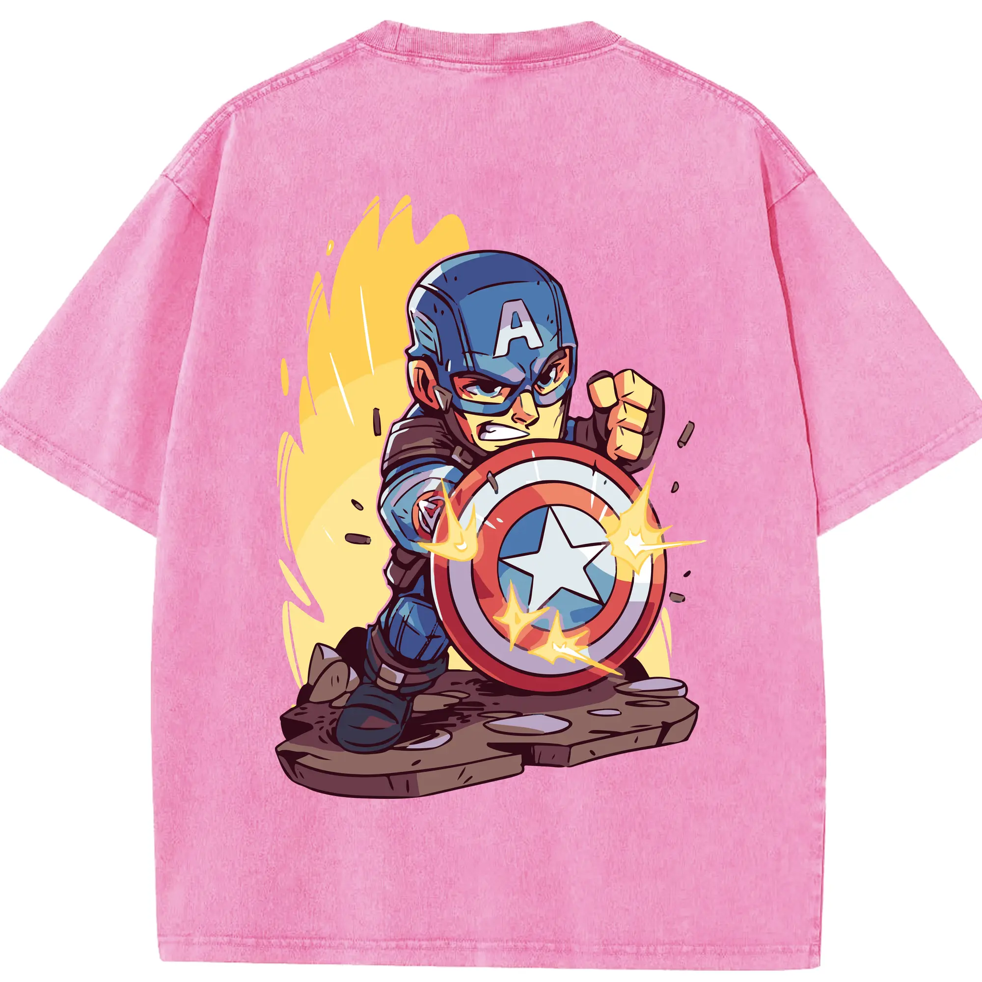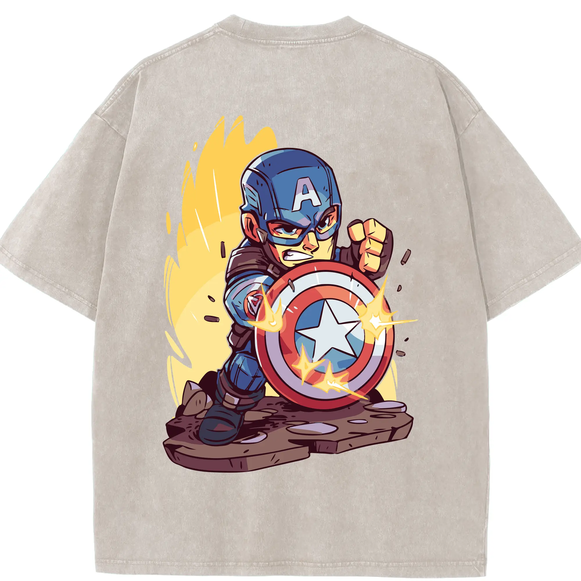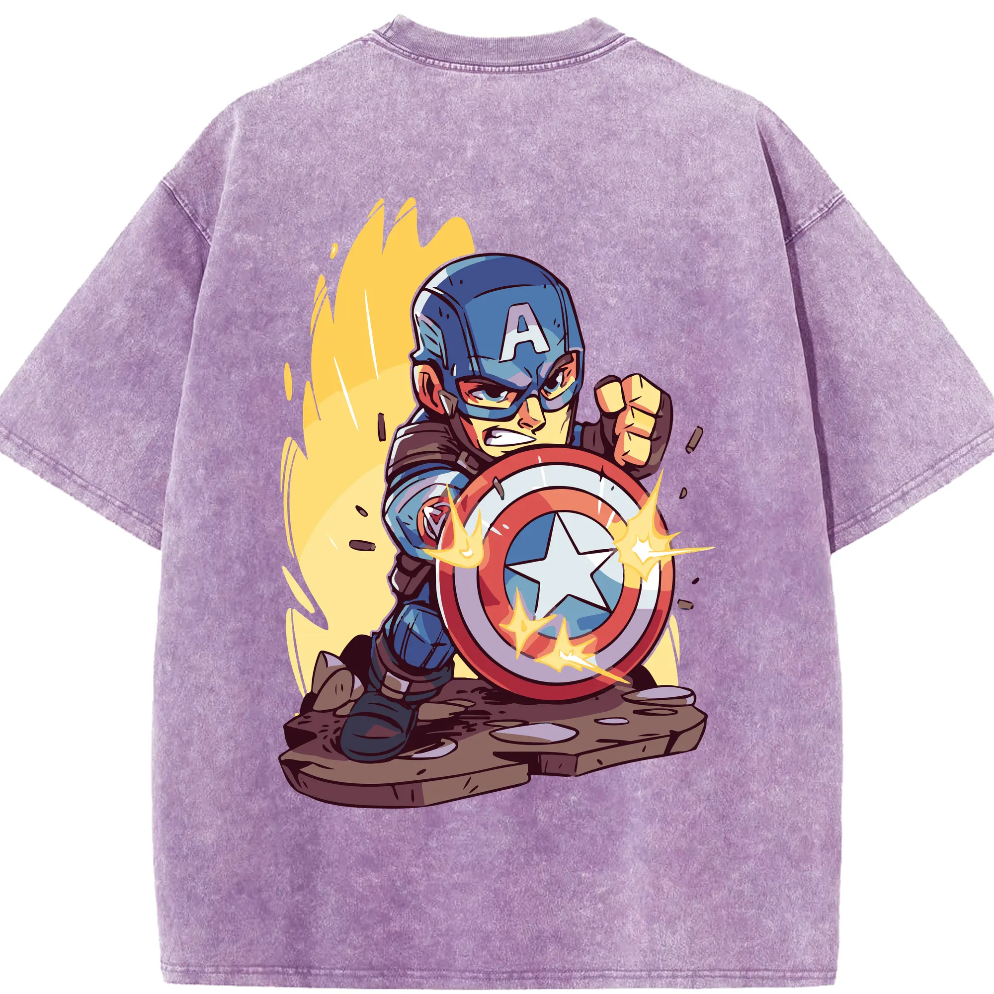 アベンジャーズ (Avenjāzu) グッズ キャプテン・アメリカ(Captain America) - 綿100% 半袖Tシャツ ・ バックプリント ・ 快適 通気性 ・ 日常使い 散歩 スポーツ用