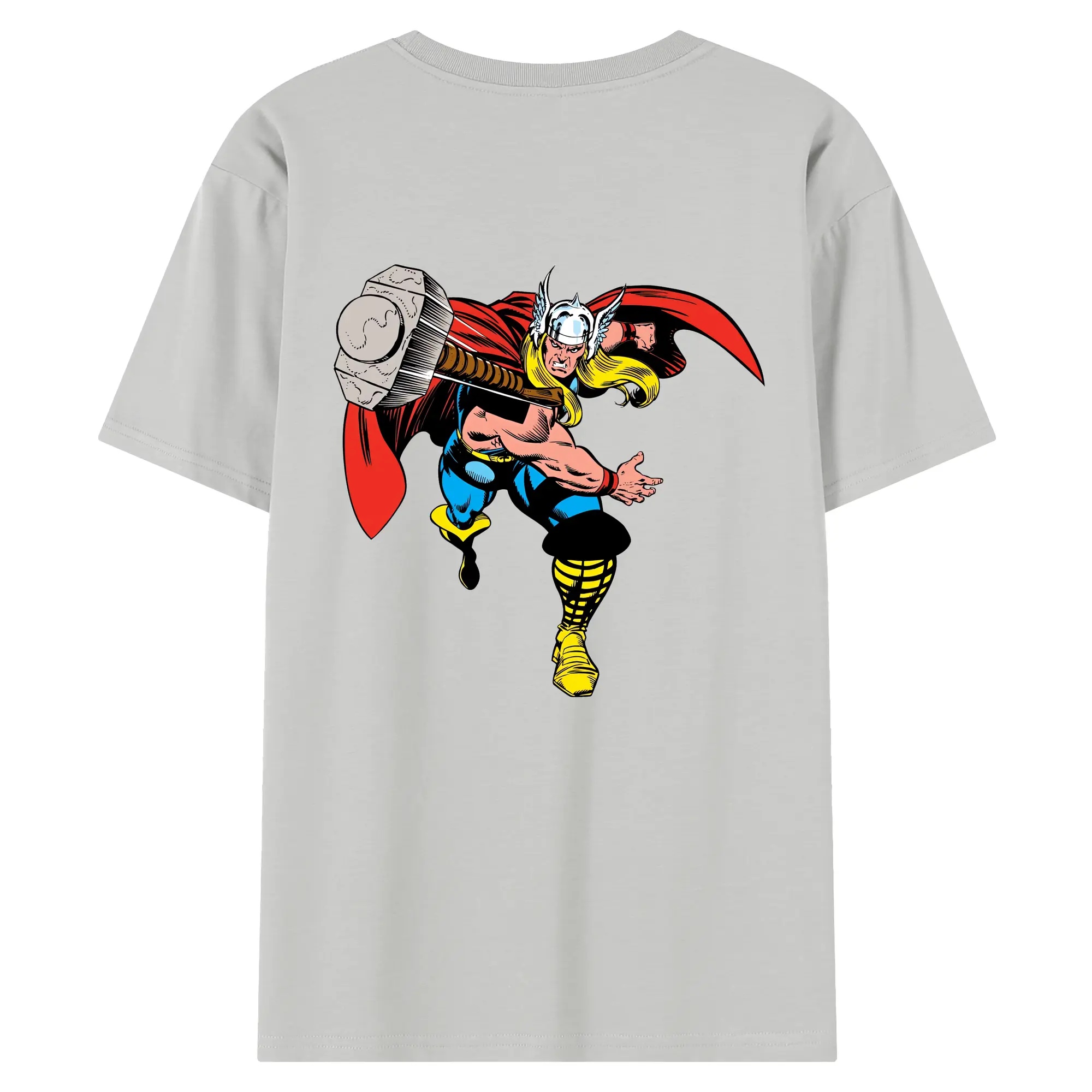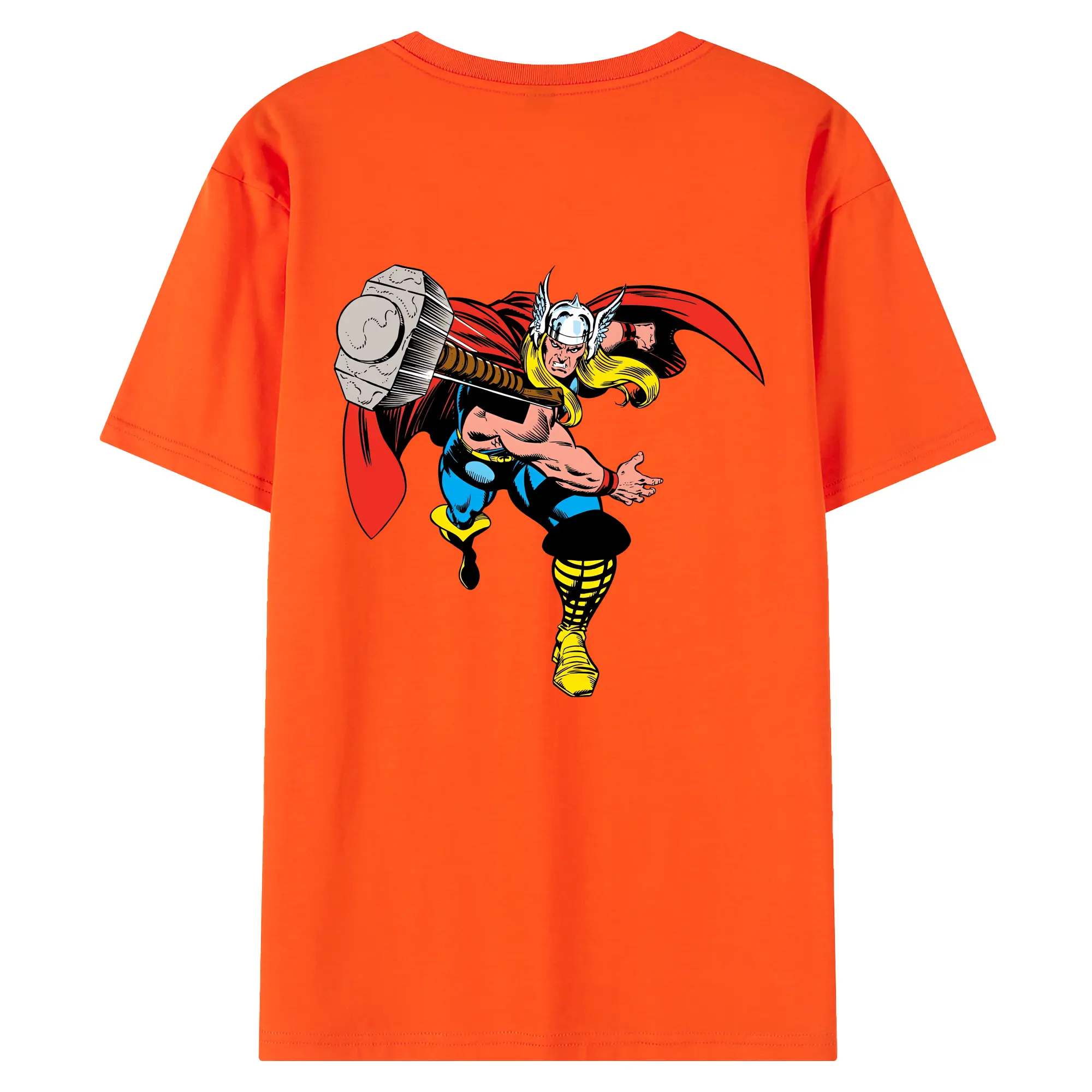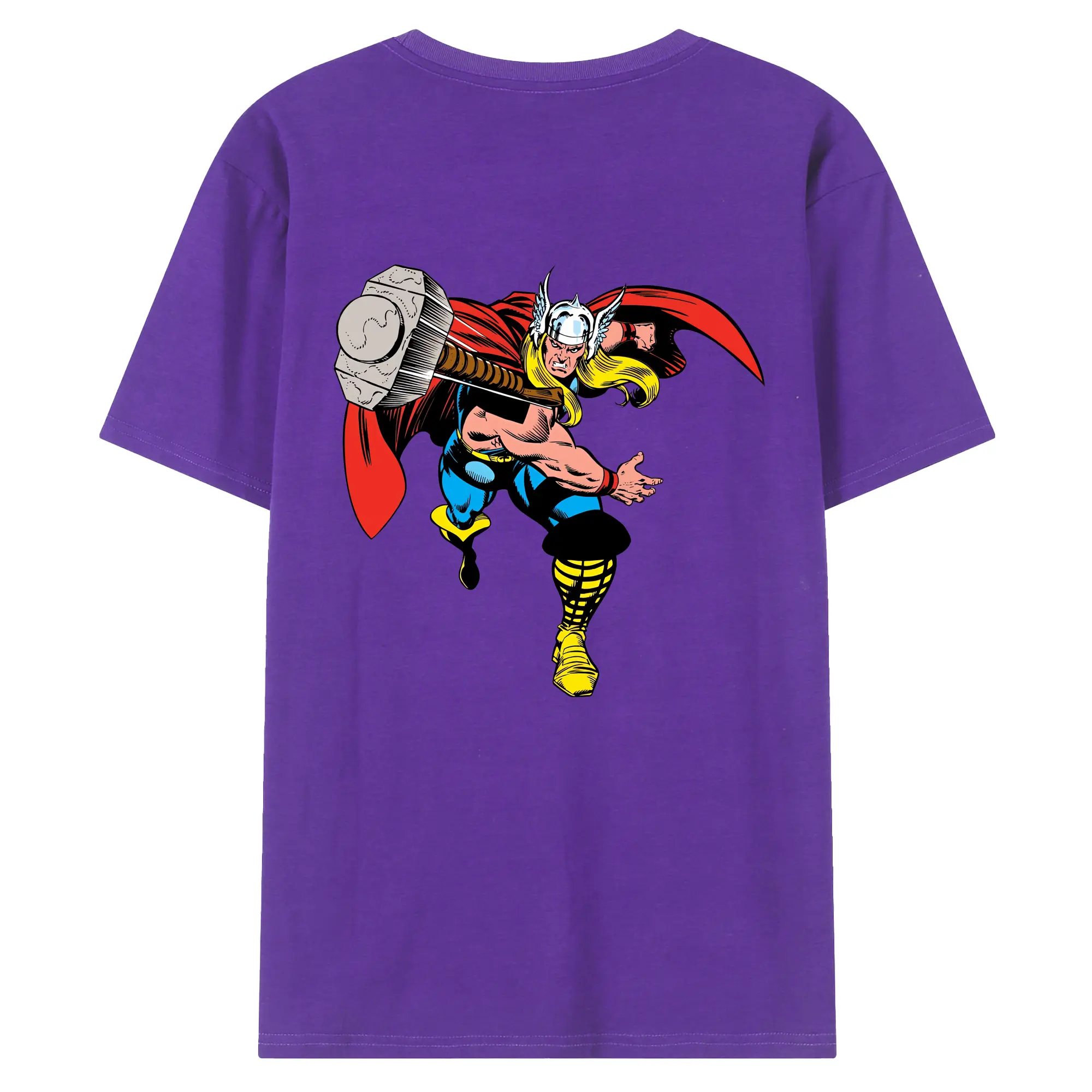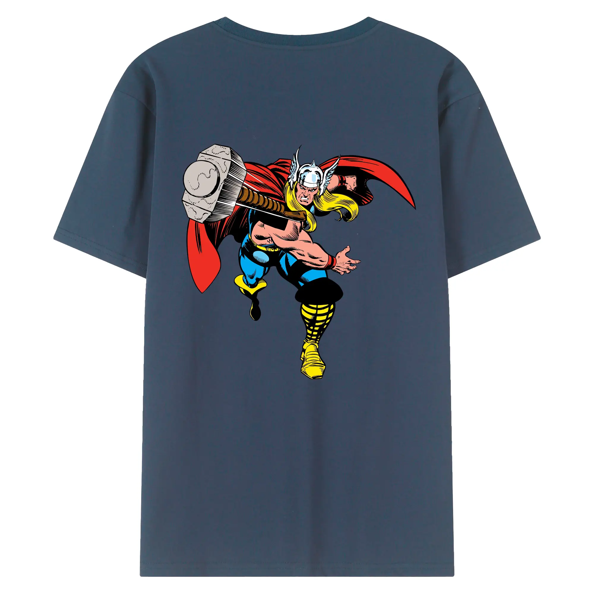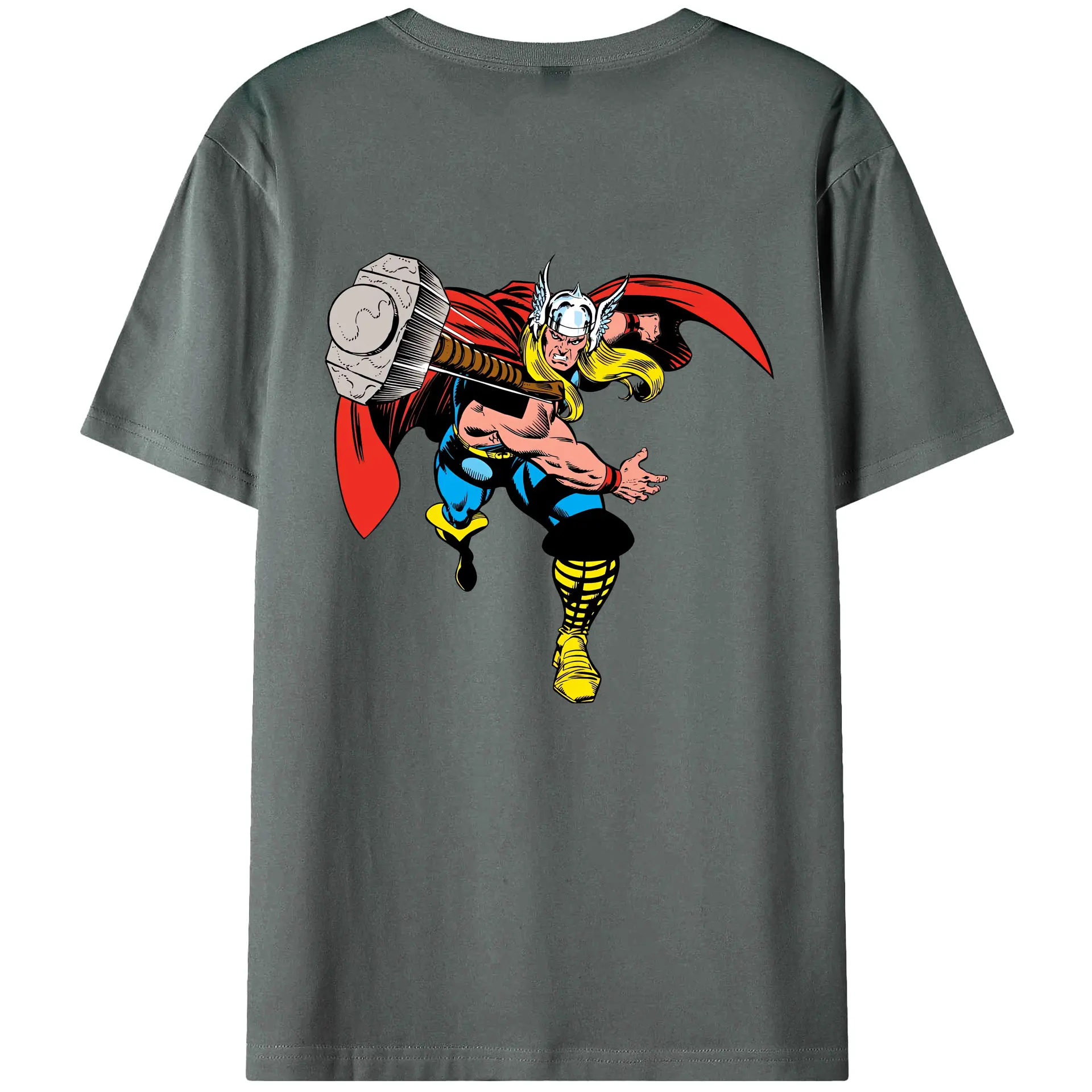 アベンジャーズ (Avenjāzu) グッズ マイティ・ソー(Thor) - 綿100% ヴィンテージ風 半袖Tシャツ ・ 背面プリント ・ 柔らか肌触り ・ 通気性 快適 ・ スポーツ カジュアル 外出用
