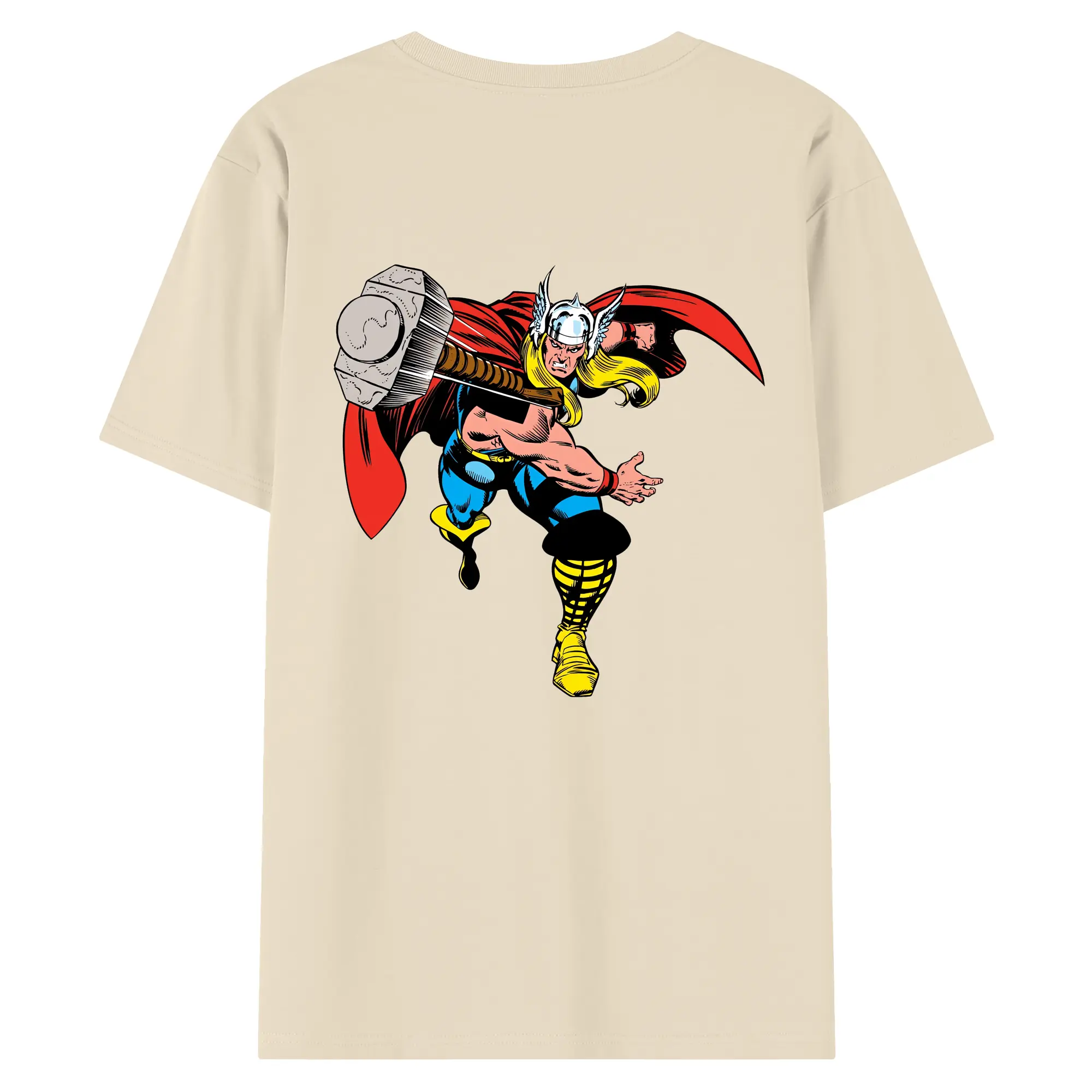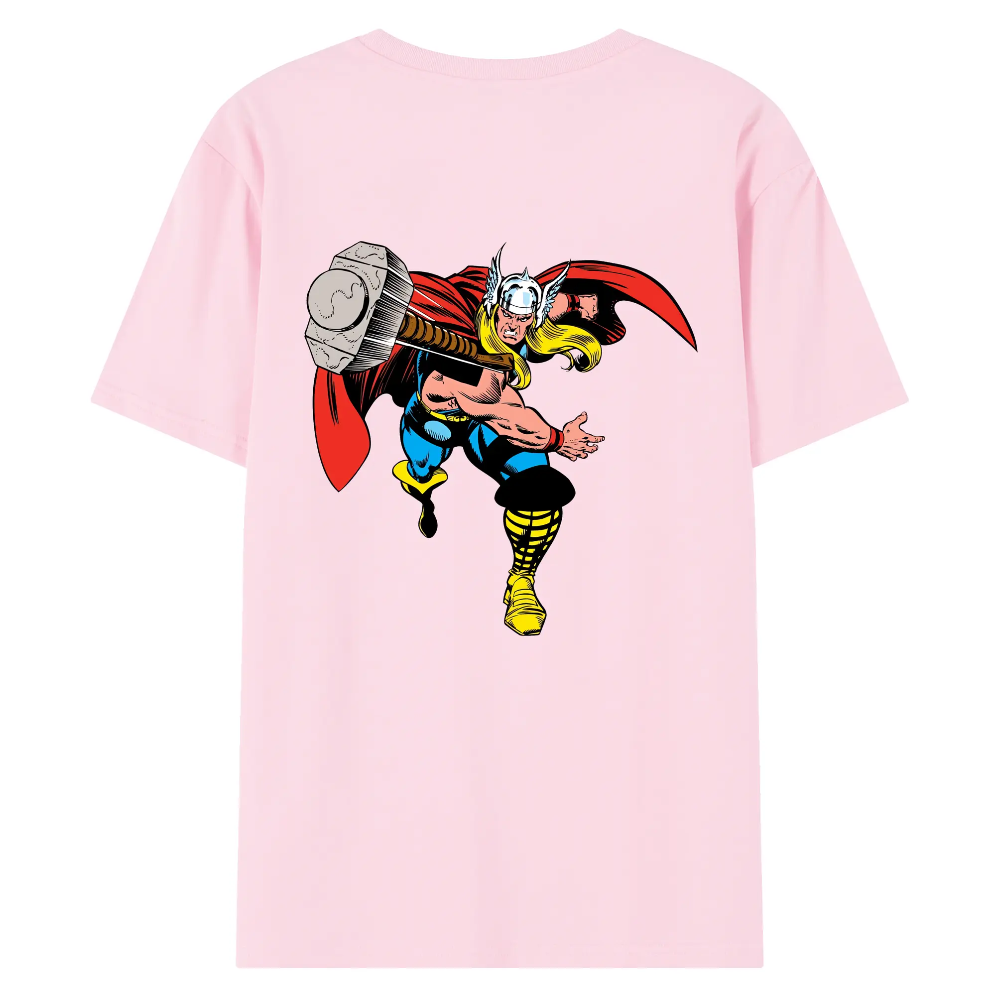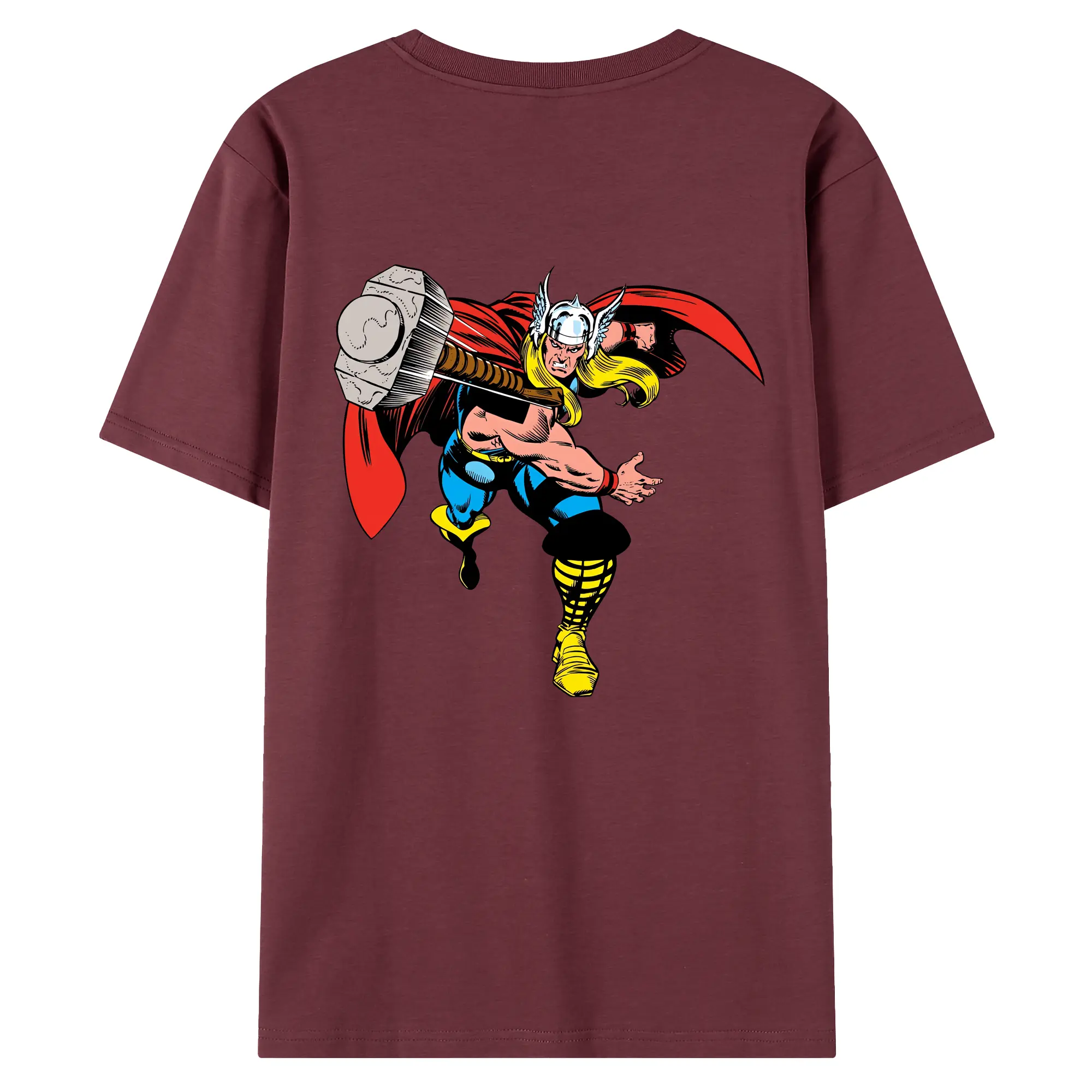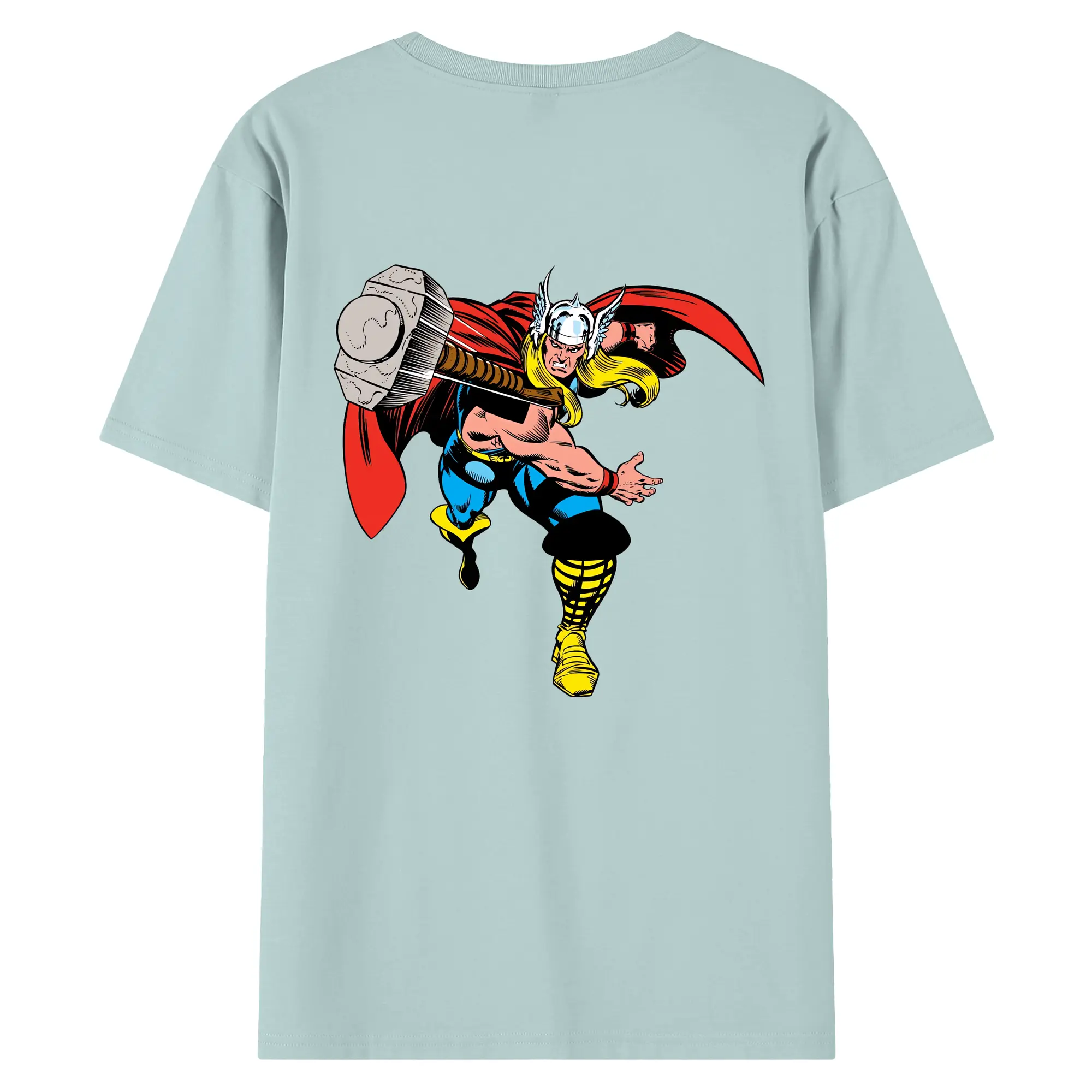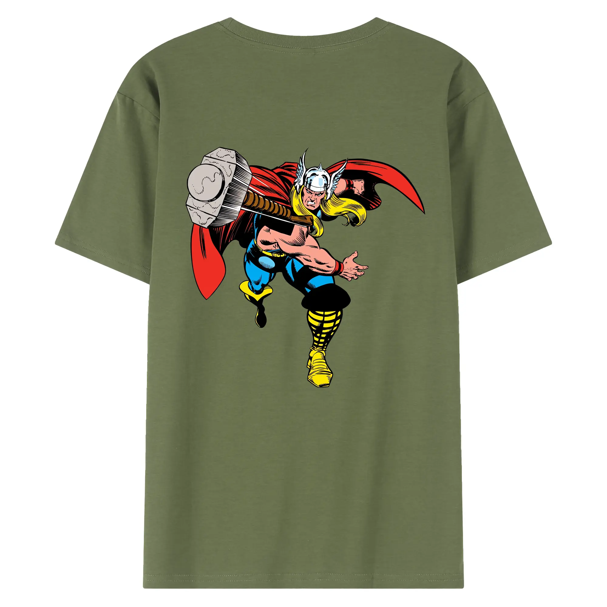 アベンジャーズ (Avenjāzu) グッズ マイティ・ソー(Thor) - 綿100% ヴィンテージ風 半袖Tシャツ ・ 背面プリント ・ 柔らか肌触り ・ 通気性 快適 ・ スポーツ カジュアル 外出用