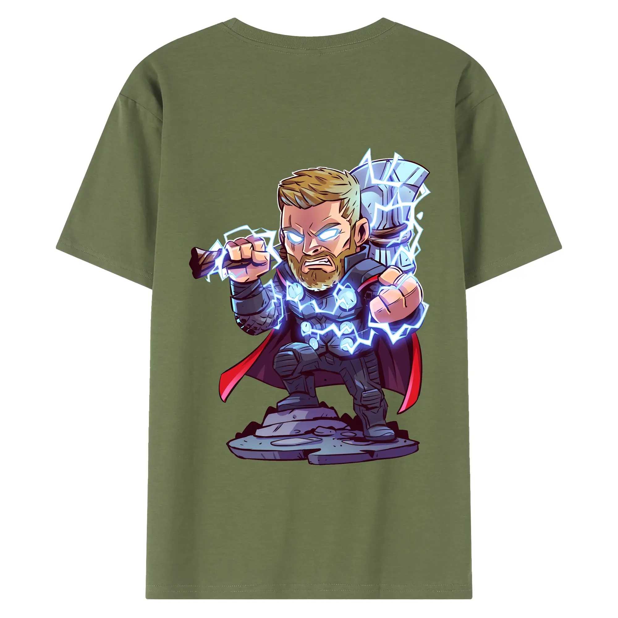 アベンジャーズ (Avenjāzu) グッズ マイティ・ソー(Thor) - 綿100% 半袖Tシャツ ・ フロントプリント ・ 快適 通気性 ・ 日常使い 散歩 スポーツ用