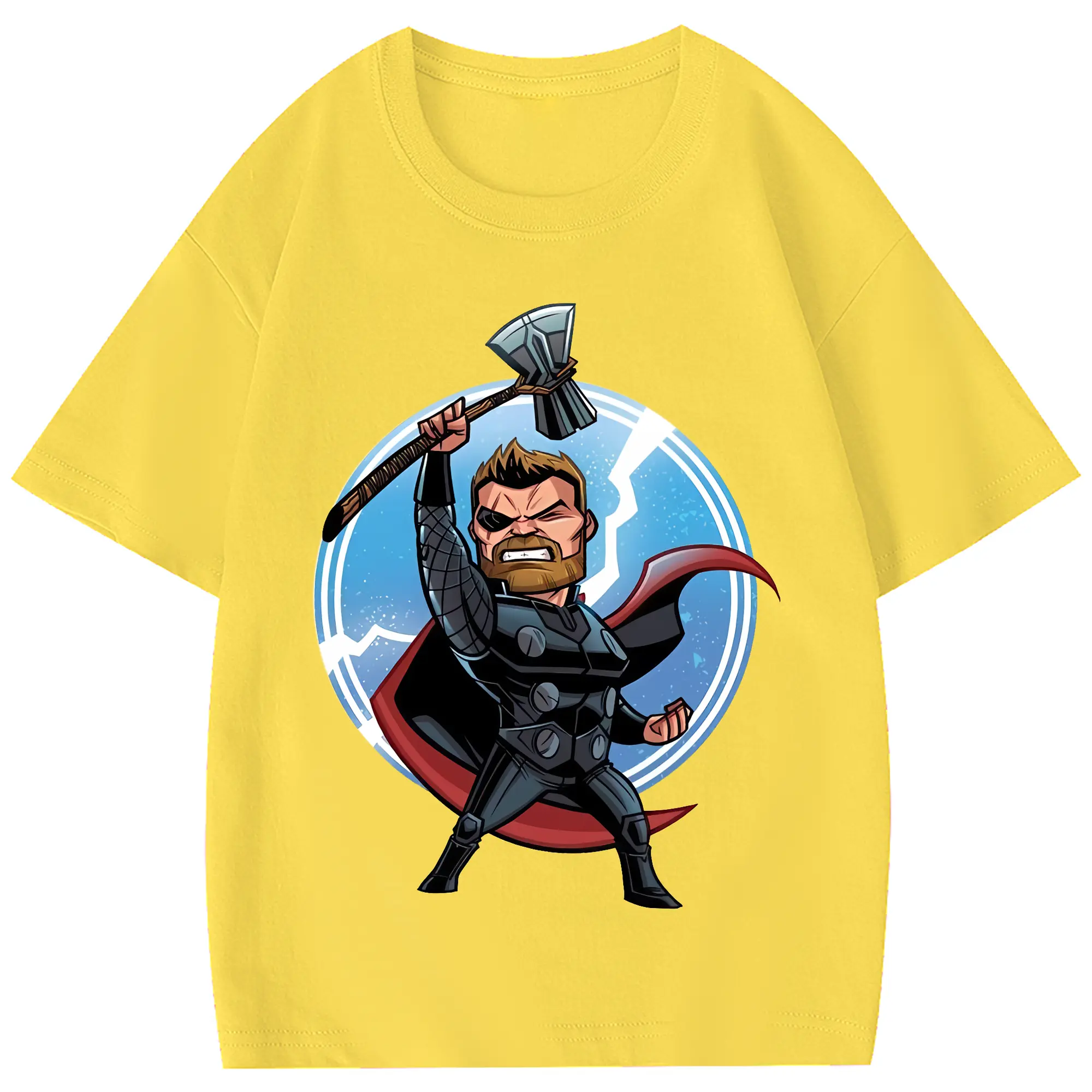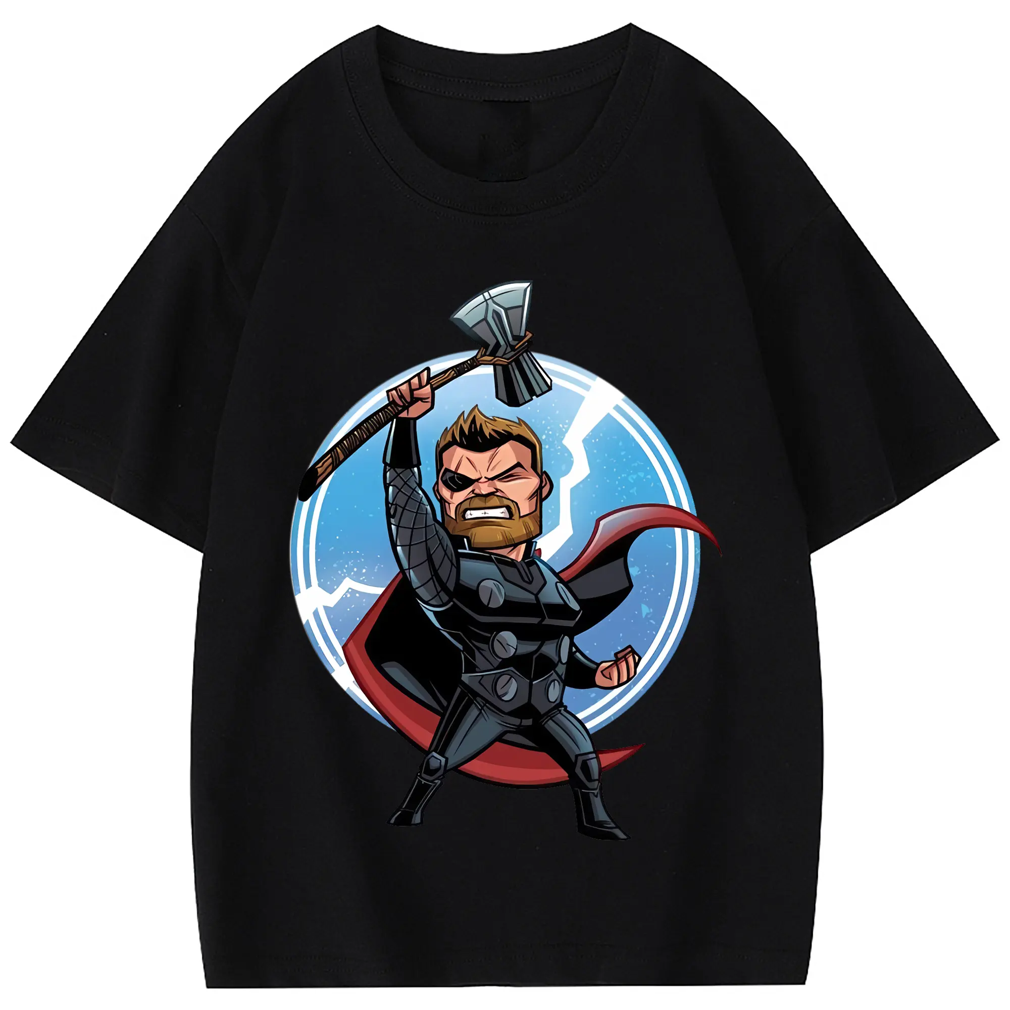 アベンジャーズ (Avenjāzu) グッズ マイティ・ソー(Thor) - 綿100% 半袖Tシャツ ・ フロントプリント ・ 快適 通気性 ・ 日常使い 散歩 スポーツ用