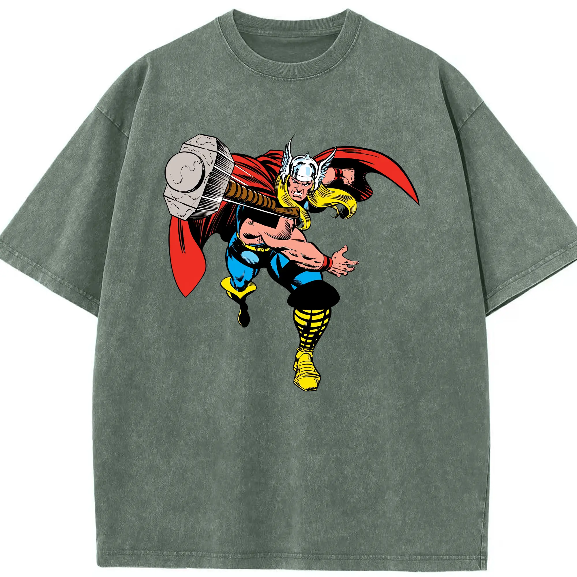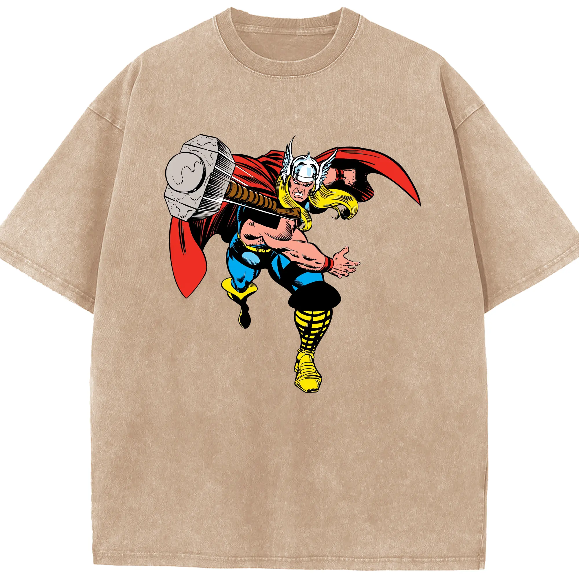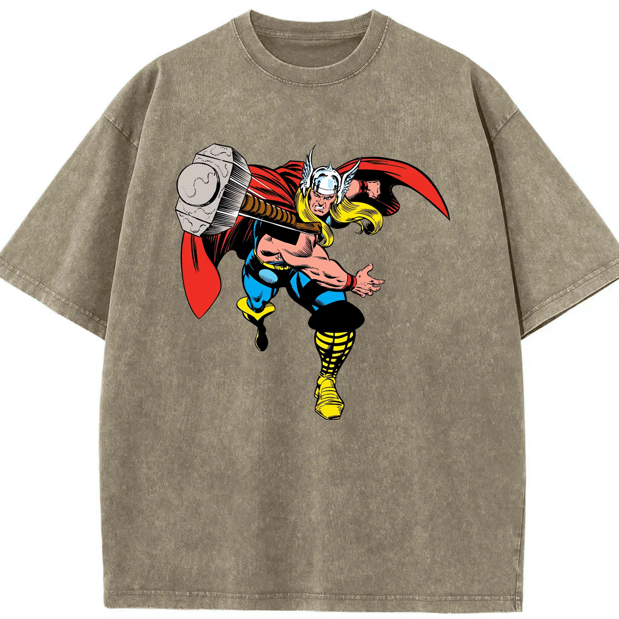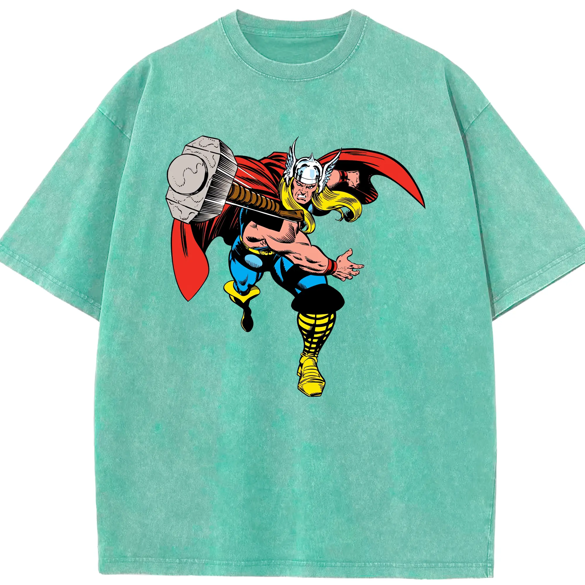 アベンジャーズ (Avenjāzu) グッズ マイティ・ソー(Thor) - 綿100% ヴィンテージ風 半袖Tシャツ ・ 背面プリント ・ 柔らか肌触り ・ 通気性 快適 ・ スポーツ カジュアル 外出用