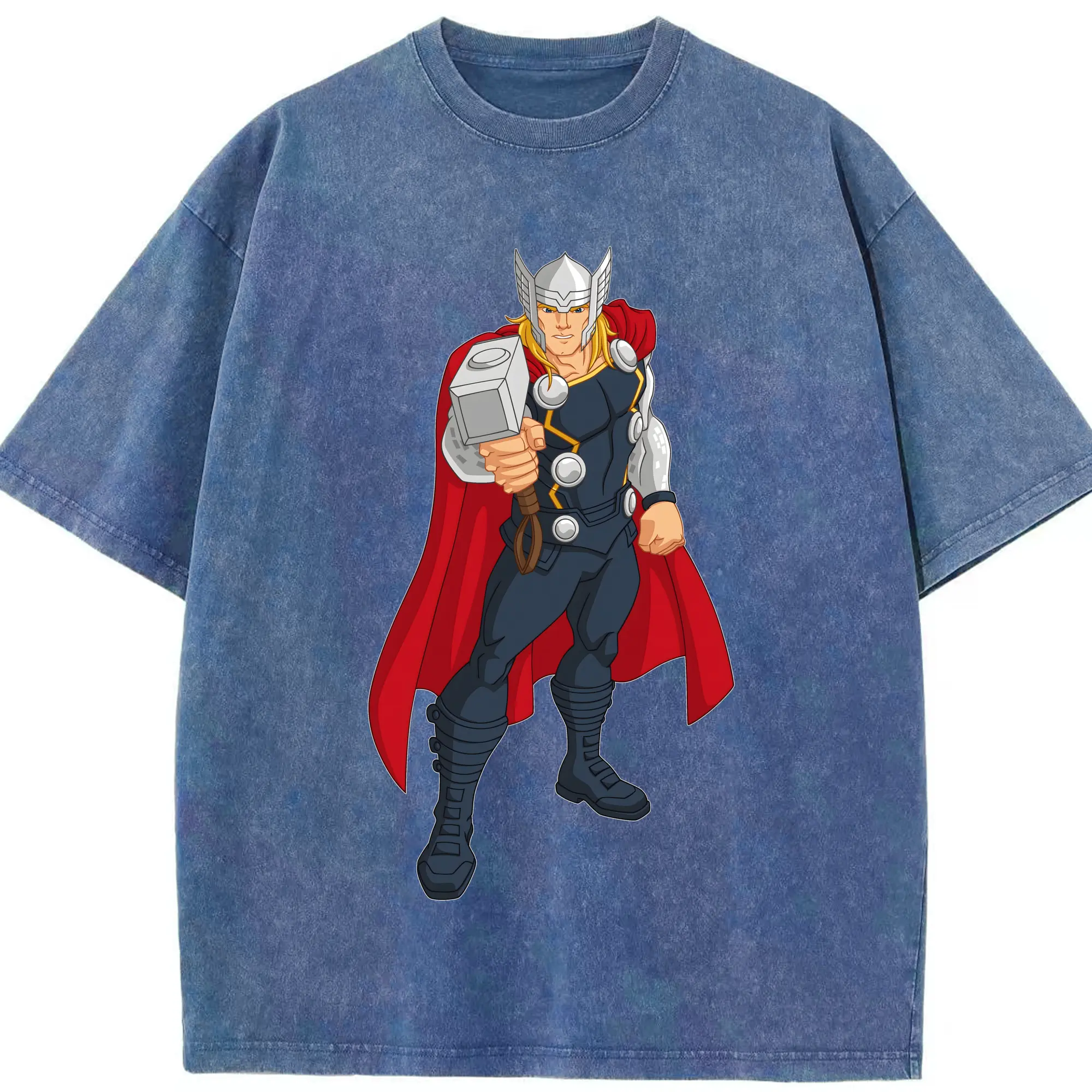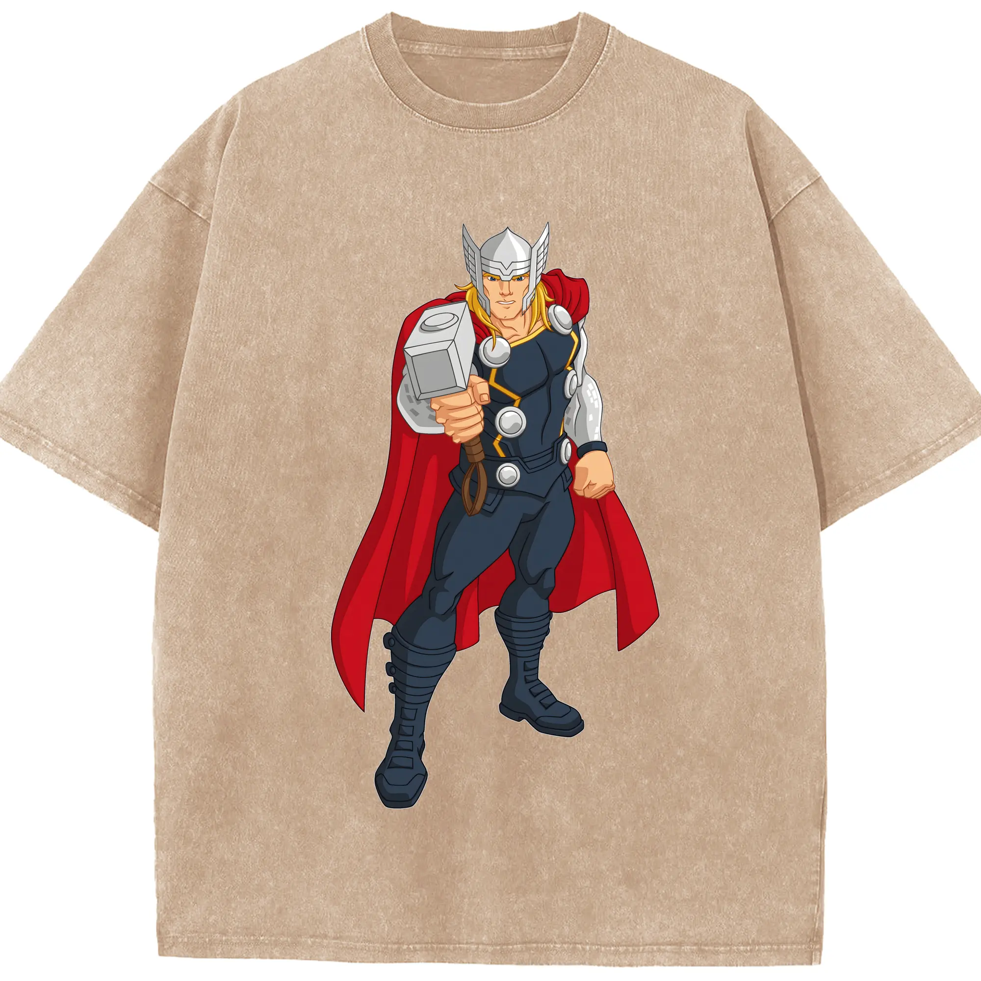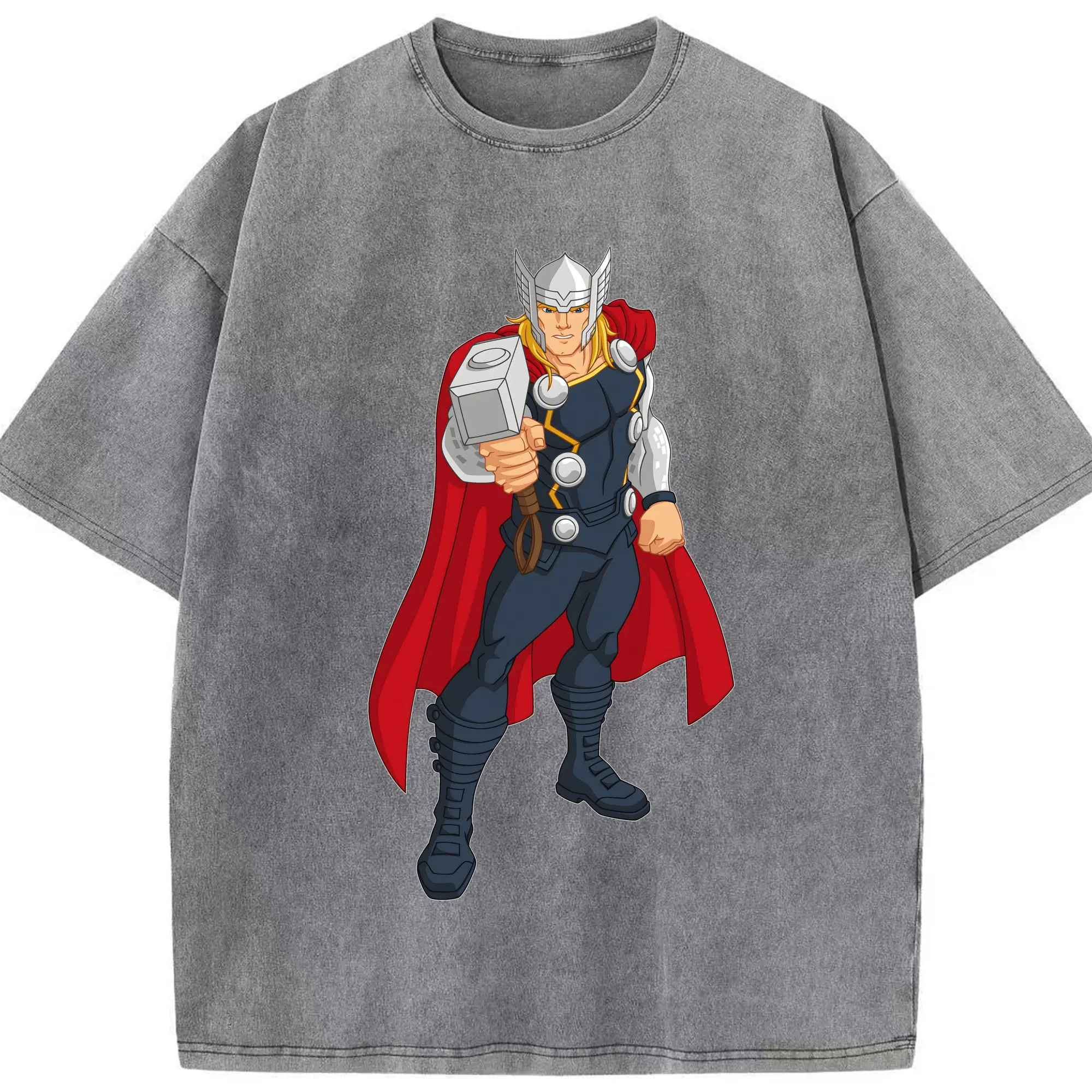 アベンジャーズ (Avenjāzu) グッズ マイティ・ソー(Thor) - 綿100% ヴィンテージ風 半袖Tシャツ ・ 背面プリント ・ 柔らか肌触り ・ 通気性 快適 ・ スポーツ カジュアル 外出用