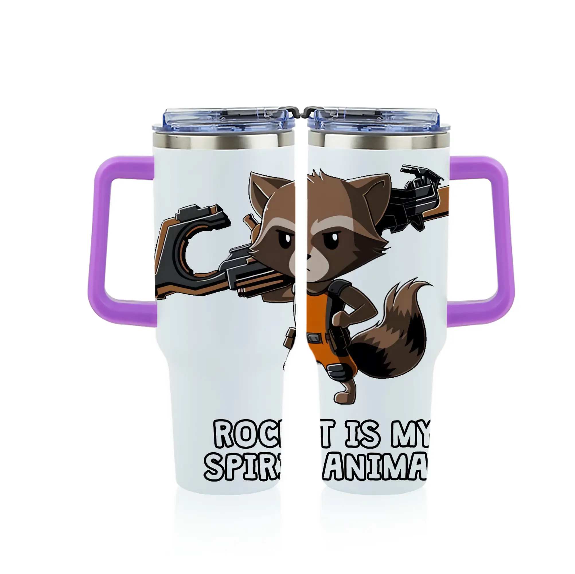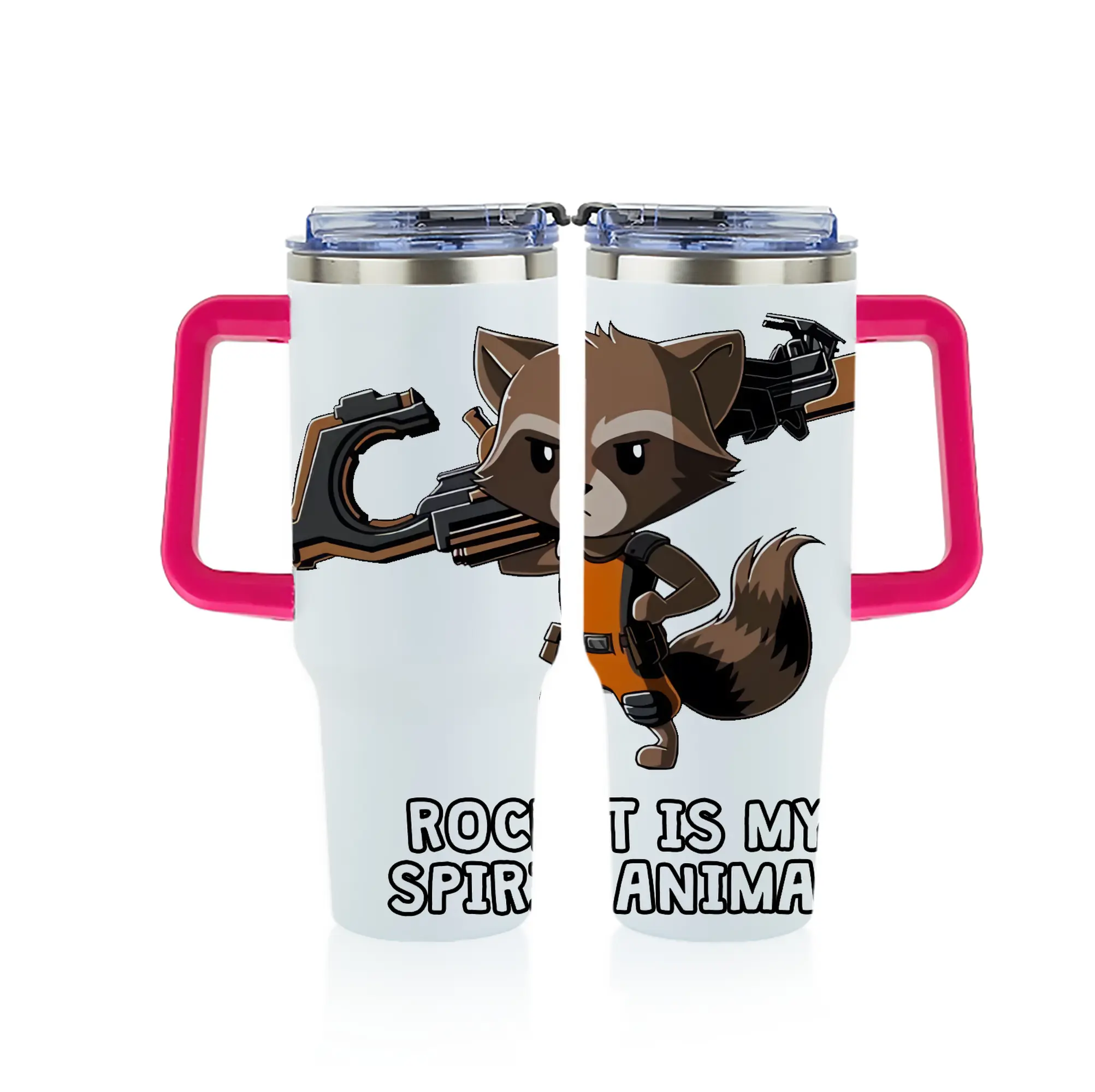 アベンジャーズ (Avenjāzu) グッズ ロケット(Roketto) - 1200mL フルプリント車用タンブラー ・ 304ステンレス 内側 ・ 201ステンレス 外側 ・ 保温 保冷 ・ 通勤 ドライブ アウトドア用