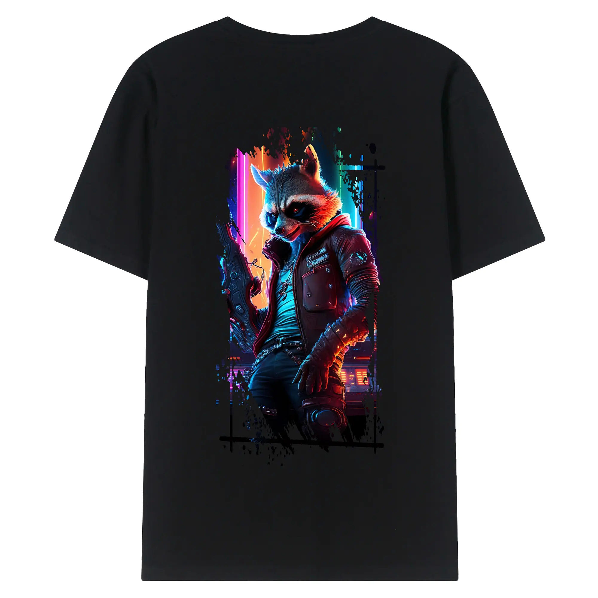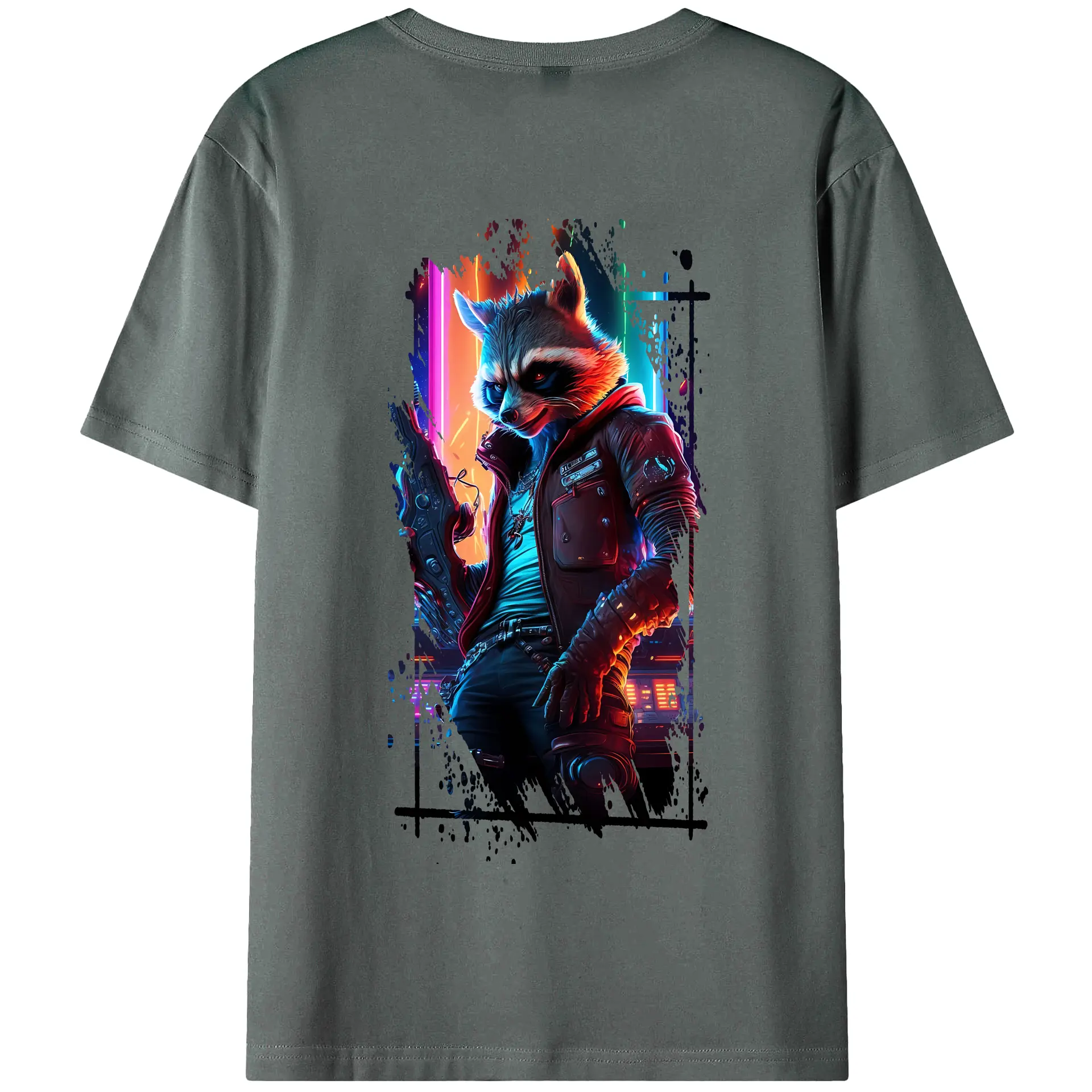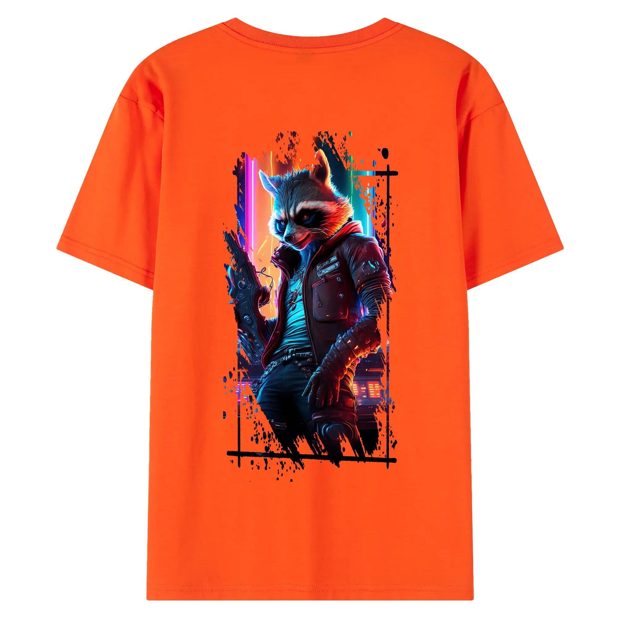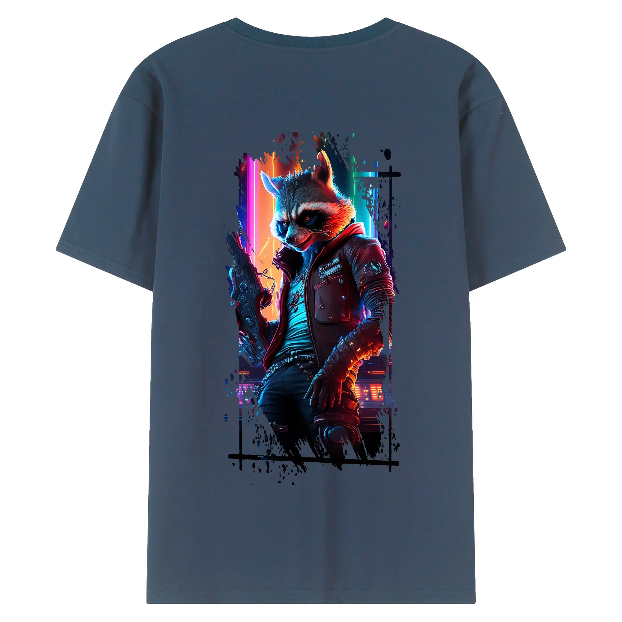 アベンジャーズ (Avenjāzu) グッズ ロケット(Roketto) - 綿100% ヴィンテージ風 半袖Tシャツ ・ 背面プリント ・ 柔らか肌触り ・ 通気性 快適 ・ スポーツ カジュアル 外出用