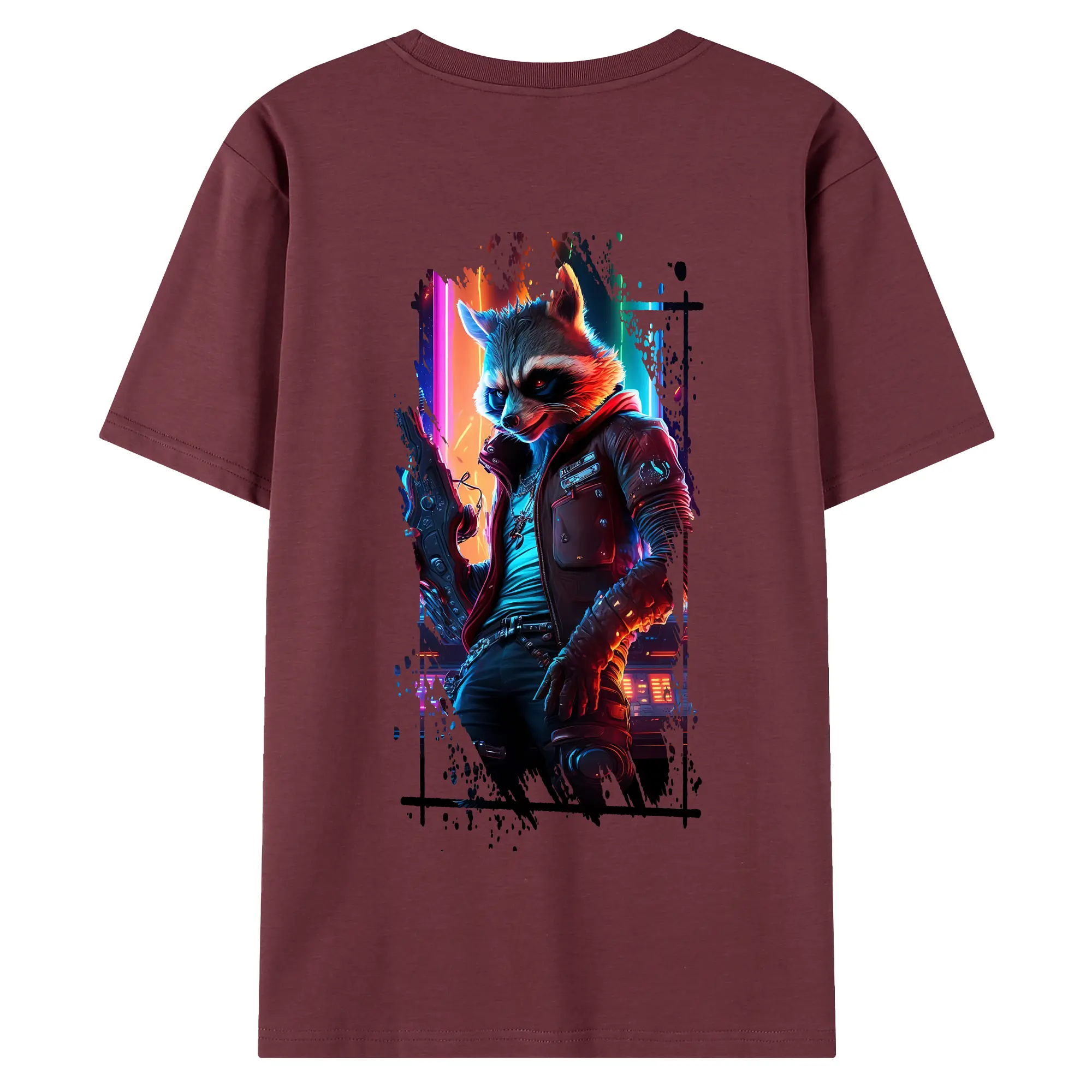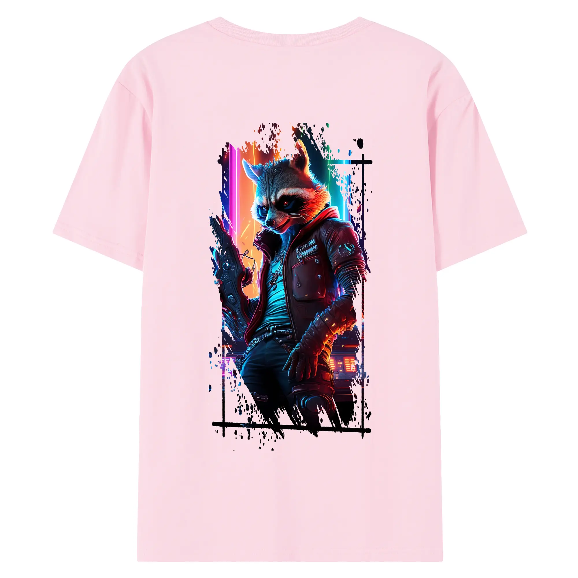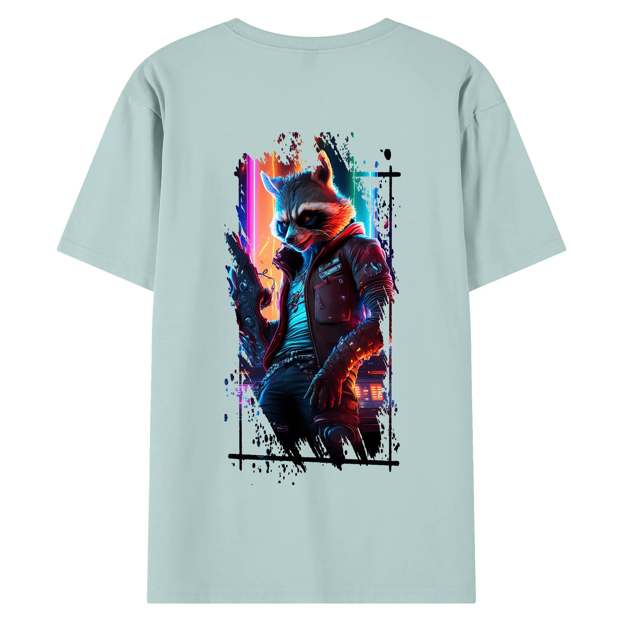 アベンジャーズ (Avenjāzu) グッズ ロケット(Roketto) - 綿100% ヴィンテージ風 半袖Tシャツ ・ 背面プリント ・ 柔らか肌触り ・ 通気性 快適 ・ スポーツ カジュアル 外出用