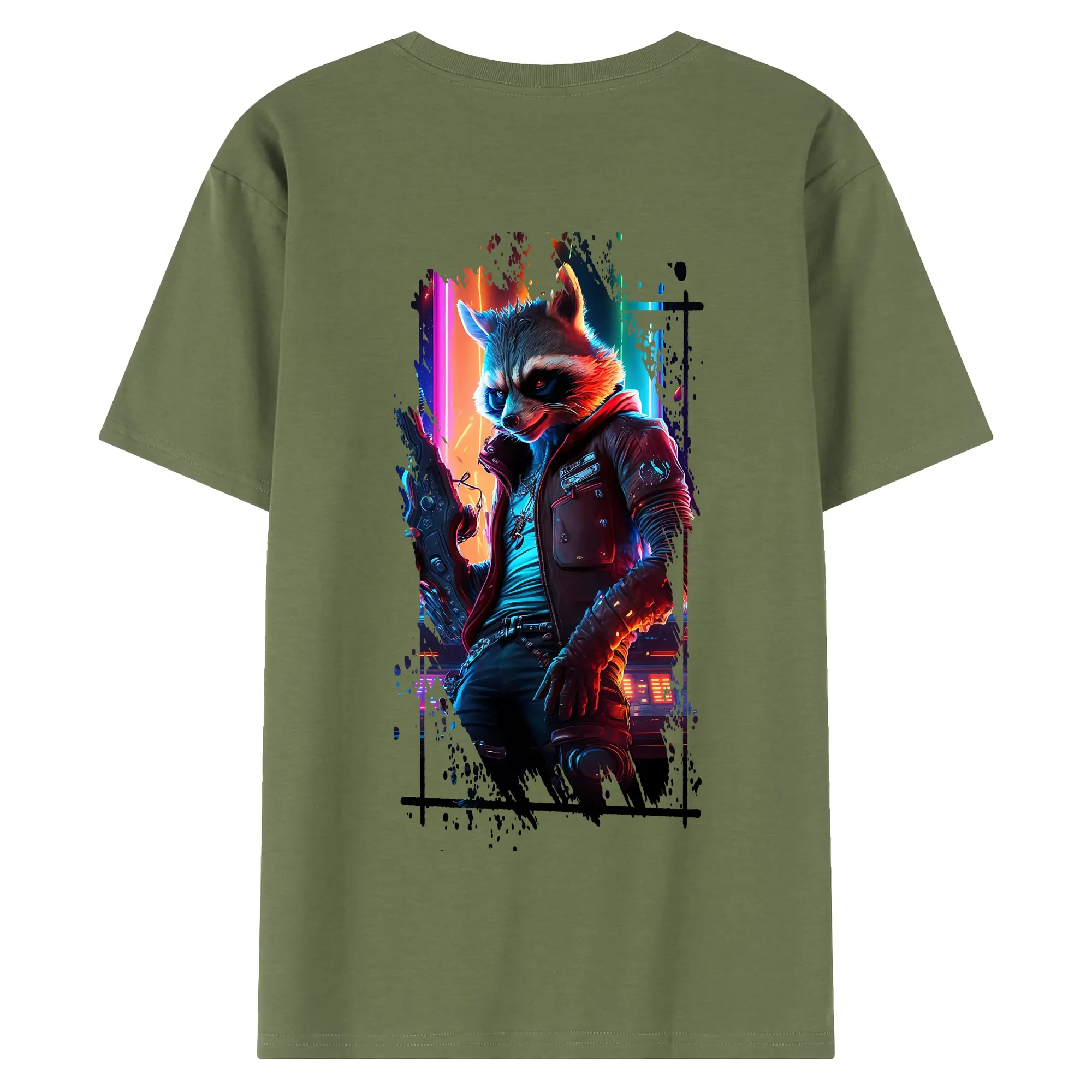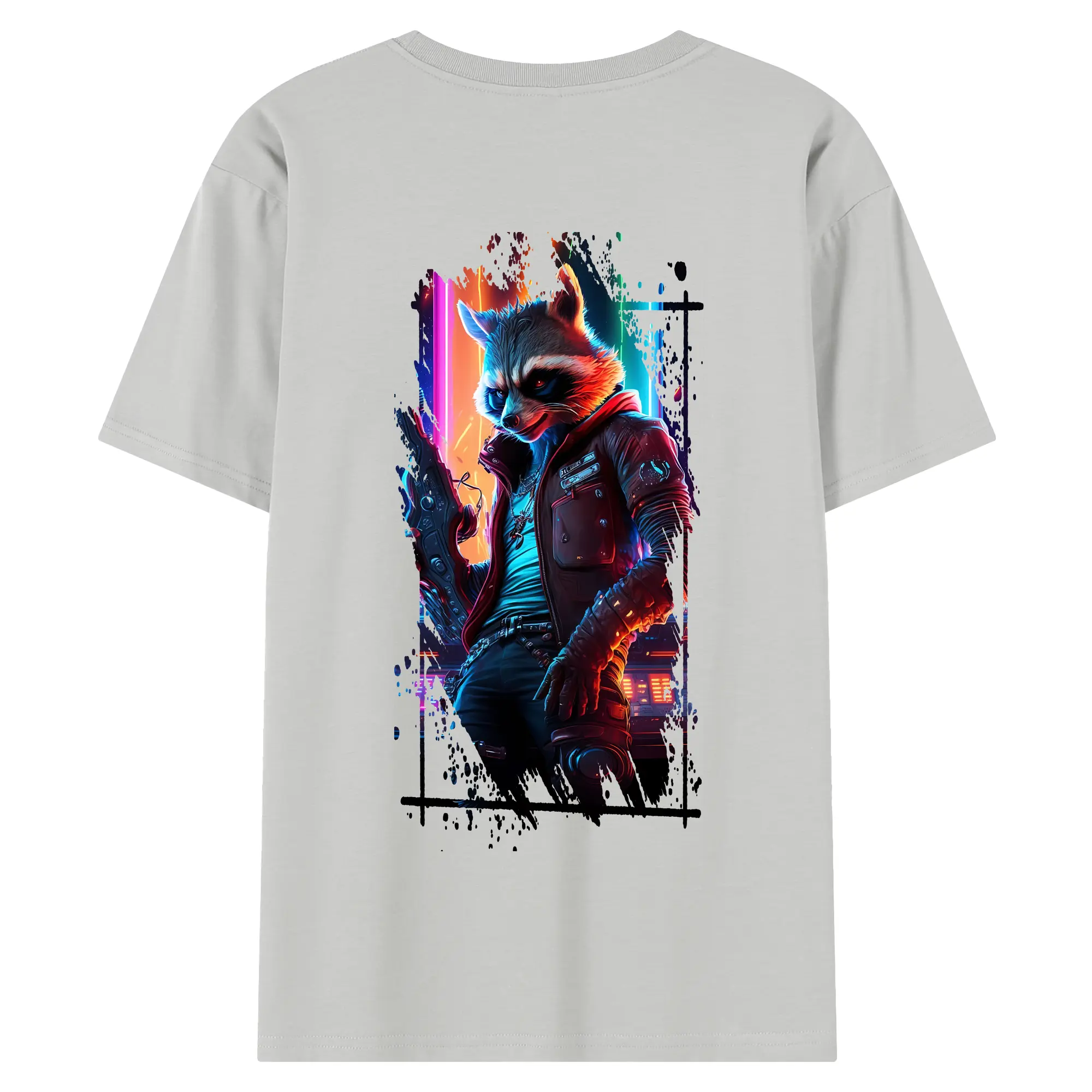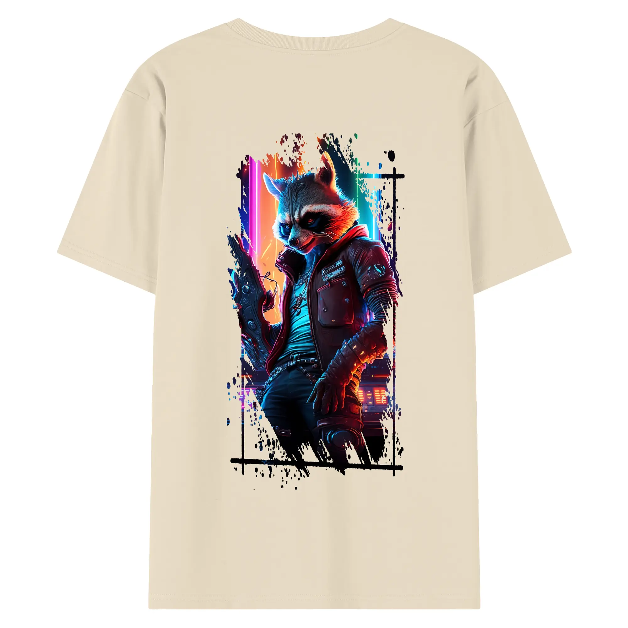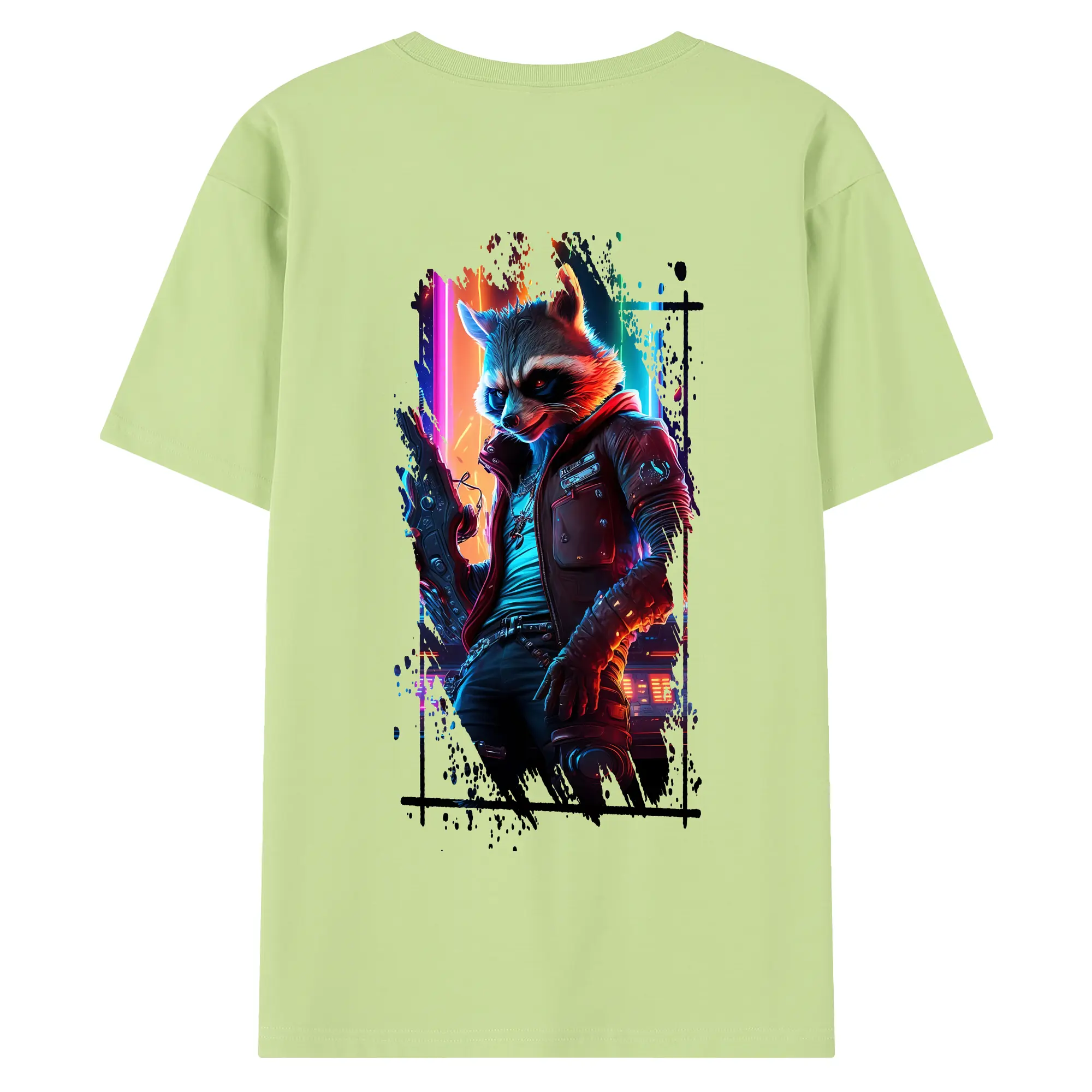 アベンジャーズ (Avenjāzu) グッズ ロケット(Roketto) - 綿100% ヴィンテージ風 半袖Tシャツ ・ 背面プリント ・ 柔らか肌触り ・ 通気性 快適 ・ スポーツ カジュアル 外出用