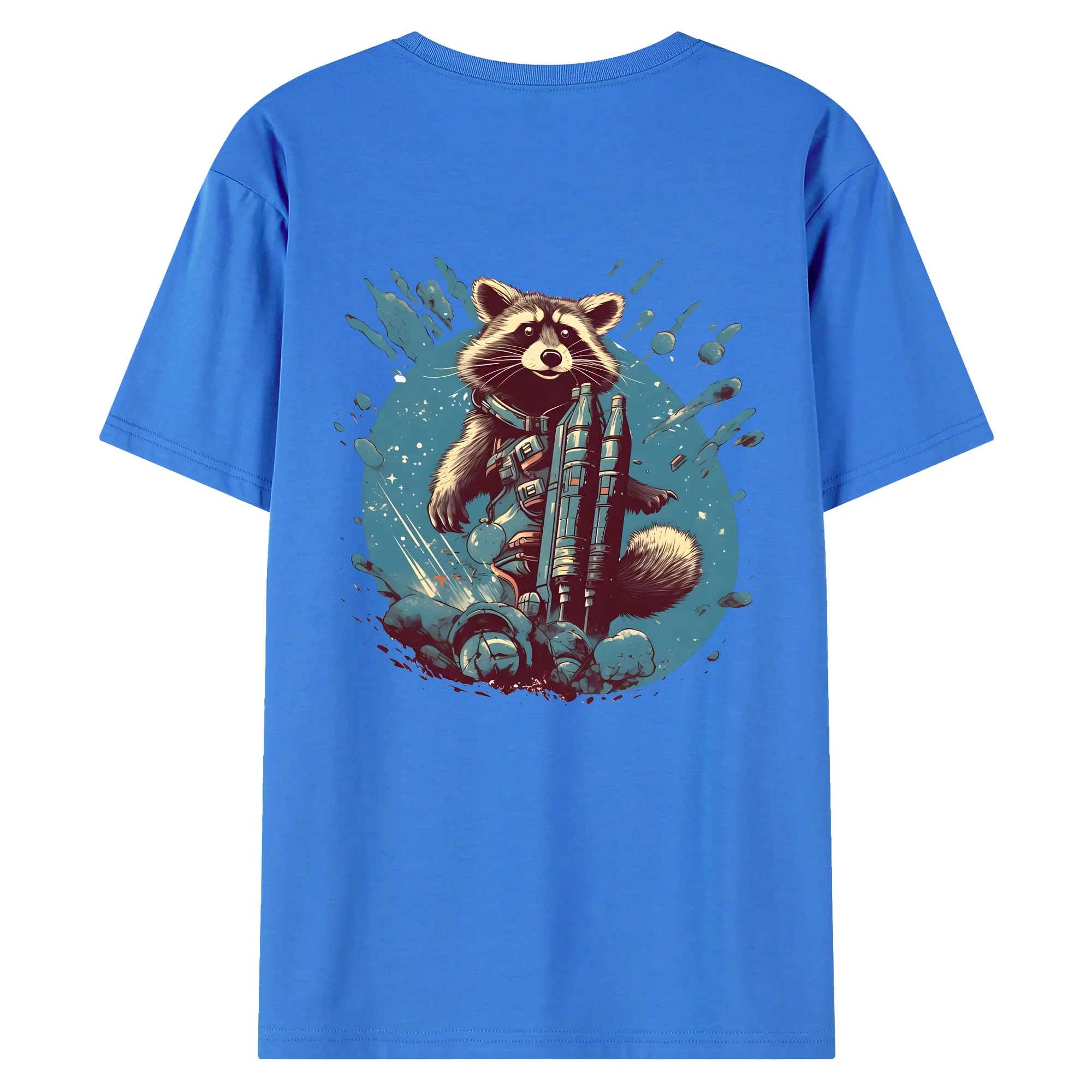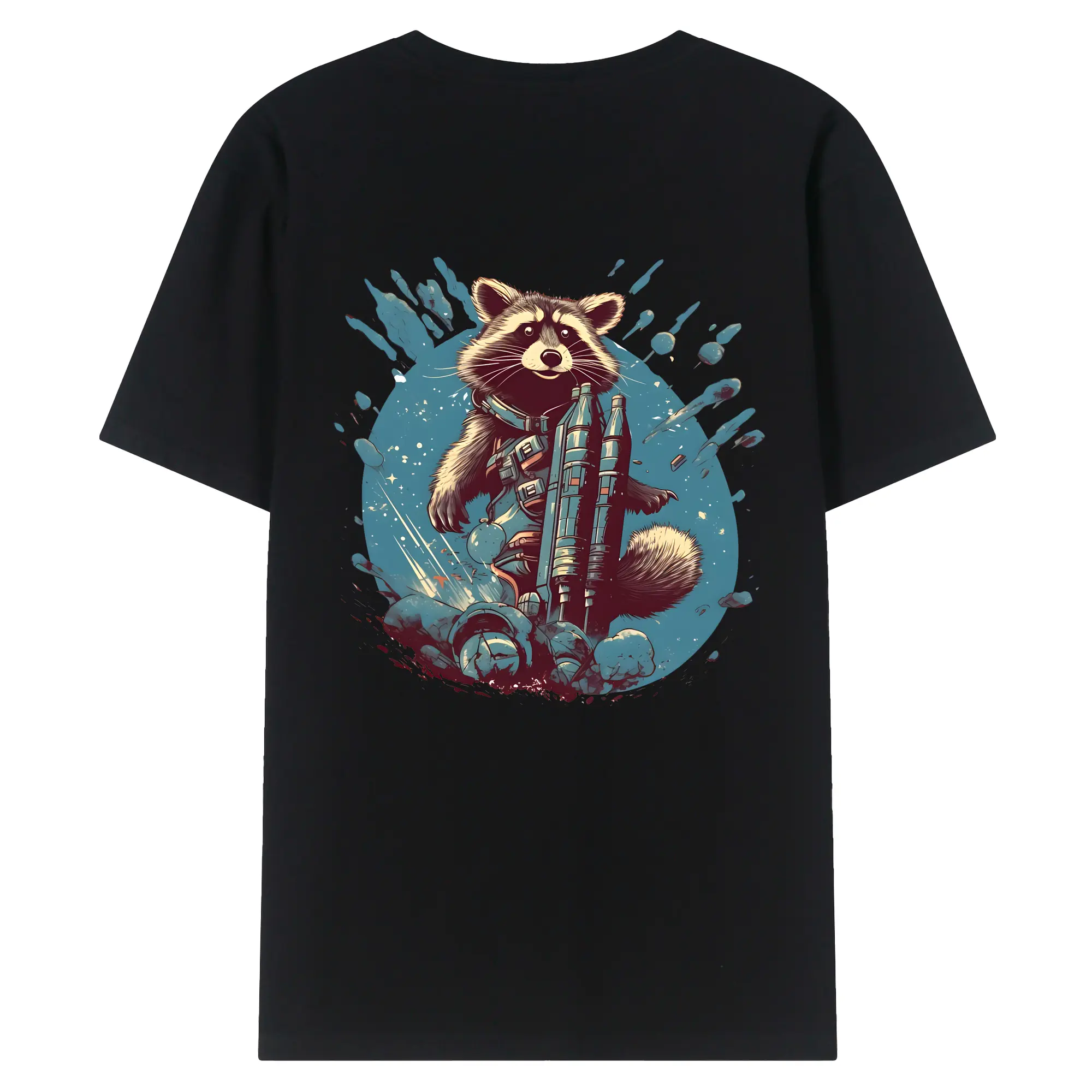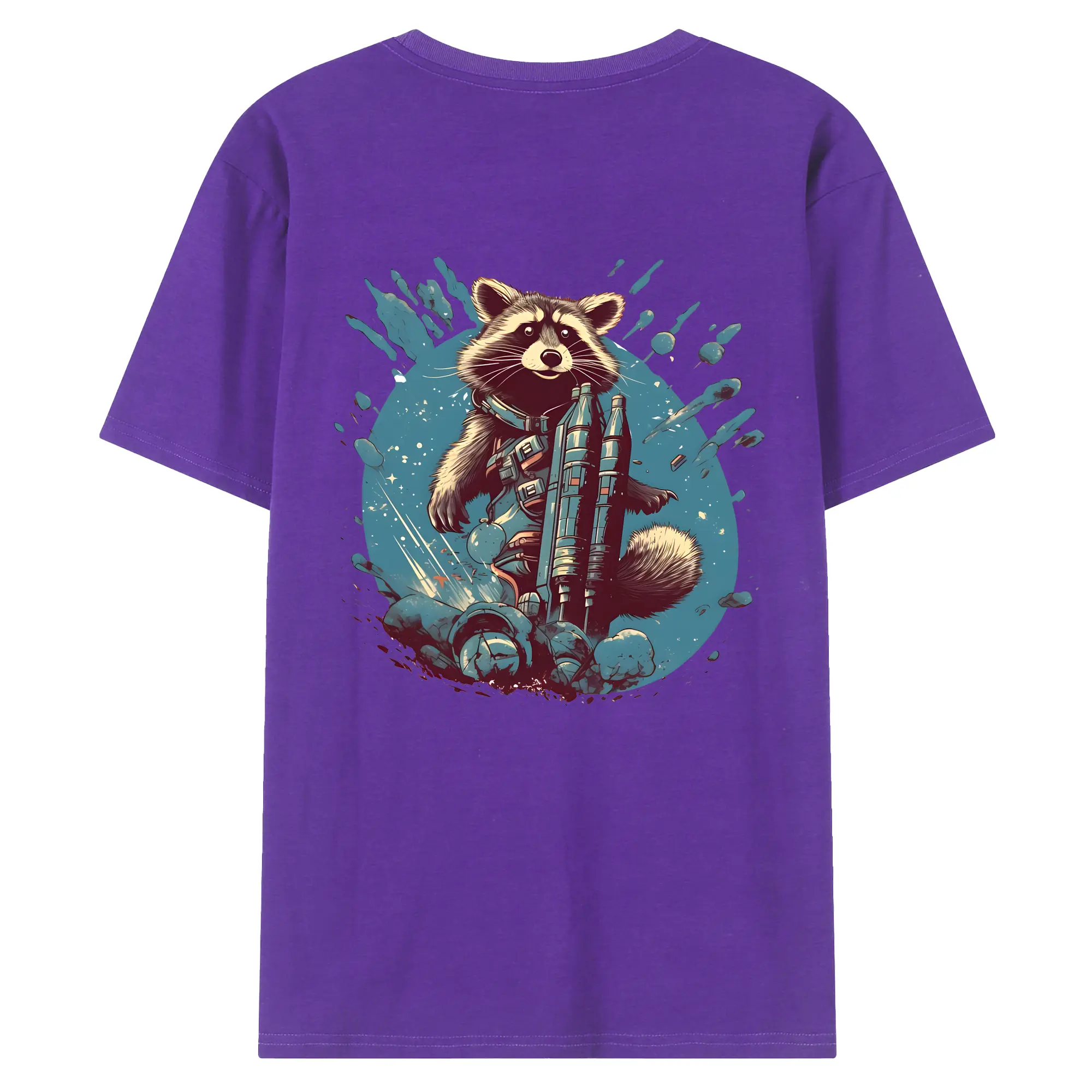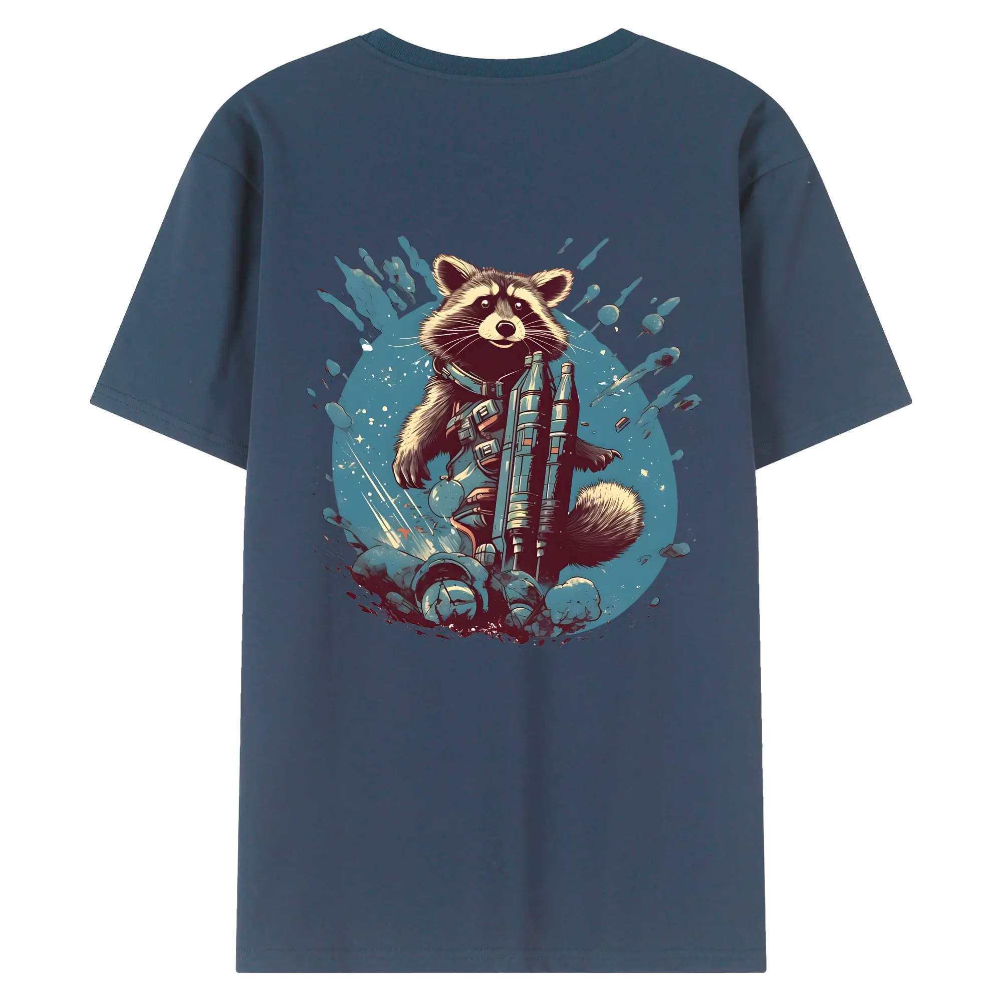 アベンジャーズ (Avenjāzu) グッズ ロケット(Roketto) - 綿100% ヴィンテージ風 半袖Tシャツ ・ 背面プリント ・ 柔らか肌触り ・ 通気性 快適 ・ スポーツ カジュアル 外出用