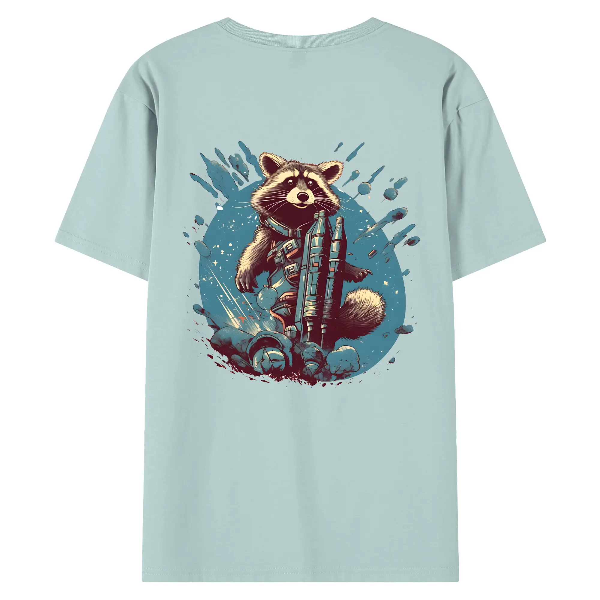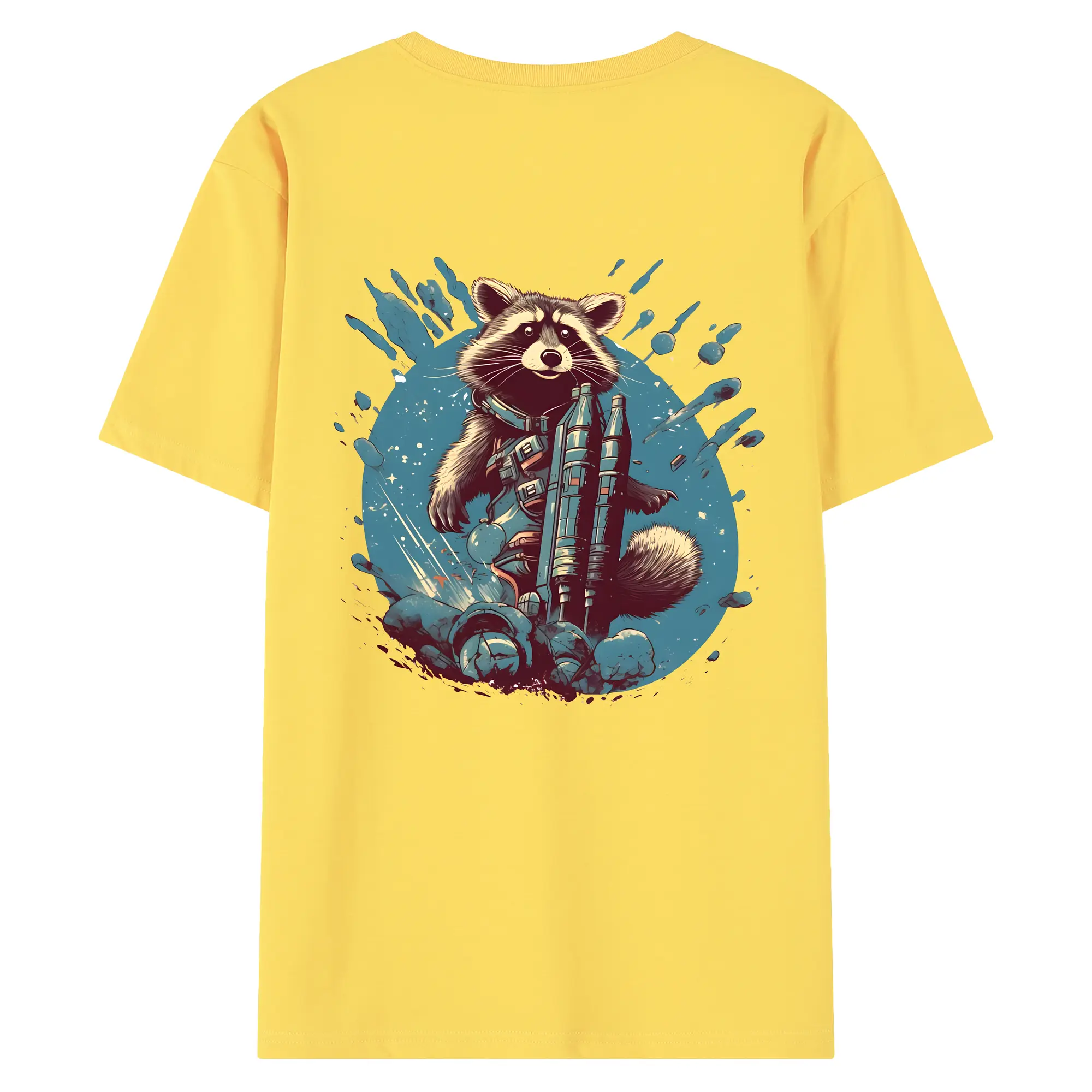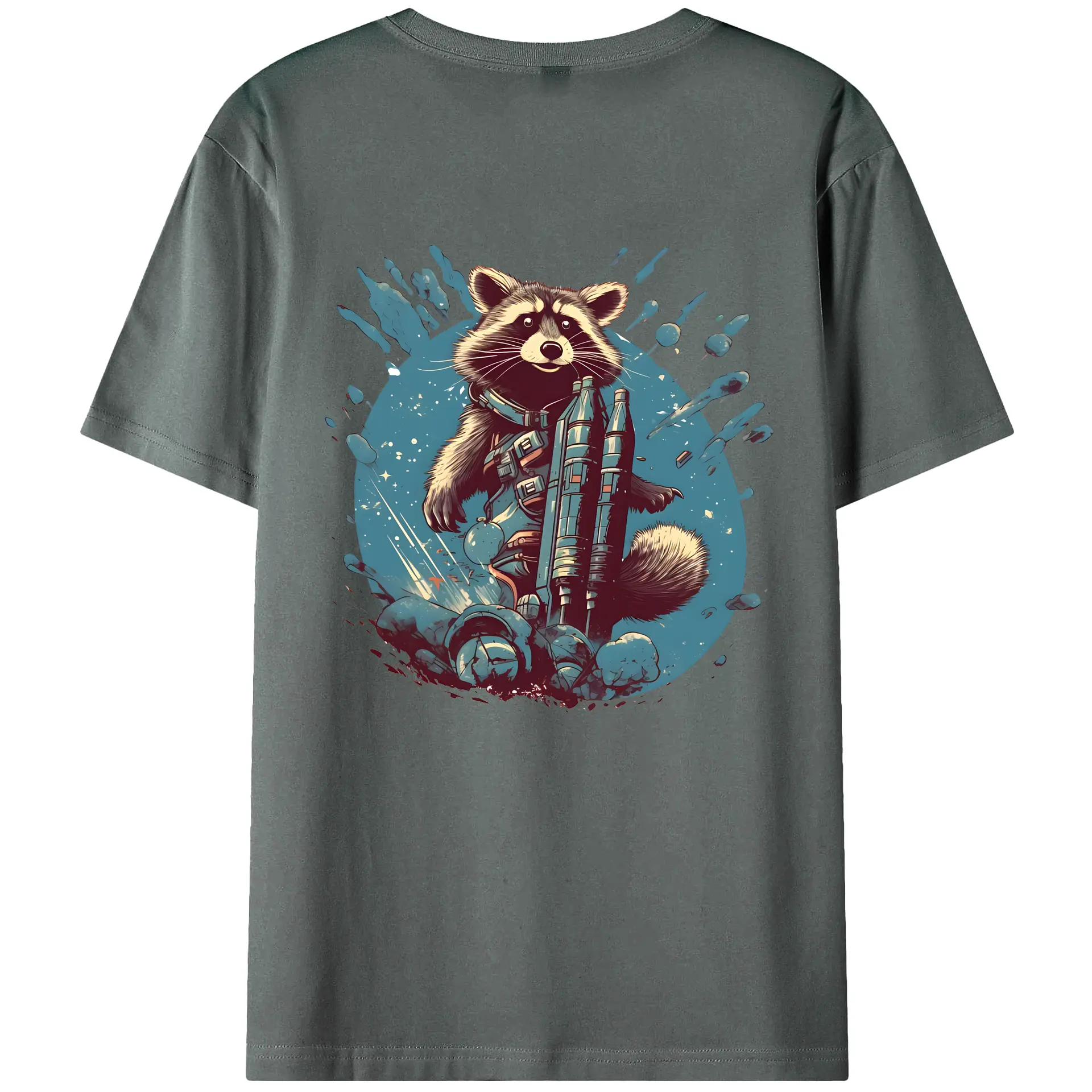 アベンジャーズ (Avenjāzu) グッズ ロケット(Roketto) - 綿100% ヴィンテージ風 半袖Tシャツ ・ 背面プリント ・ 柔らか肌触り ・ 通気性 快適 ・ スポーツ カジュアル 外出用