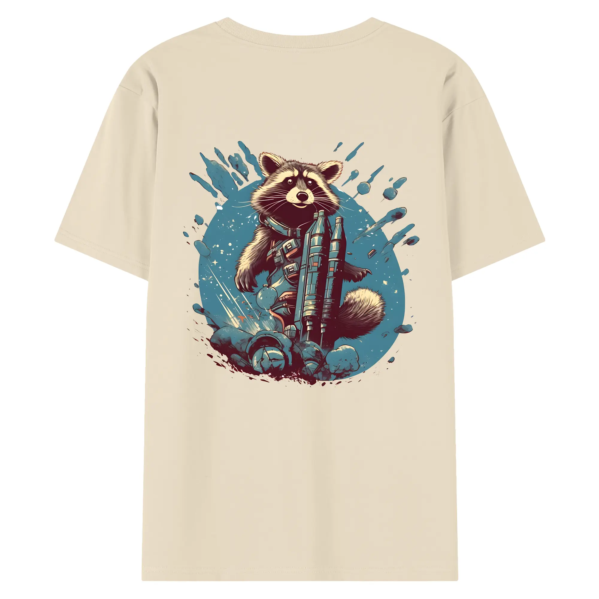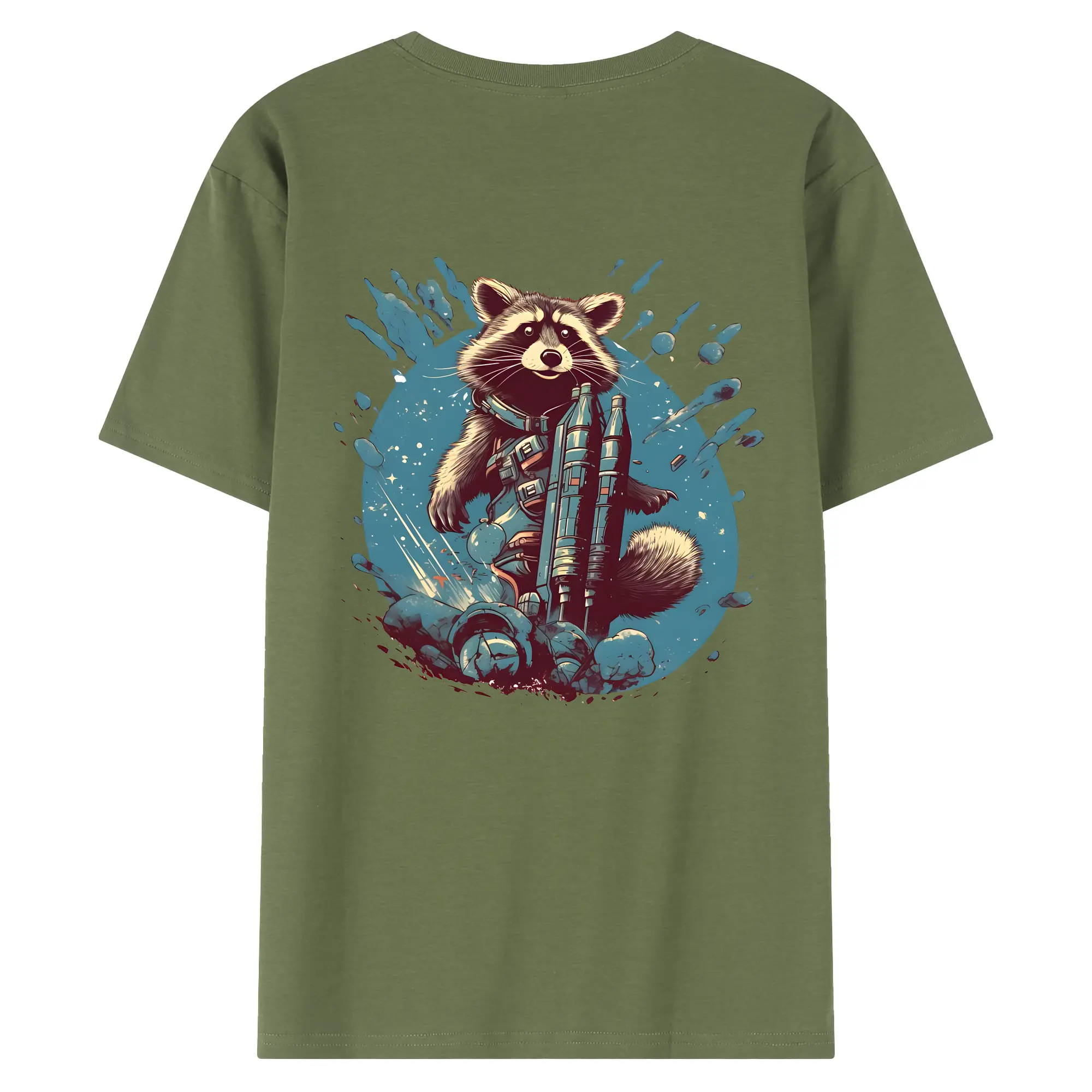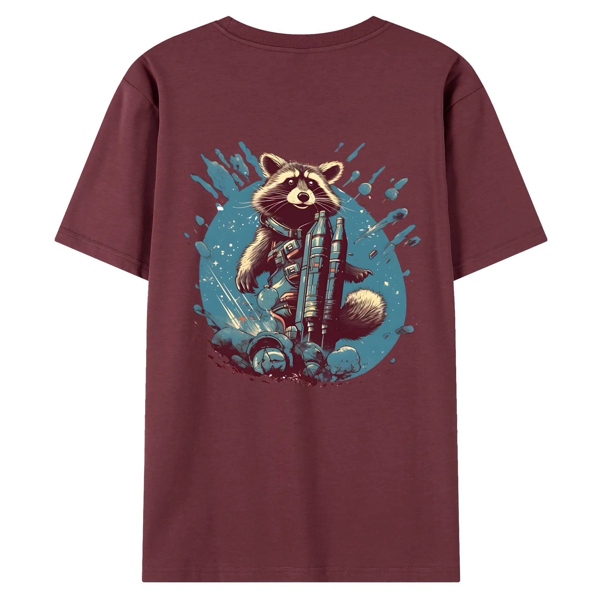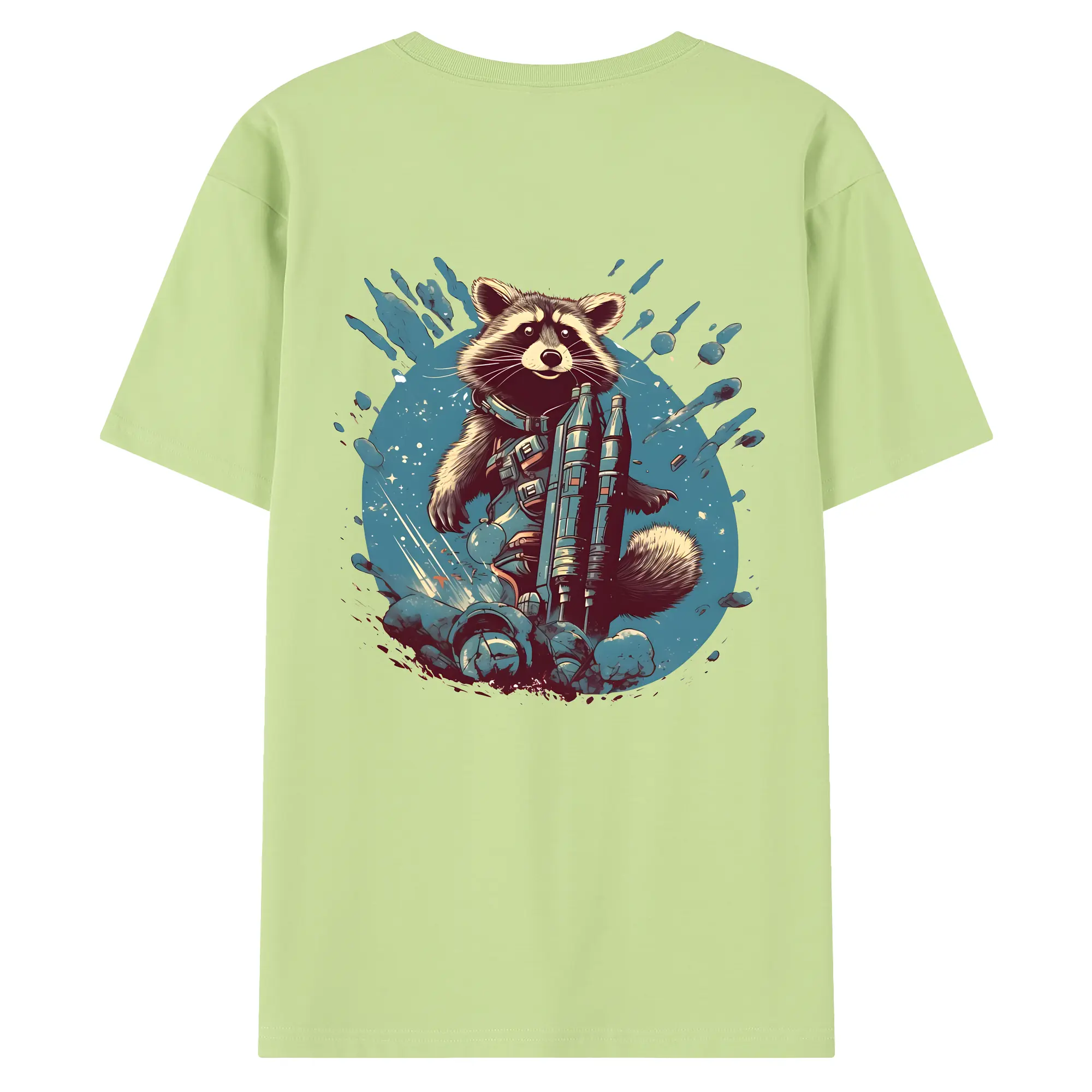 アベンジャーズ (Avenjāzu) グッズ ロケット(Roketto) - 綿100% ヴィンテージ風 半袖Tシャツ ・ 背面プリント ・ 柔らか肌触り ・ 通気性 快適 ・ スポーツ カジュアル 外出用