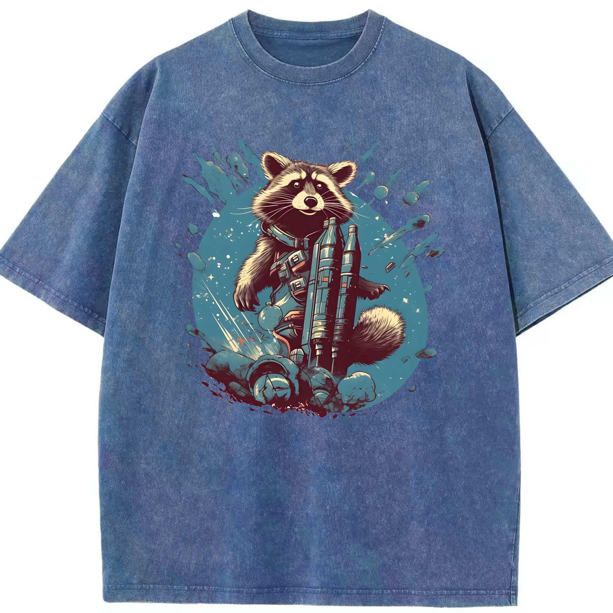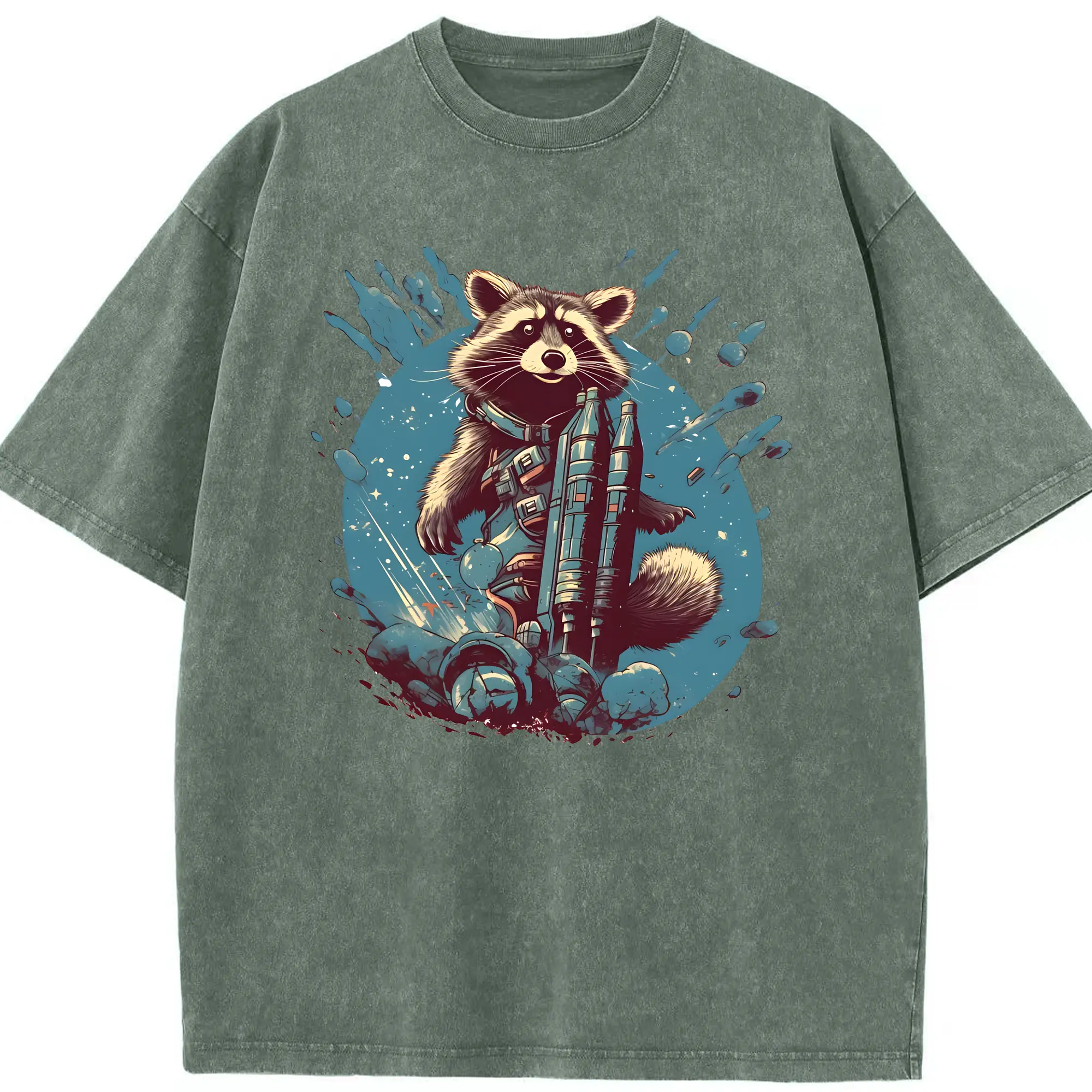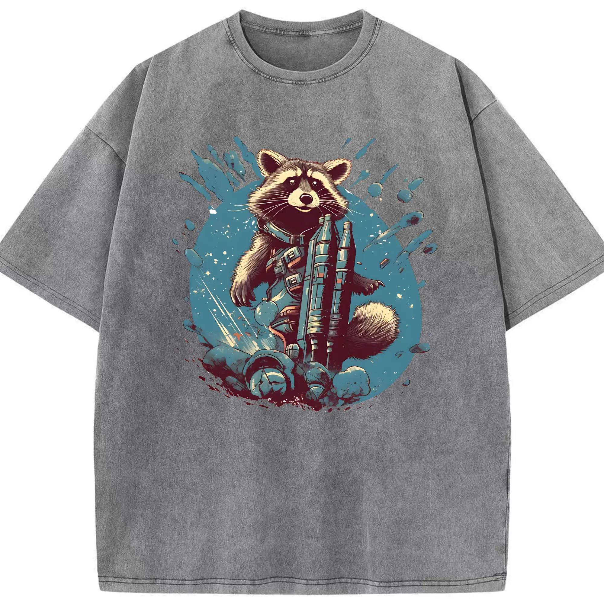 アベンジャーズ (Avenjāzu) グッズ ロケット(Roketto) - 綿100% ヴィンテージ風 半袖Tシャツ ・ 背面プリント ・ 柔らか肌触り ・ 通気性 快適 ・ スポーツ カジュアル 外出用