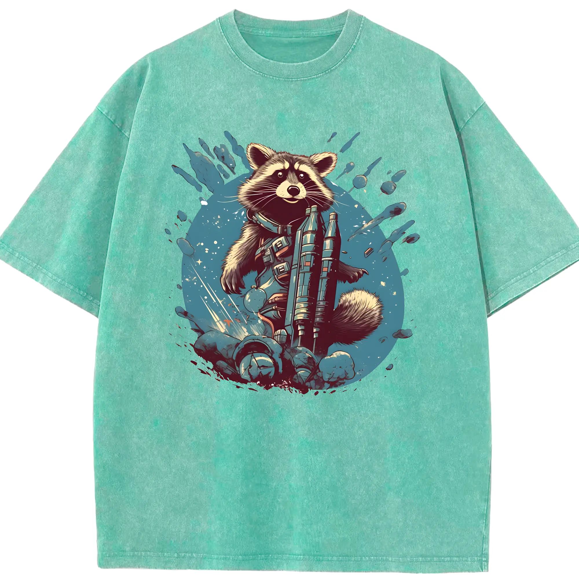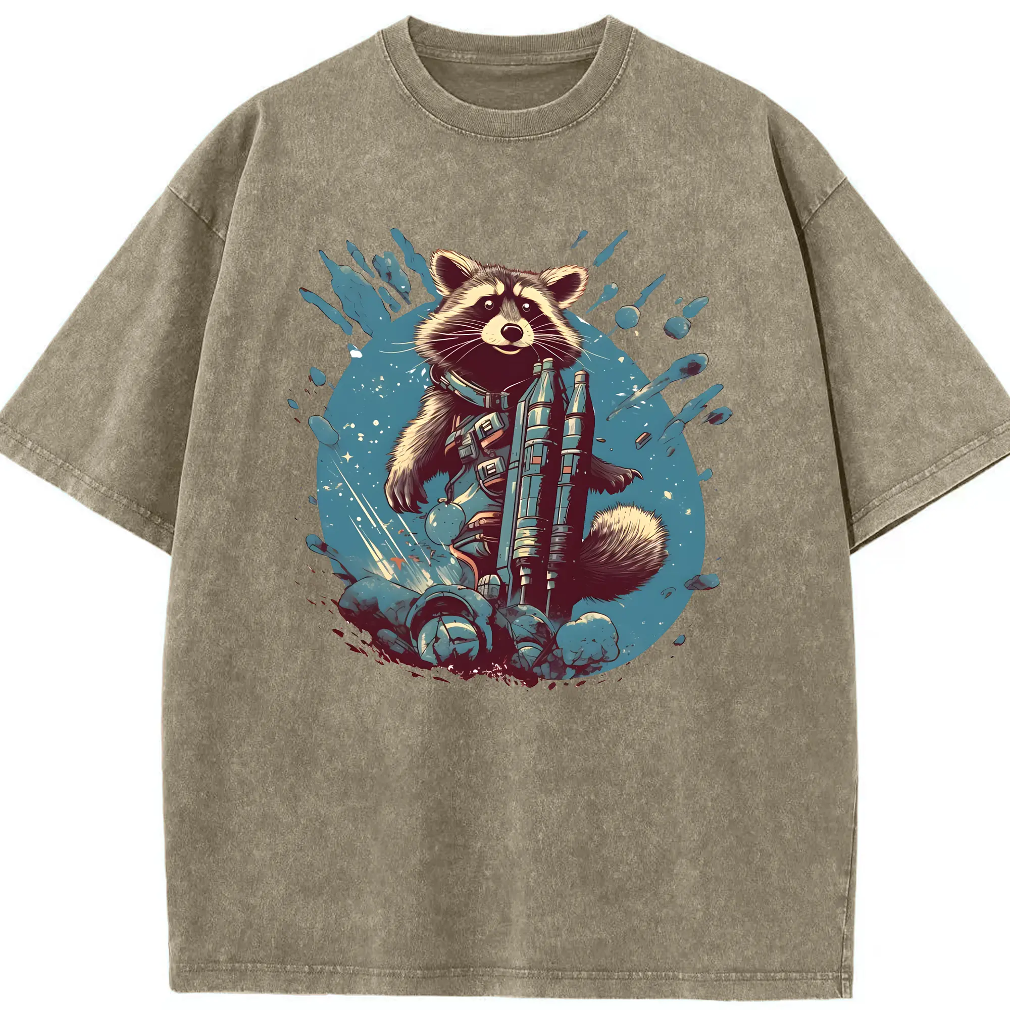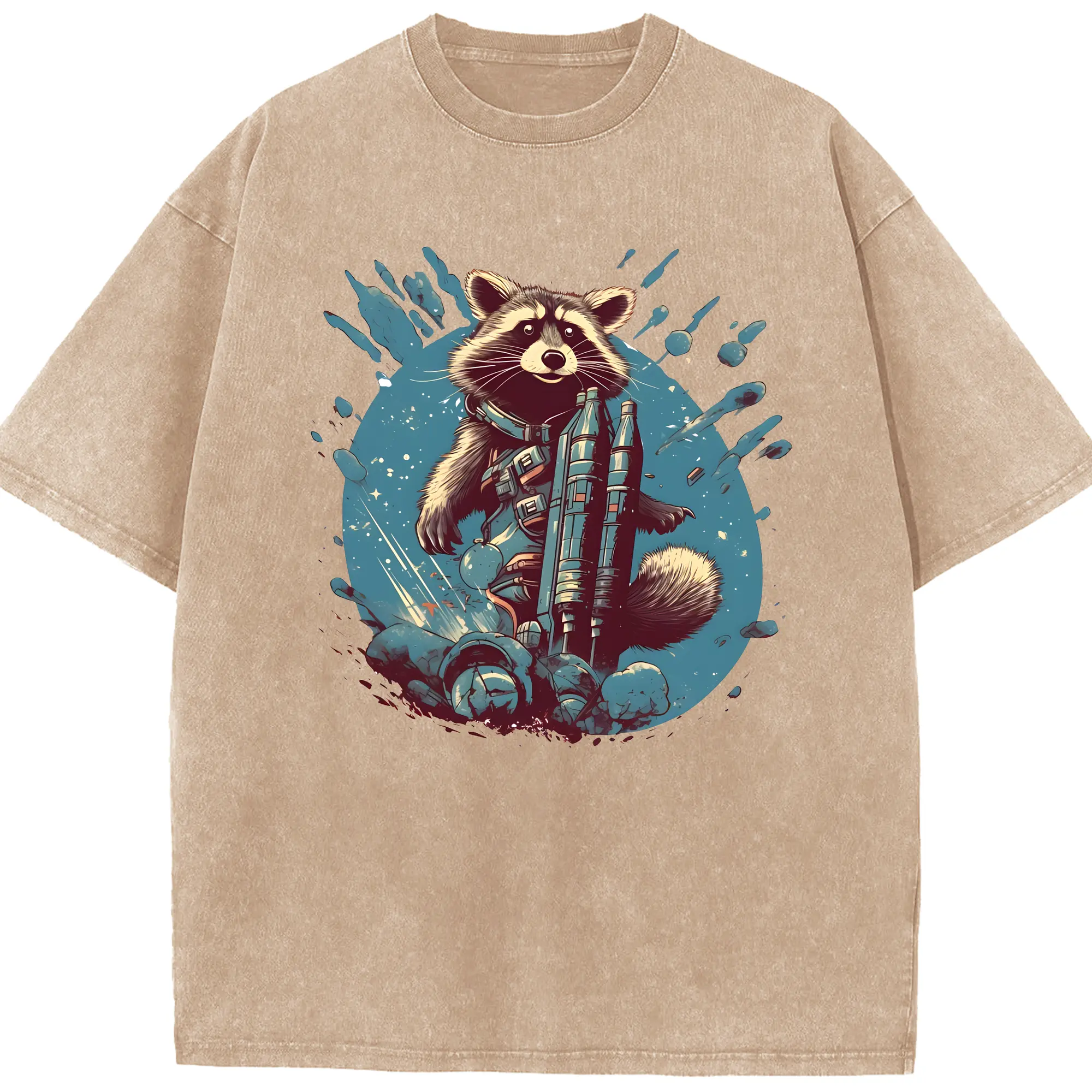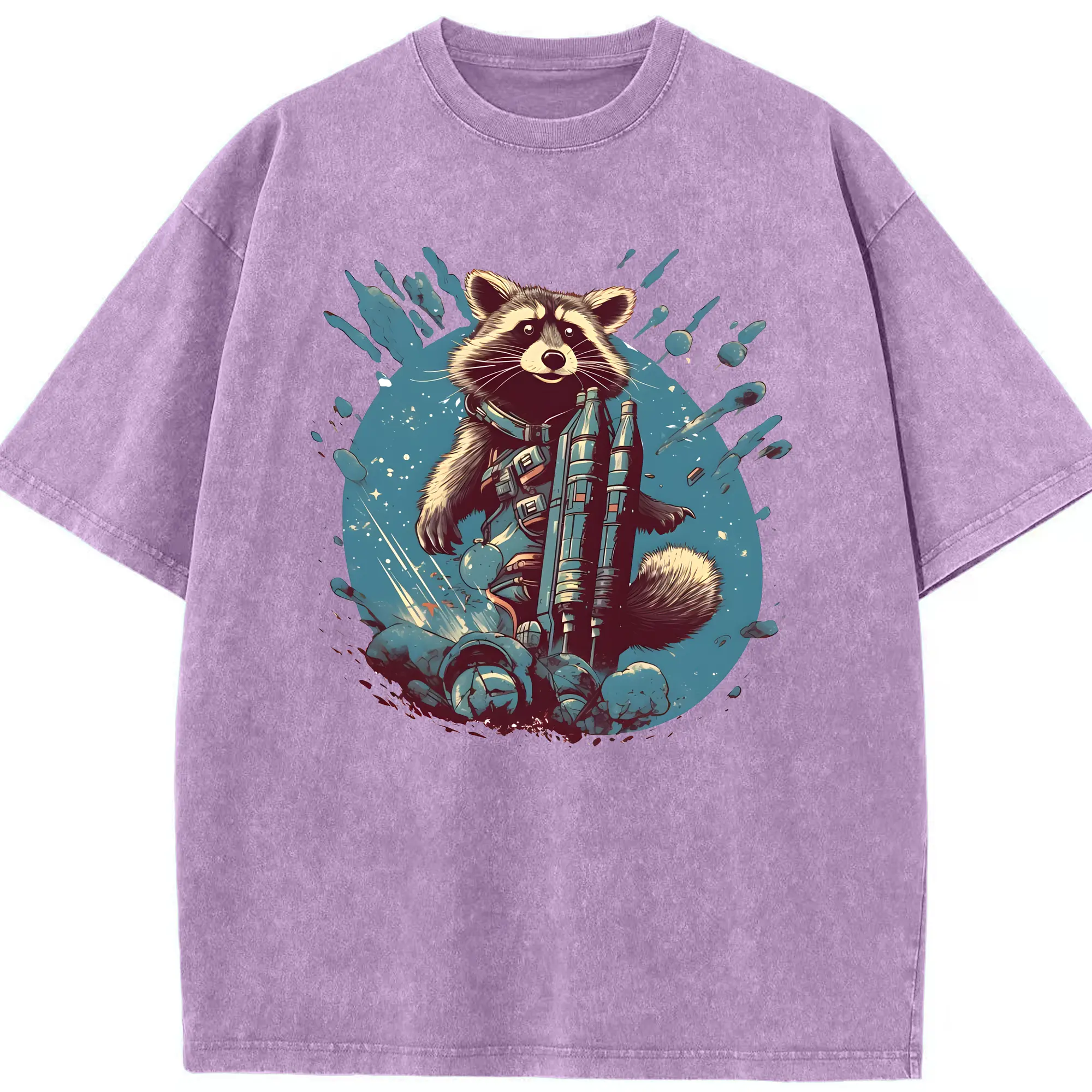 アベンジャーズ (Avenjāzu) グッズ ロケット(Roketto) - 綿100% ヴィンテージ風 半袖Tシャツ ・ 背面プリント ・ 柔らか肌触り ・ 通気性 快適 ・ スポーツ カジュアル 外出用