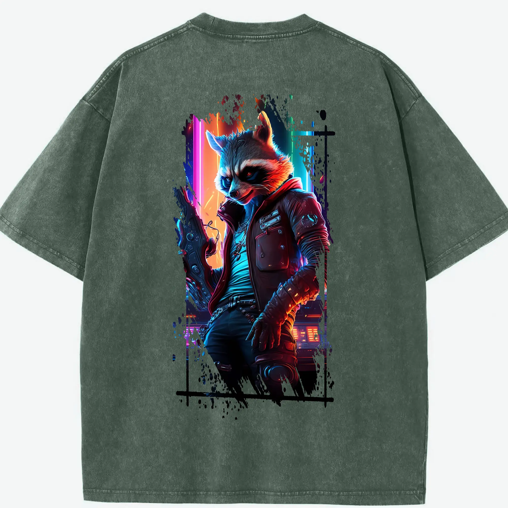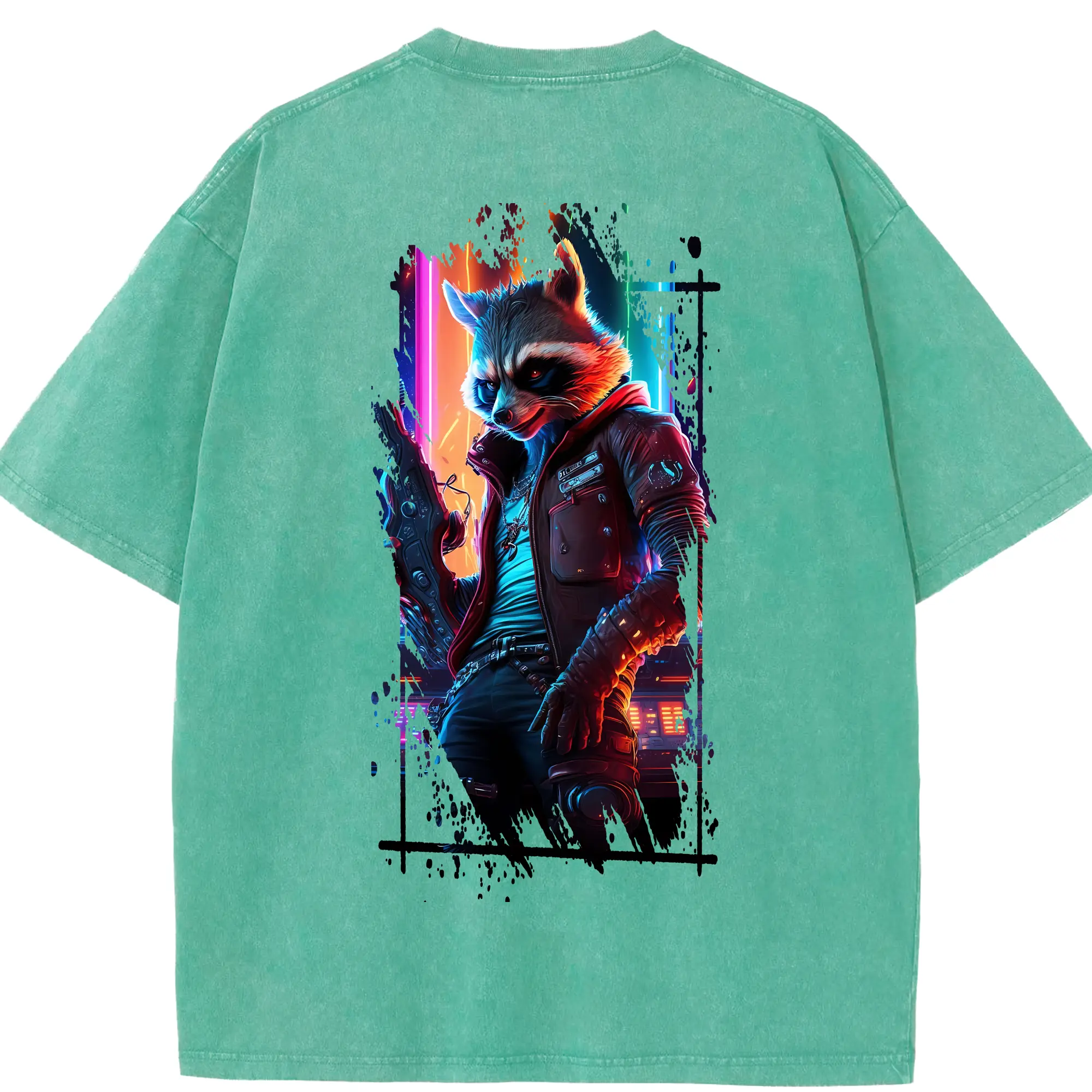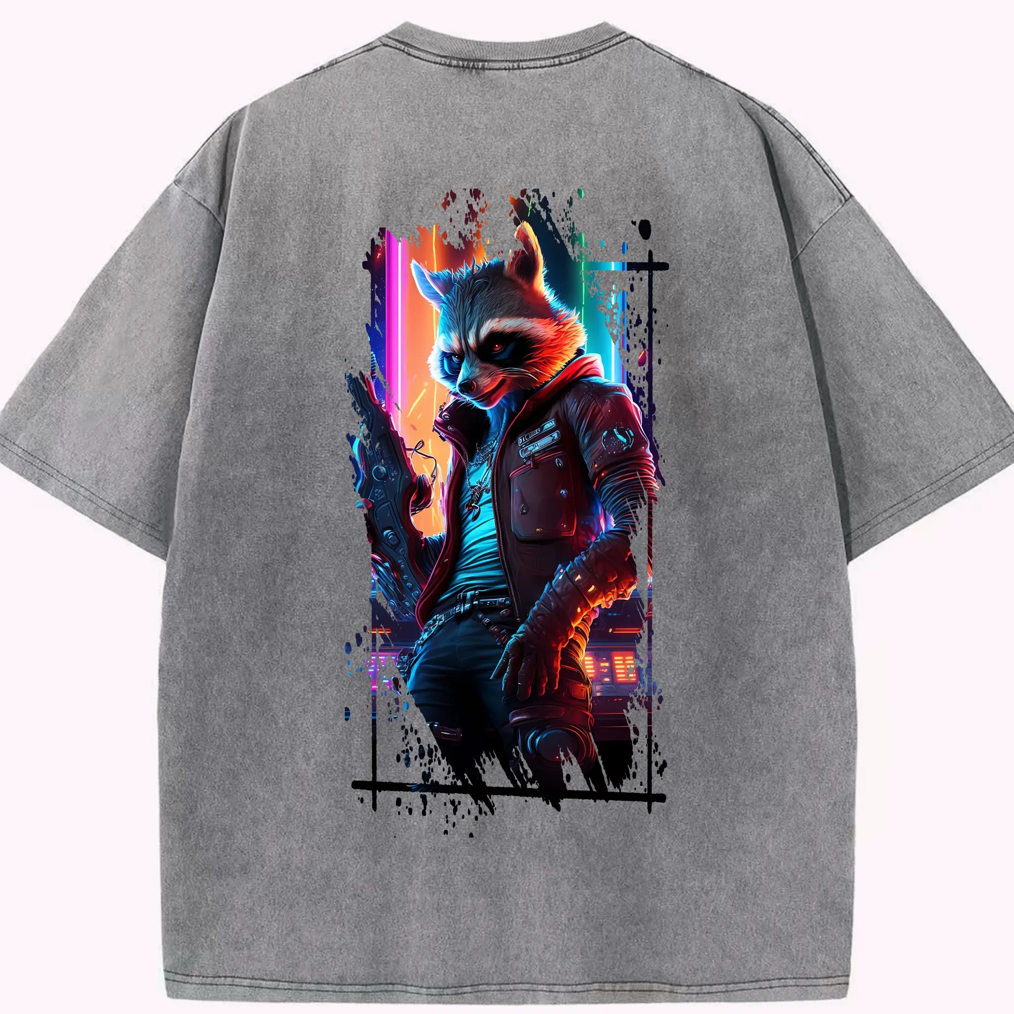 アベンジャーズ (Avenjāzu) グッズ ロケット(Roketto) - 綿100% ヴィンテージ風 半袖Tシャツ ・ フロントプリント ・ 柔らか肌触り ・ 通気性 快適 ・ スポーツ カジュアル 外出用