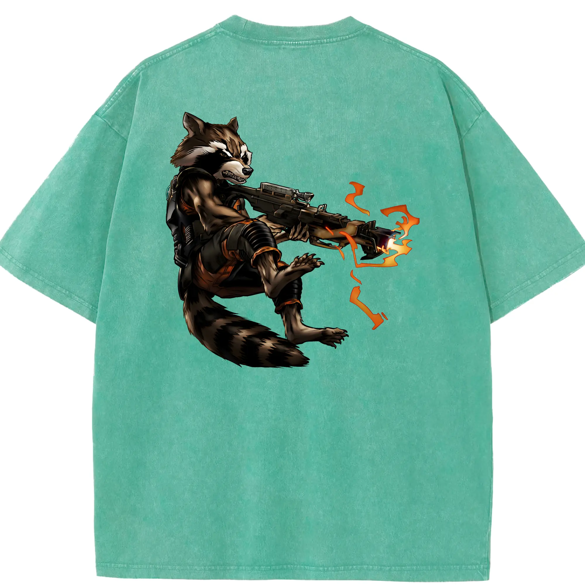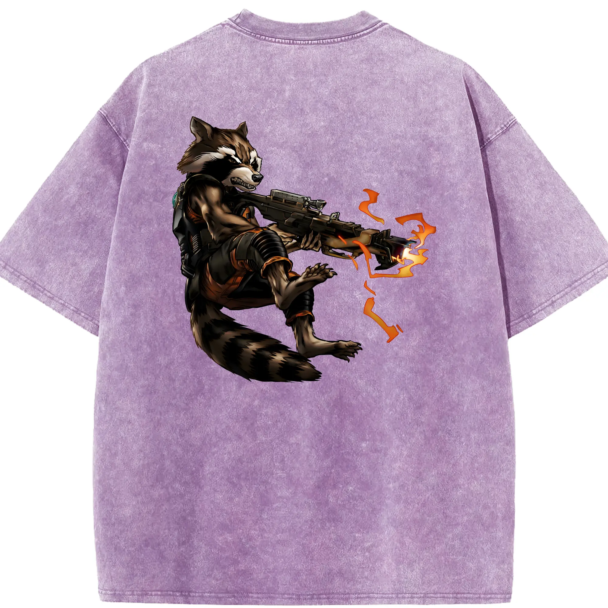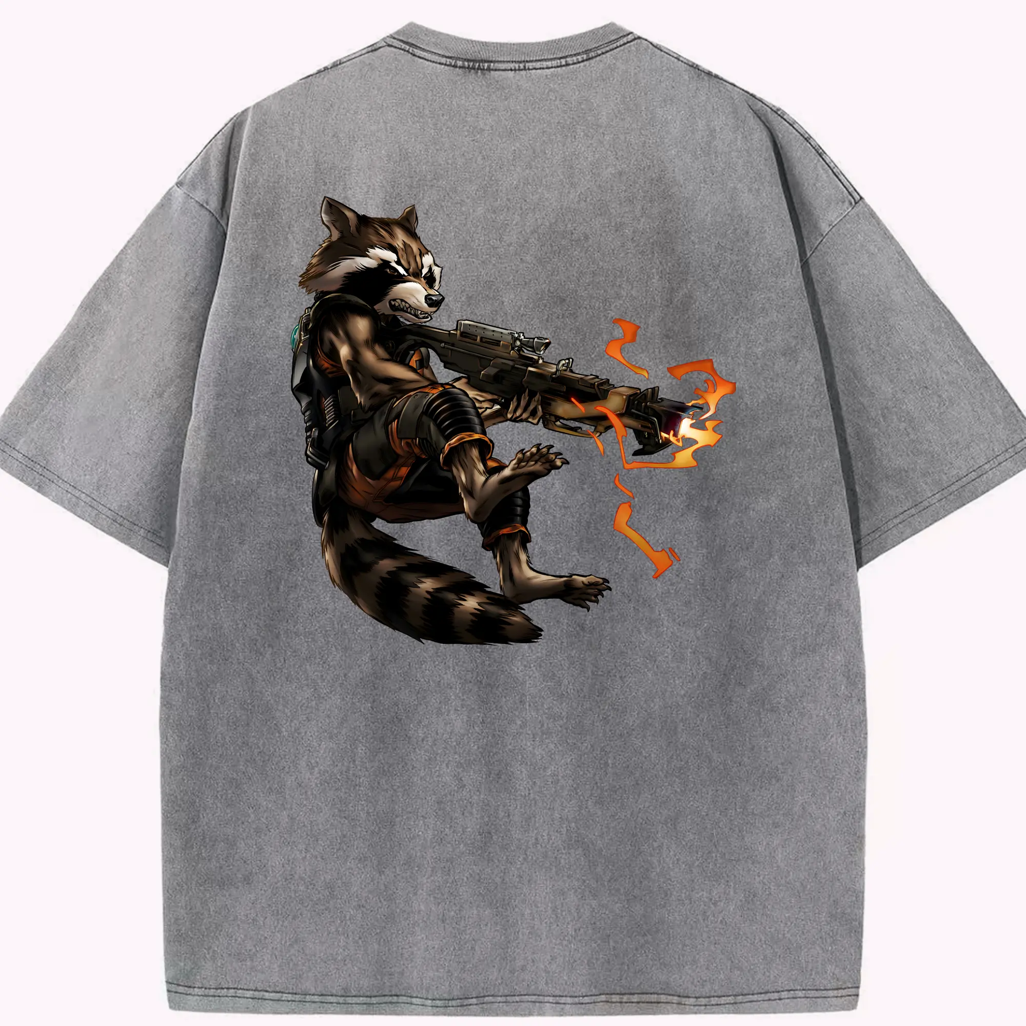 アベンジャーズ (Avenjāzu) グッズ ロケット(Roketto) - 綿100% ヴィンテージ風 半袖Tシャツ ・ フロントプリント ・ 柔らか肌触り ・ 通気性 快適 ・ スポーツ カジュアル 外出用