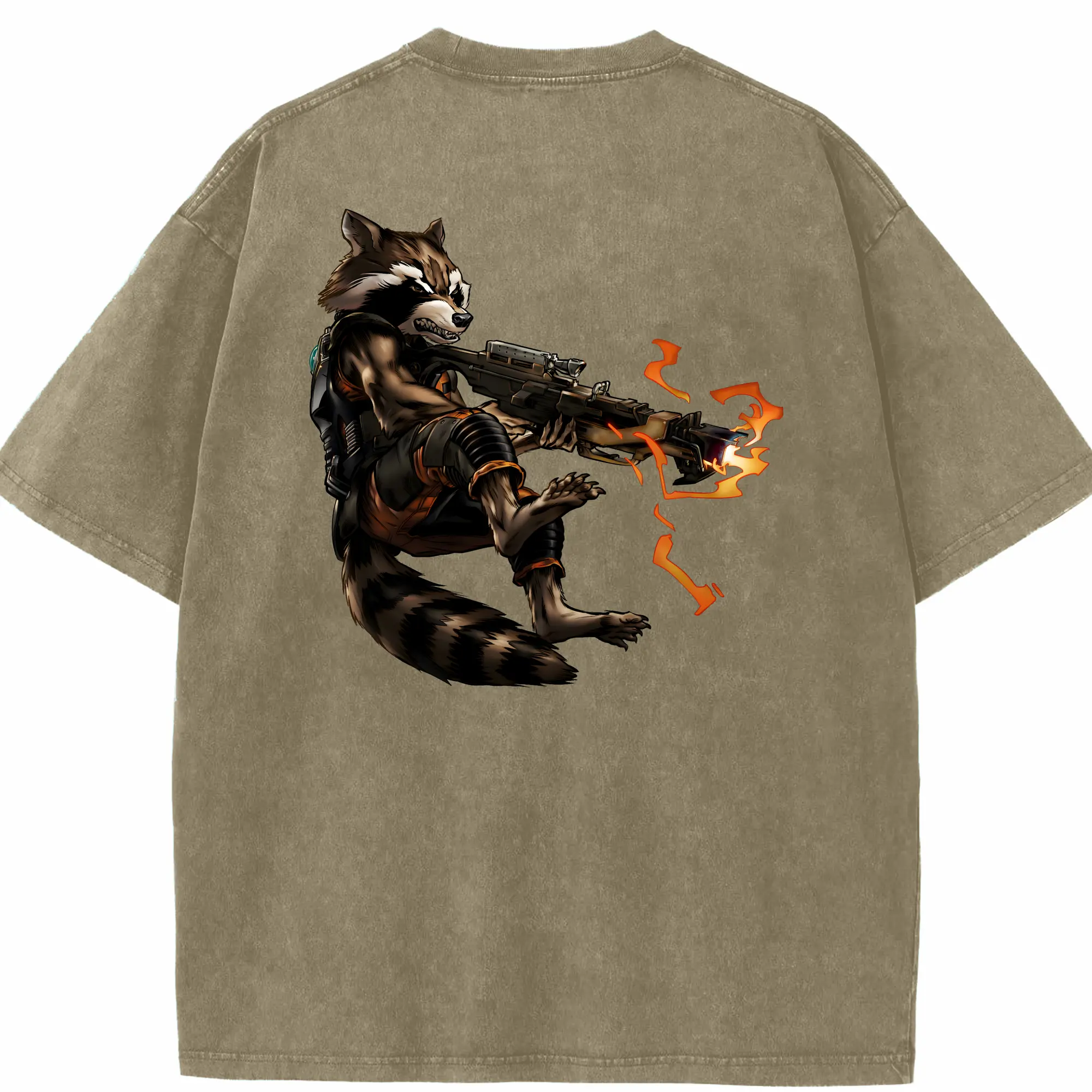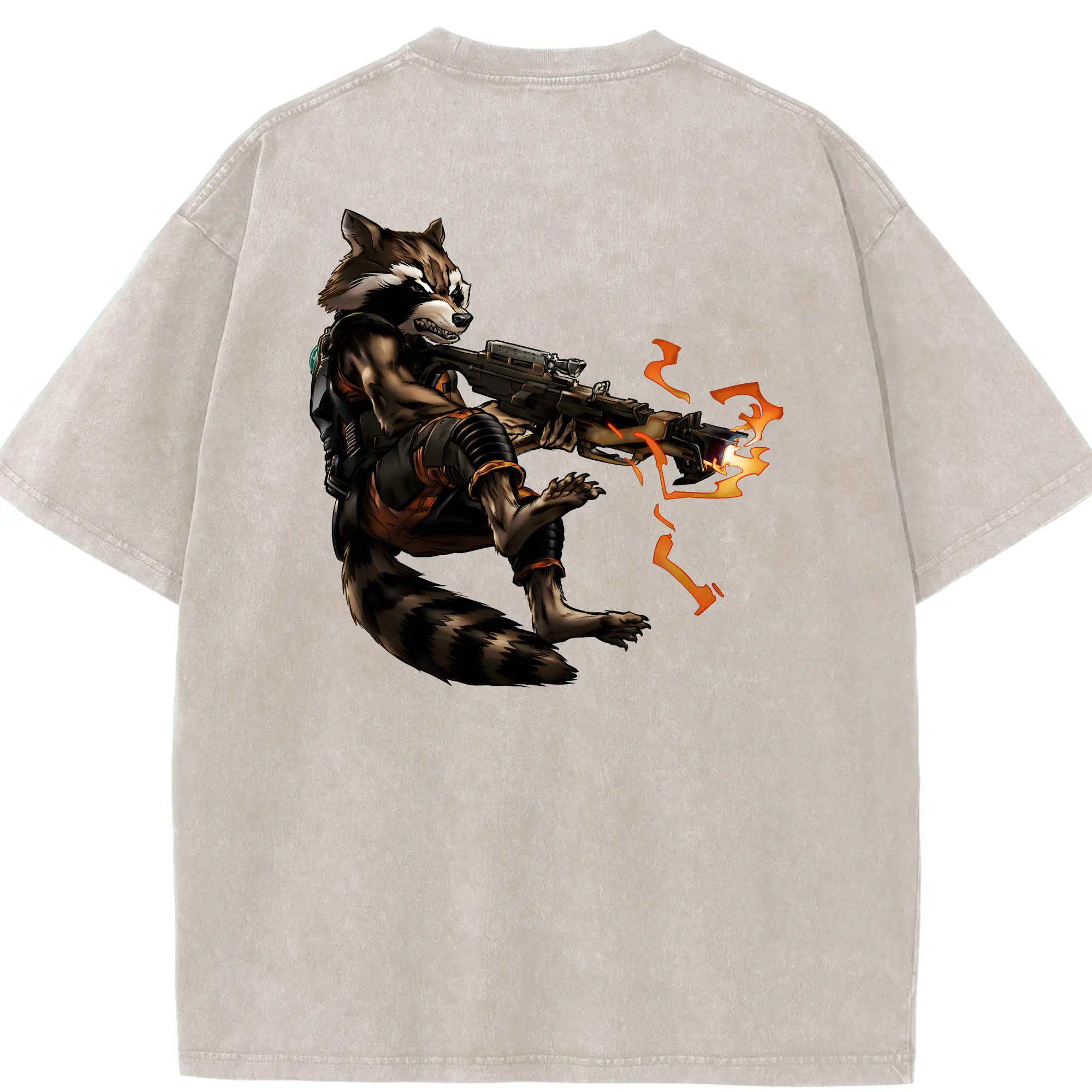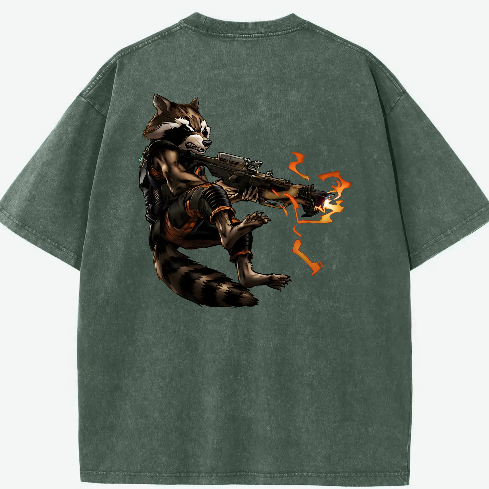 アベンジャーズ (Avenjāzu) グッズ ロケット(Roketto) - 綿100% ヴィンテージ風 半袖Tシャツ ・ フロントプリント ・ 柔らか肌触り ・ 通気性 快適 ・ スポーツ カジュアル 外出用