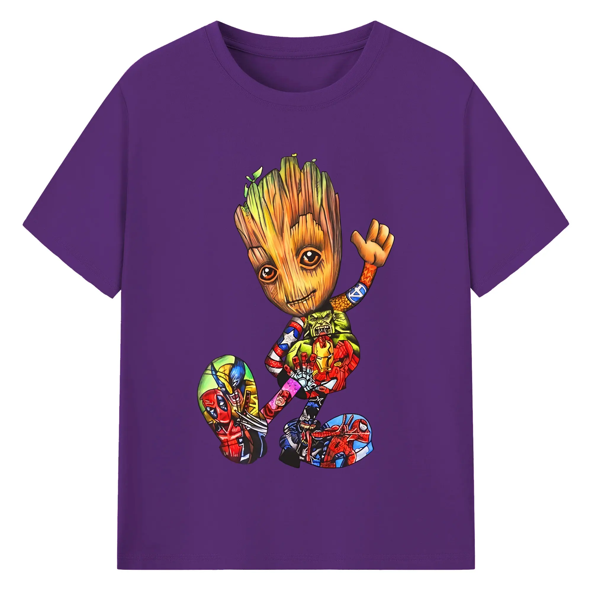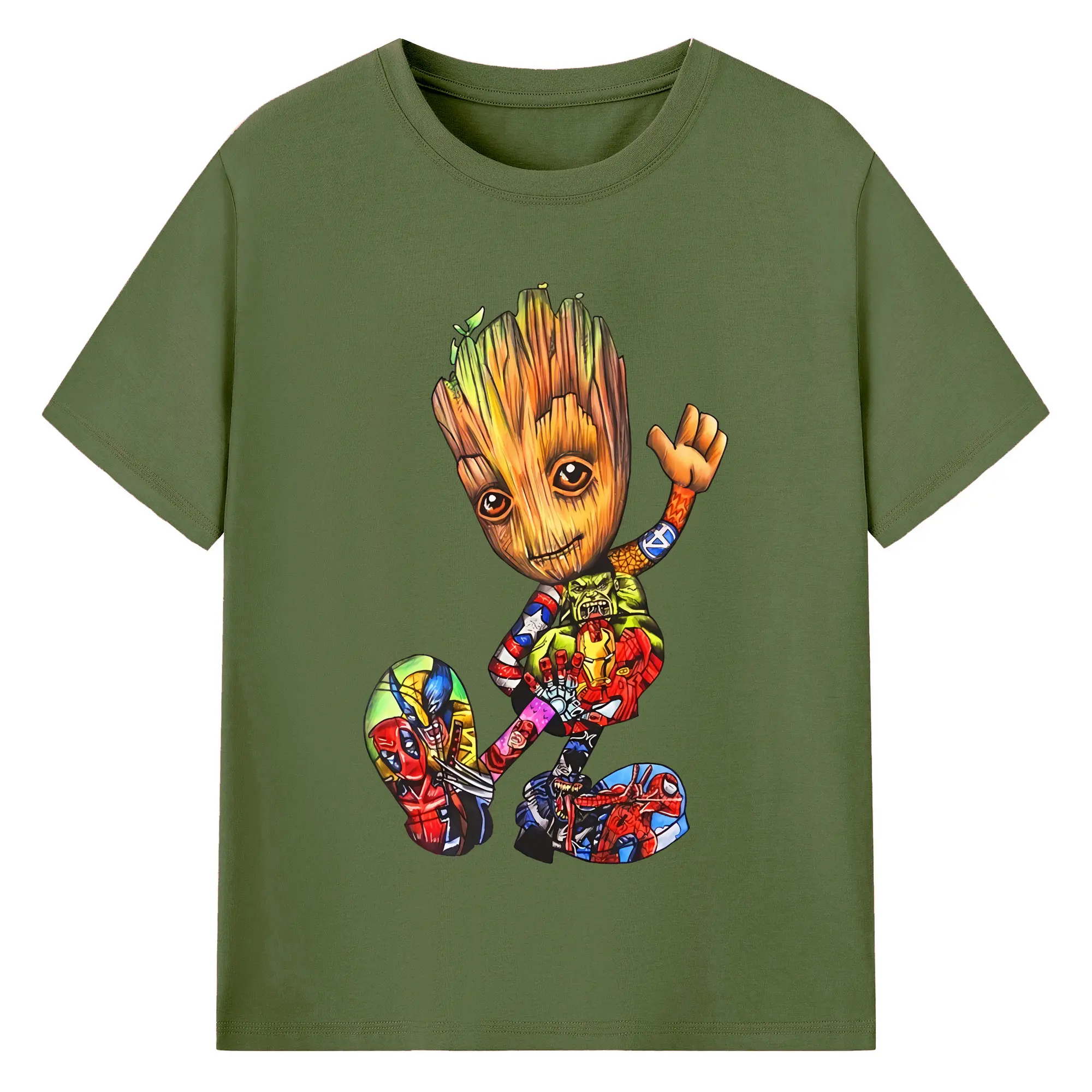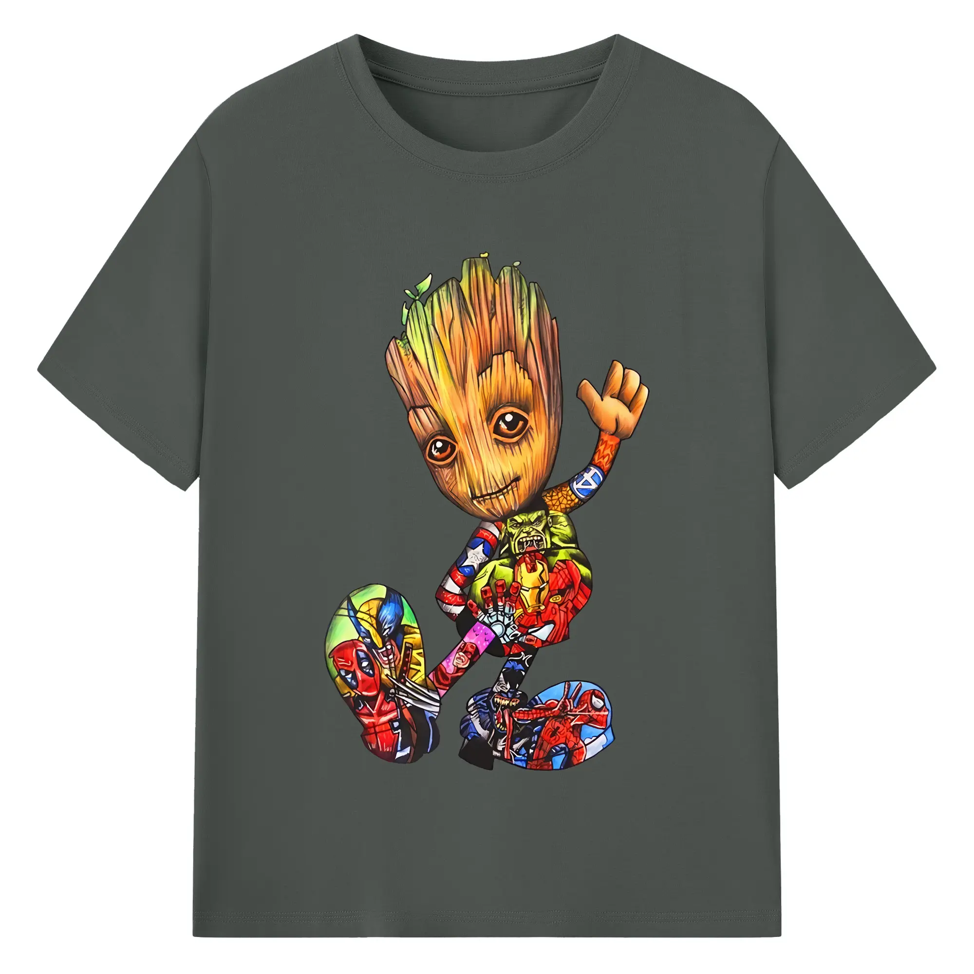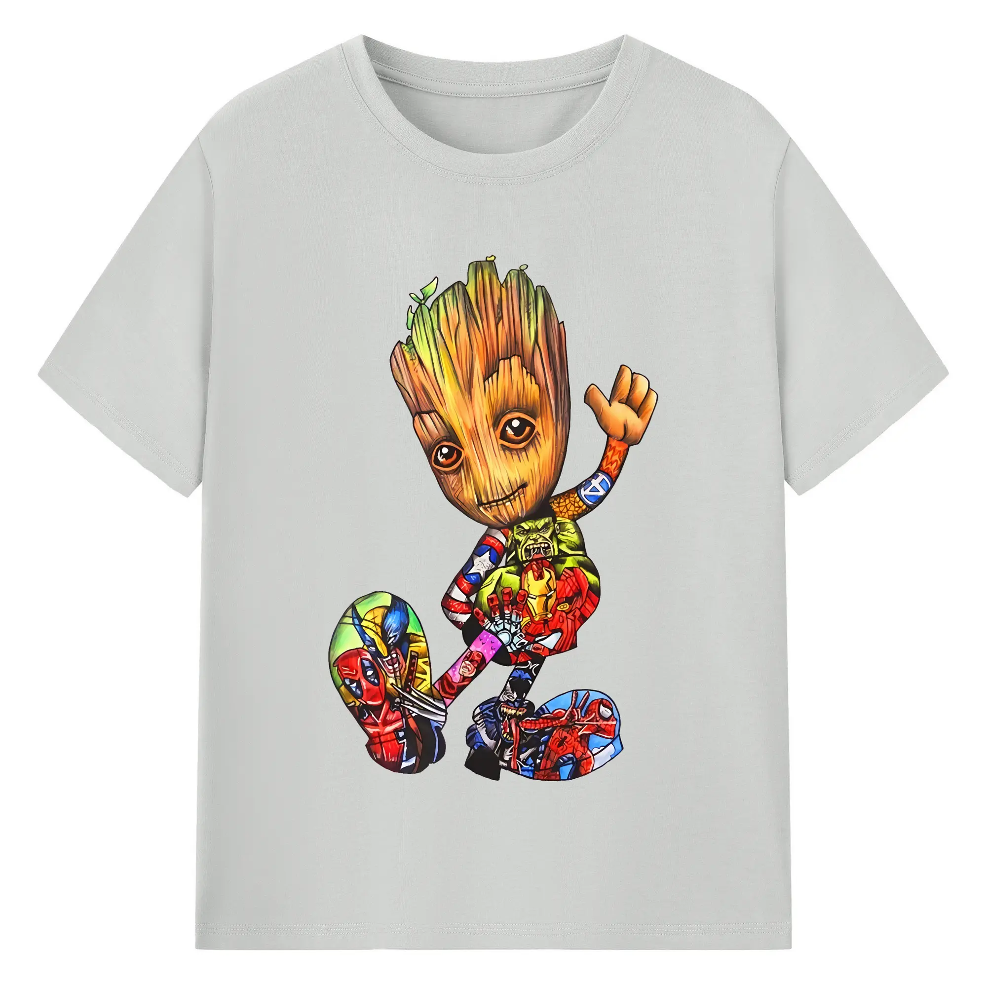アベンジャーズ (Avenjāzu) グッズ グルート(Groot) - 綿100% 半袖Tシャツ ・ バックプリント ・ 快適 通気性 ・ 日常使い 散歩 スポーツ用