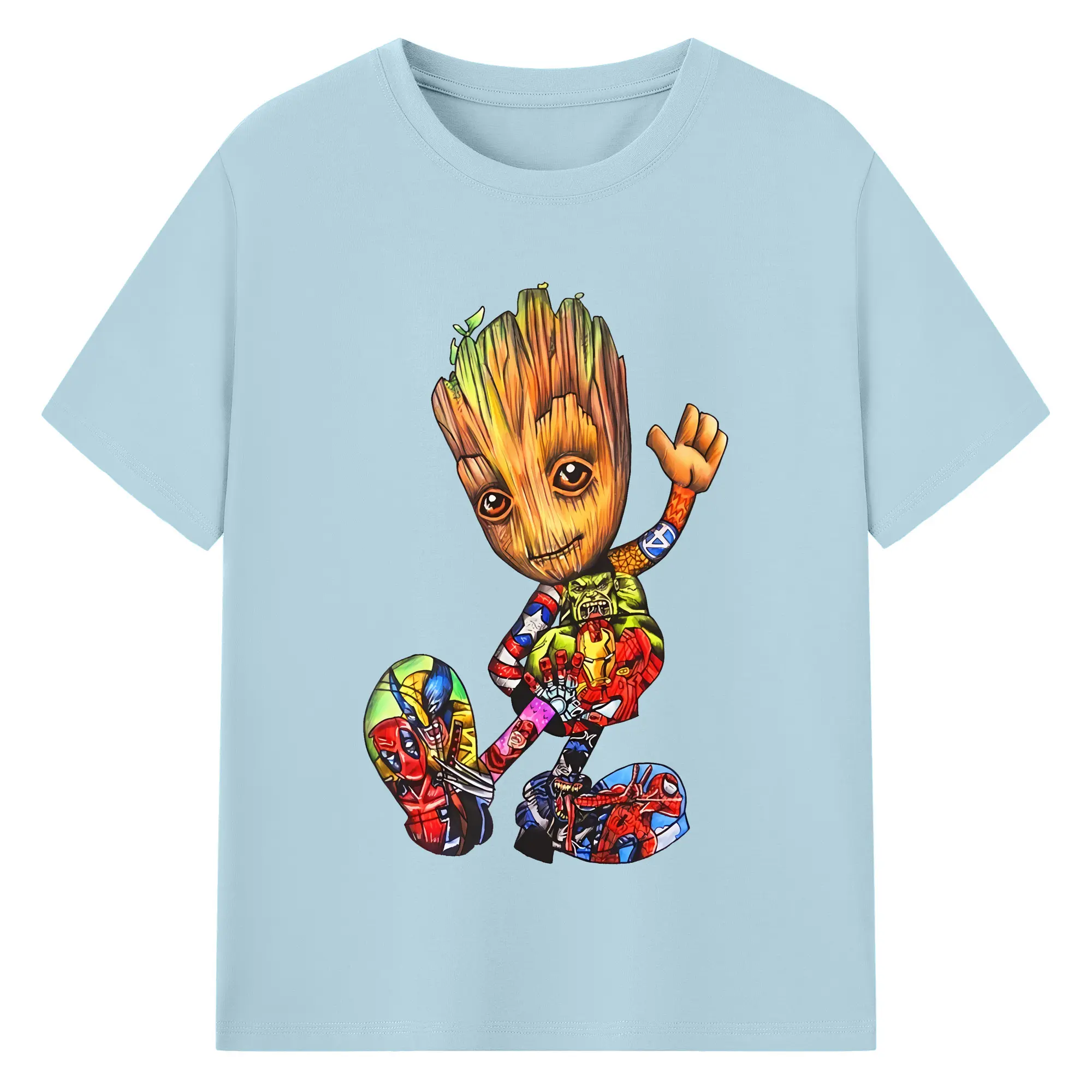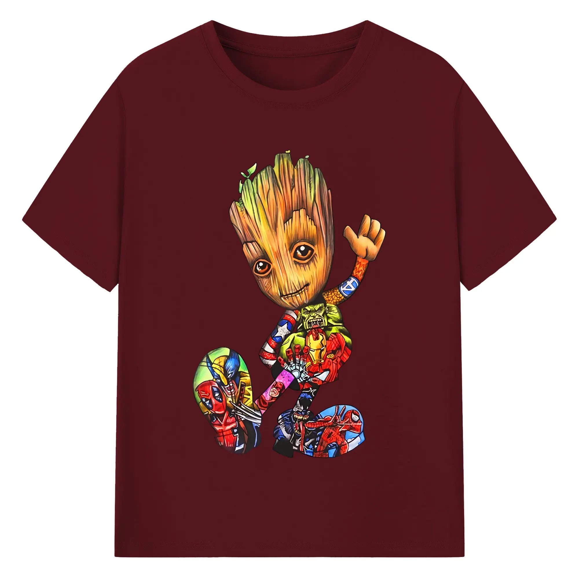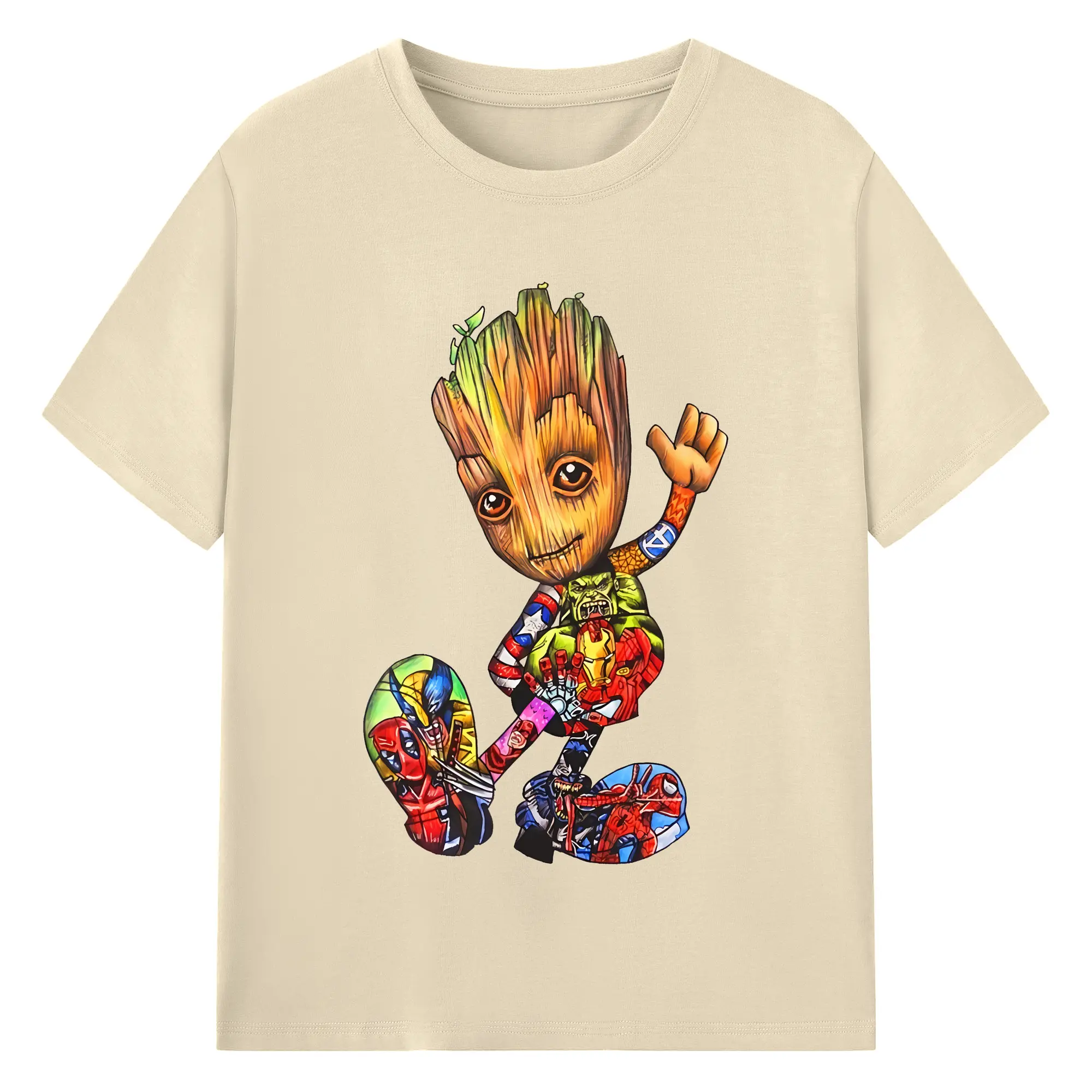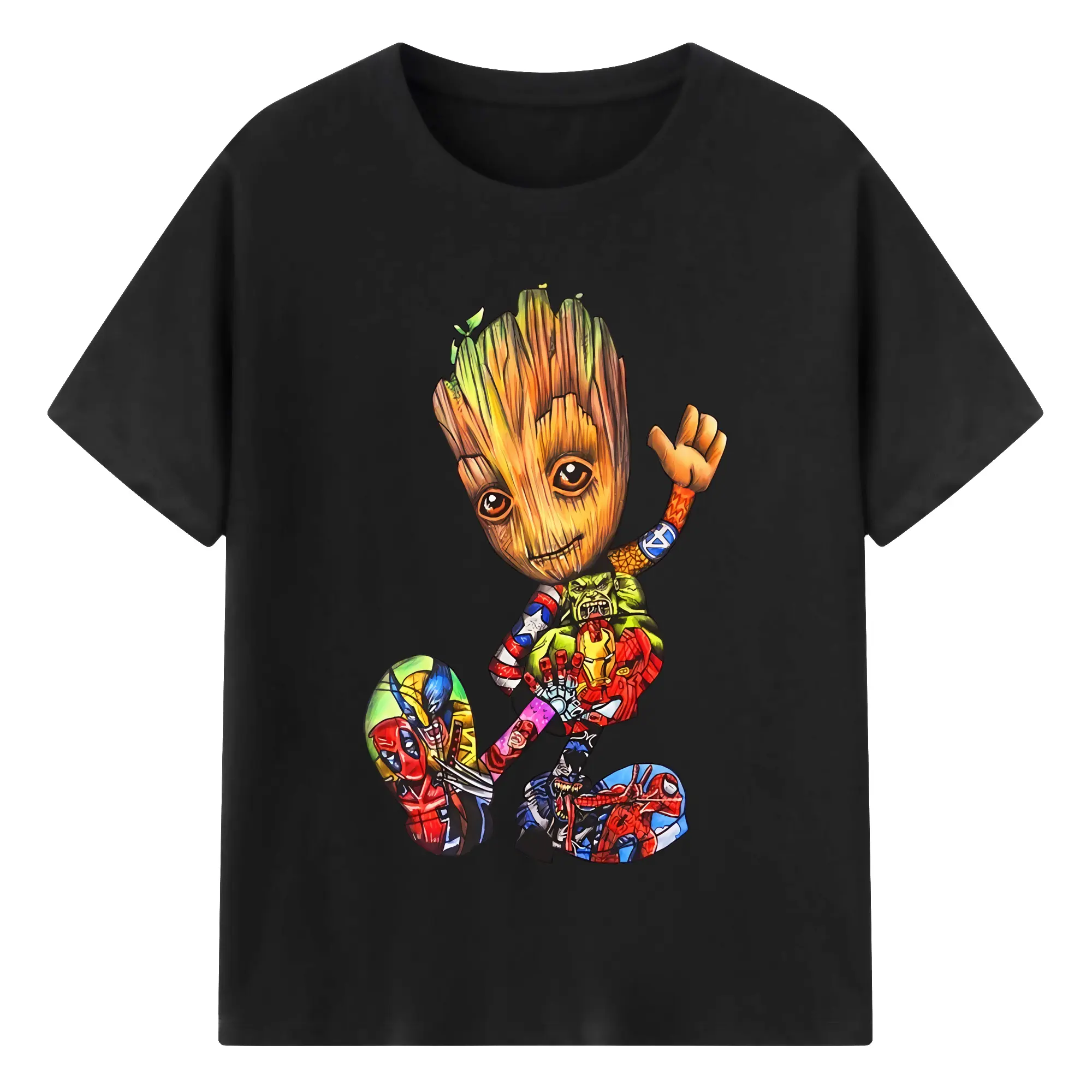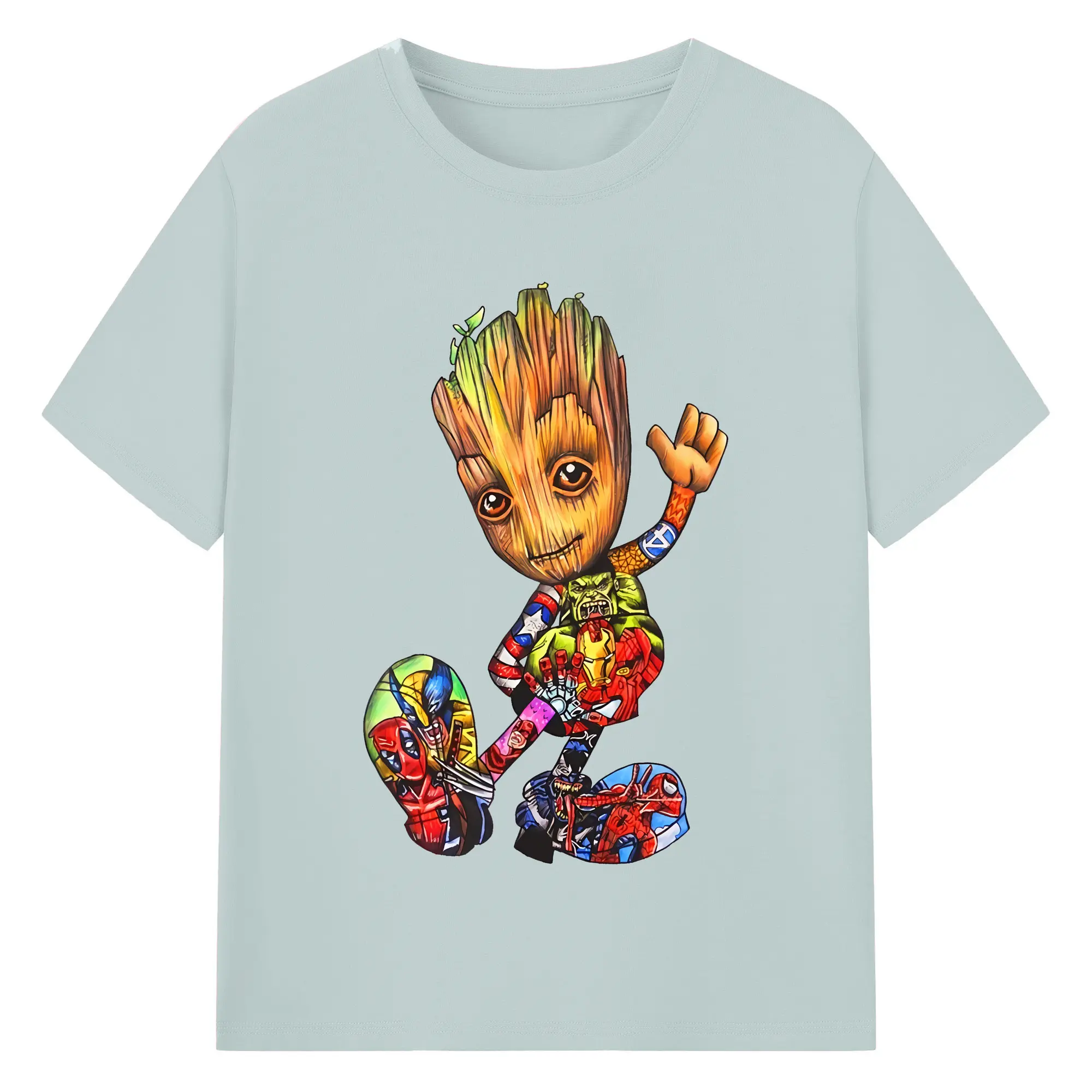 アベンジャーズ (Avenjāzu) グッズ グルート(Groot) - 綿100% 半袖Tシャツ ・ バックプリント ・ 快適 通気性 ・ 日常使い 散歩 スポーツ用