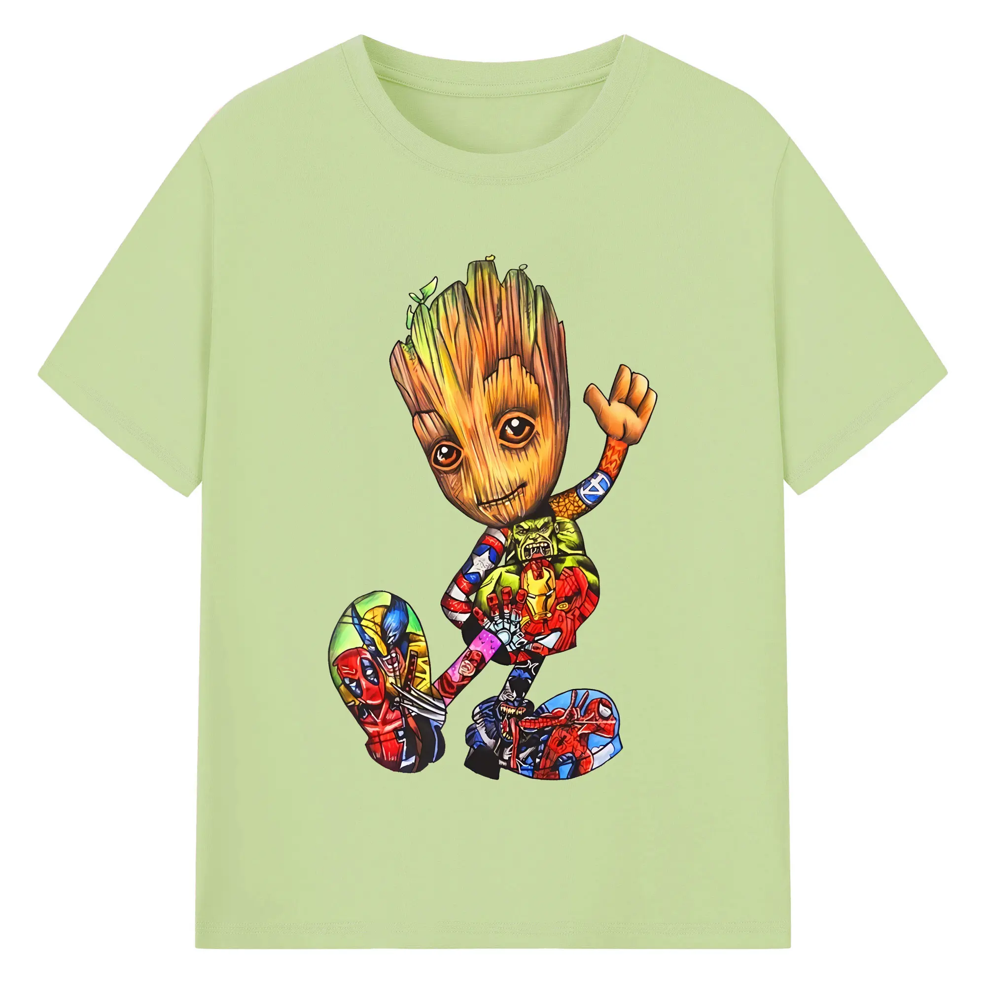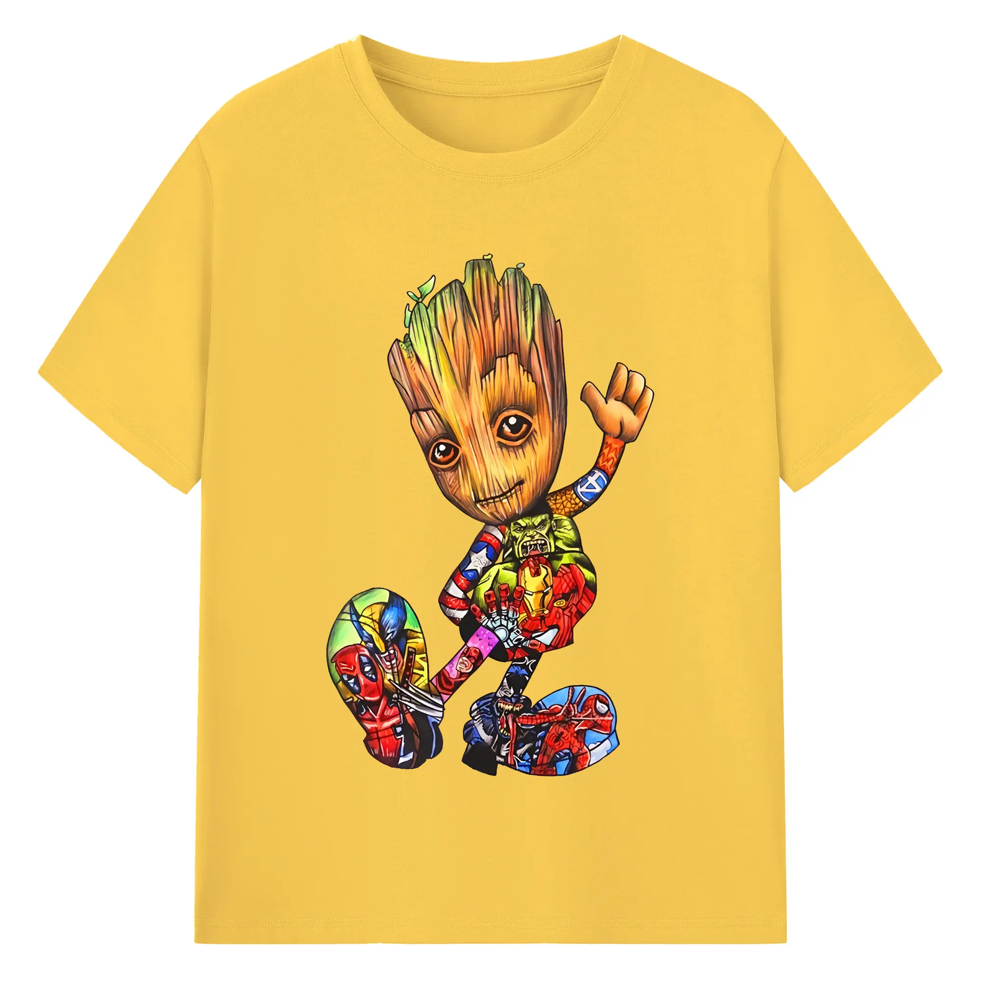 アベンジャーズ (Avenjāzu) グッズ グルート(Groot) - 綿100% キッズTシャツ ・ フロントプリント ・ 快適 通気性 ・ スポーツ カジュアル 散歩用