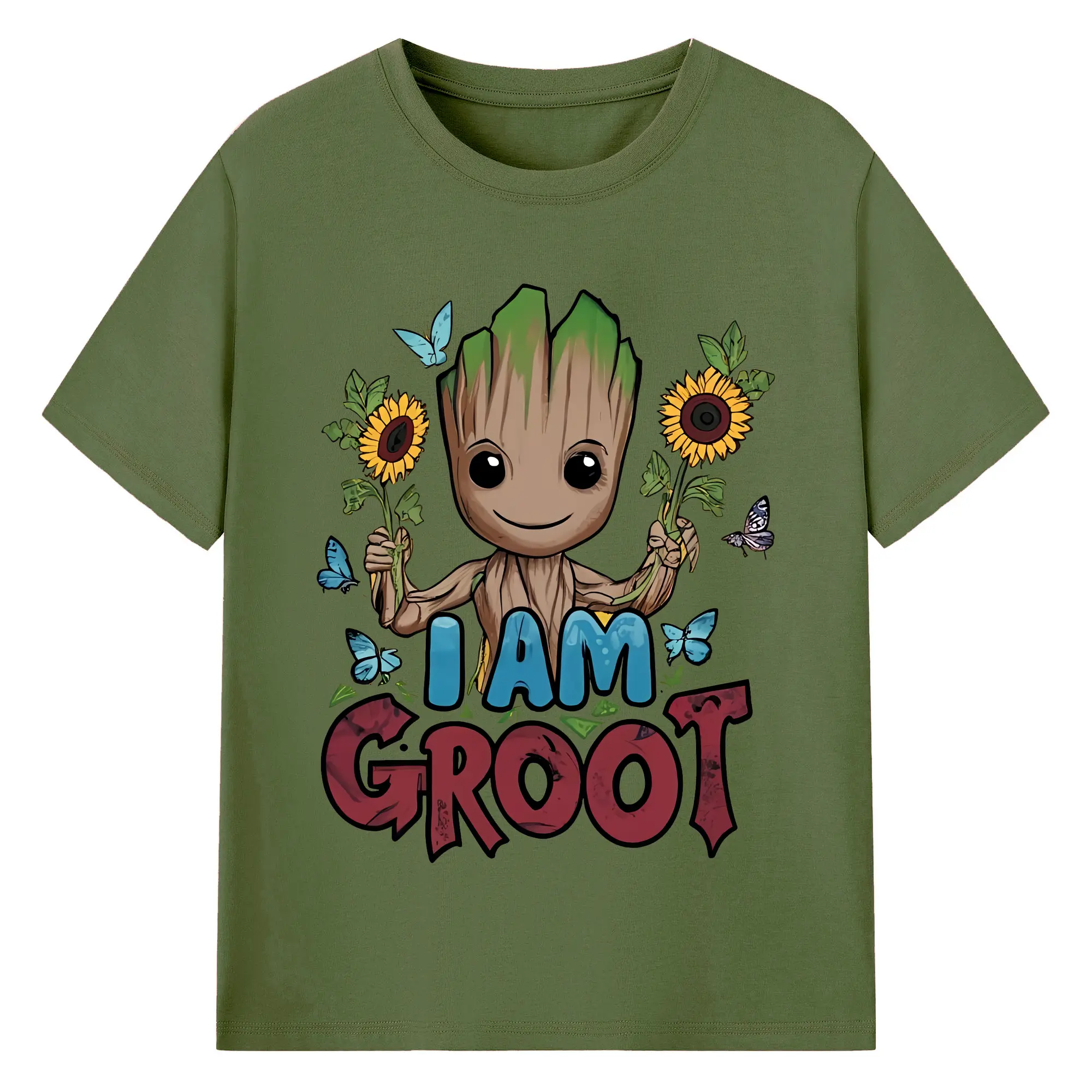 アベンジャーズ (Avenjāzu) グッズ グルート(Groot) - 綿100% 半袖Tシャツ ・ バックプリント ・ 快適 通気性 ・ 日常使い 散歩 スポーツ用