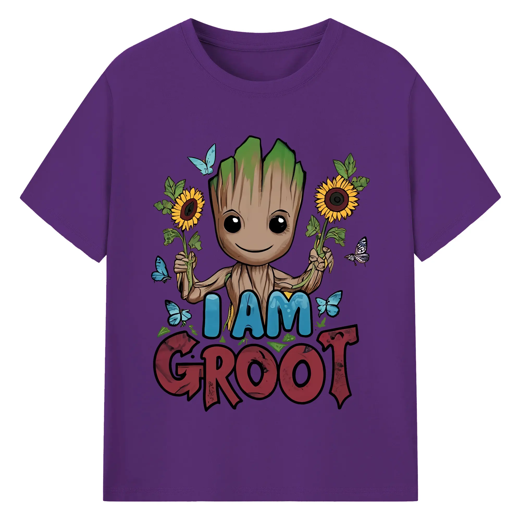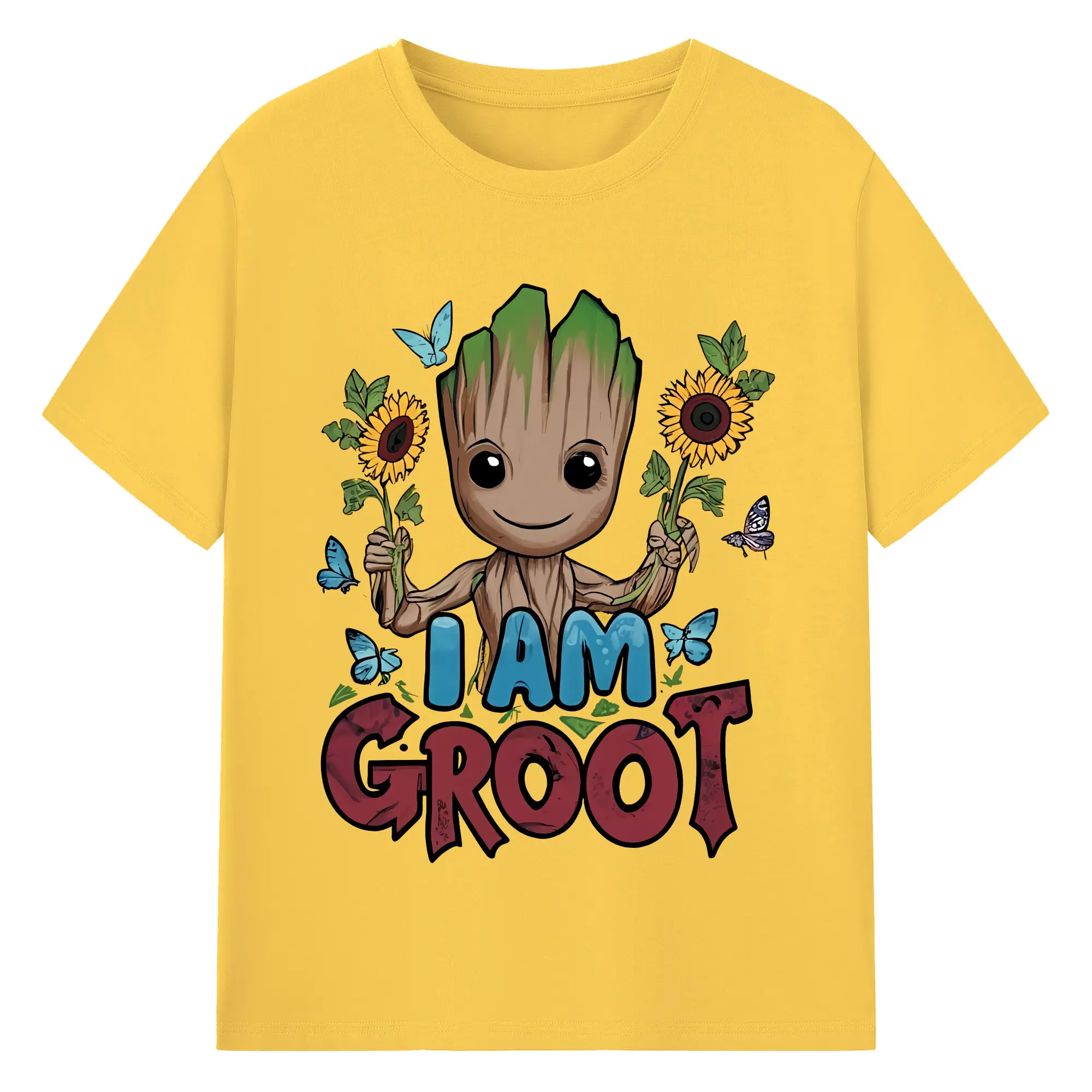 アベンジャーズ (Avenjāzu) グッズ グルート(Groot) - 綿100% キッズTシャツ ・ フロントプリント ・ 快適 通気性 ・ スポーツ カジュアル 散歩用
